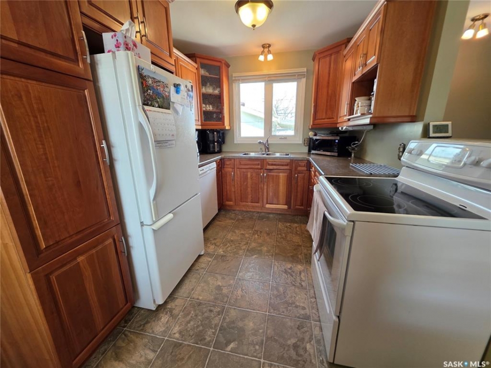 You can always tell when a house has truly been a home, and this one has the track record to prove it, lovingly maintained and thoughtfully updated by the same family for nearly 42 years. Set in a sought-after location, 464 MacDonald Drive offers 1,136 sq. ft. of comfortable bungalow living with a layout that just makes sense. The cherrywood kitchen is both warm and inviting, flowing naturally into the dining area, while the oversized living room gives you all the space you need for family nights or the occasional movie marathon. The main floor is completed by three bedrooms and a well-appointed 4-piece bath featuring a BathFitter tub and surround. Downstairs is where things really shine, with a massive rec room centred around a cozy natural gas fireplace. The generously-sized fourth bedroom might just earn you “favourite parent” status or be a great space for a crafting or sewing room. There is excellent storage, including a cold room and even a dedicated wine room, while the tidy 3-piece bath adds extra convenience. Outside, the insulated and heated 16x24 garage is ready for Saskatchewan winters or weekend tinkering, with additional parking on the concrete drive for extra vehicles or an RV. The fenced backyard is ideal for kids or pets, complete with a covered patio, a garden space, and underground sprinklers to keep everything looking its best. Key updates include PVC windows in 2024, central air in 2022, a high-efficiency furnace in 2021, and shingles in 2016, leaving you with a home that's as solid as it is welcoming. This is the kind of home you feel the moment you walk in, so be sure to come take a look and see if it feels like yours too.