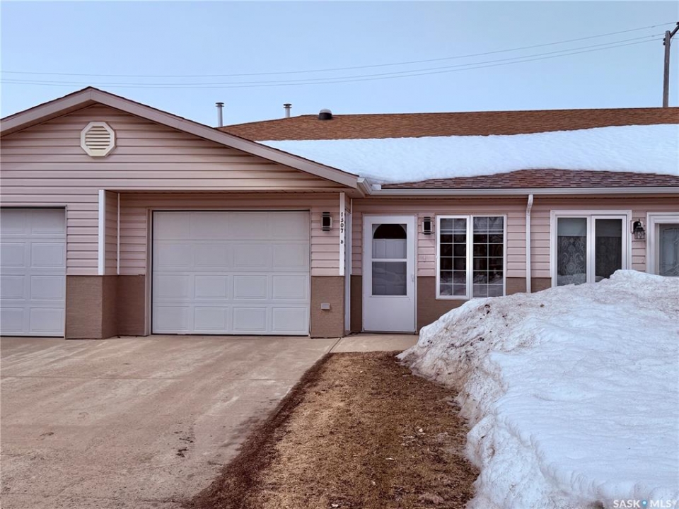 Move in ready creates a comfortable lifestyle in this 1050 sq.ft. main floor living (no stairs) home with single attached garage offering direct entry! This unit was built in 1997 and offers attractive street appeal with concrete drive, alley access and basic backyard space so you can still enjoy a bbq! Open concept design in main living area. Kitchen offers oak cabinets and includes fridge, stove, hood fan and a portable island. Dining room is spacious with a large pantry closet and is adjacent to living room. There are two bedrooms; the primary bedroom boasts a walk in closet and two piece ensuite. The main bathroom has a new toilet installed 2025. This unit offers fresh paint throughout in 2025, new linoleum flooring in kitchen and main bathroom in 2025, remainder of flooring of vinyl plank through living room, dining area and hallways replaced within last few years, light fixtures replaced throughout in 2025 (except main bath). This home offers adequate storage and the ability to still host family gatherings for years to come! Includes Central air and storage shed. Exterior stucco replaced in 2023.