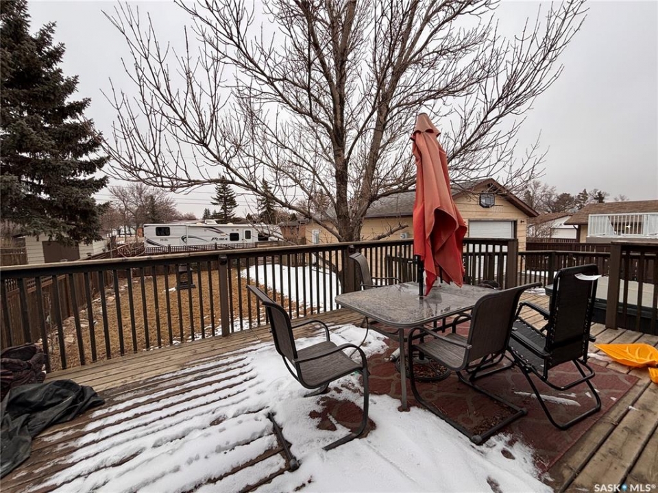 Welcome to this spacious 1,176 sq ft family home offering an impressive 6 bedrooms and 3 bathrooms, perfectly located near the elementary school. Situated on a large 7,700 sq ft lot, this property provides plenty of space both inside and out. The main floor features a bright and inviting living room with large windows, flowing seamlessly into the eat-in kitchen. Garden doors lead to a tiered deck complete with a hot tub—ideal for relaxing or entertaining. A convenient back porch offers excellent pantry storage. Down the hall, you'll find three well-sized bedrooms, a full 4-piece bathroom, and a primary bedroom with its own 2-piece ensuite. The basement has seen several updates, including drywall and carpet, and offers a generous family room—perfect for gatherings or movie nights. This level also includes three additional bedrooms, a 3-piece bathroom, and a utility room with washer and dryer. The furnace and water heater have been updated for added peace of mind. Outside, enjoy the fully fenced, oversized yard with RV parking and a 24' x 30' detached garage. Numerous updates over the years include fencing, windows, water heater, and more. This home offers incredible space and functionality for a growing family—don't miss your chance to view!