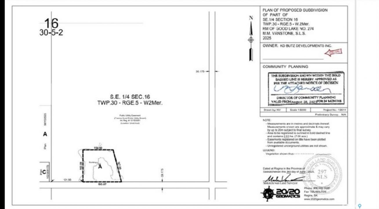 Don't miss this 7 Acre parcel near Good Spirit Lake. The sale will be subject to subdivision, which has already been approved in full. The seller states that power runs along the road, and that shallow well water is possible on the lot. Call today for more info