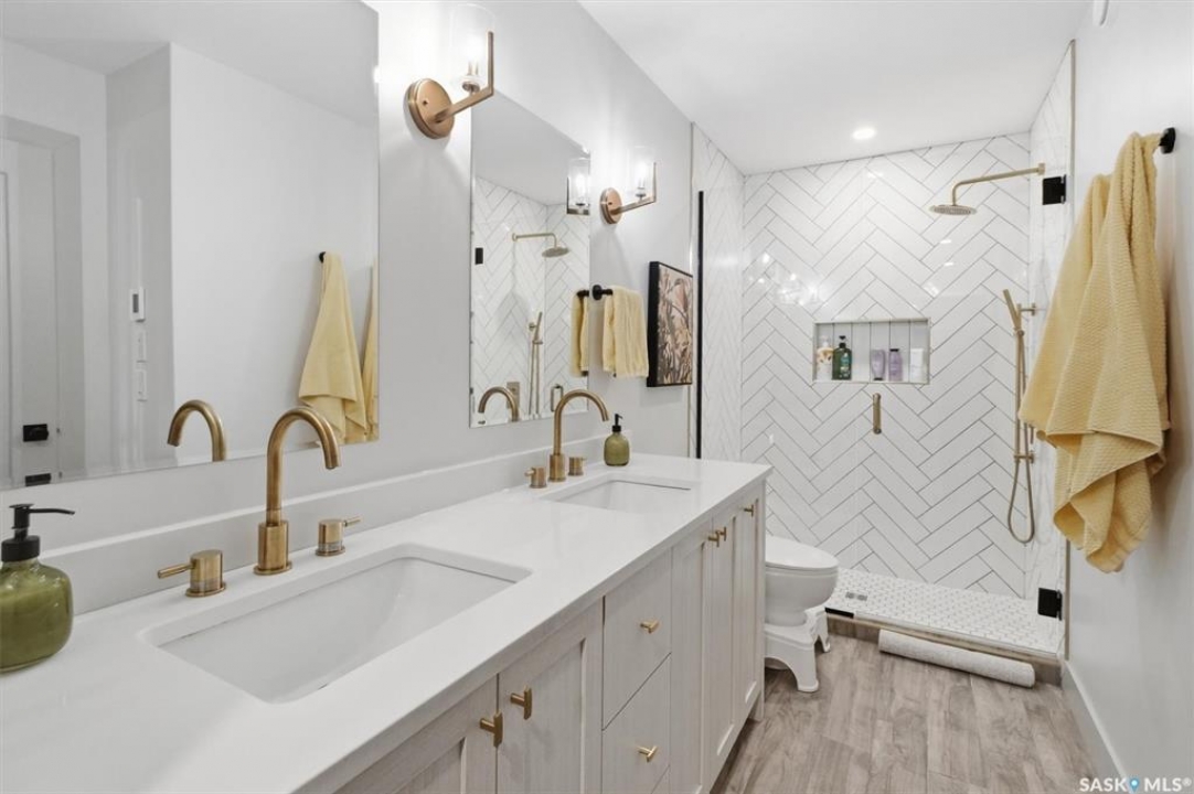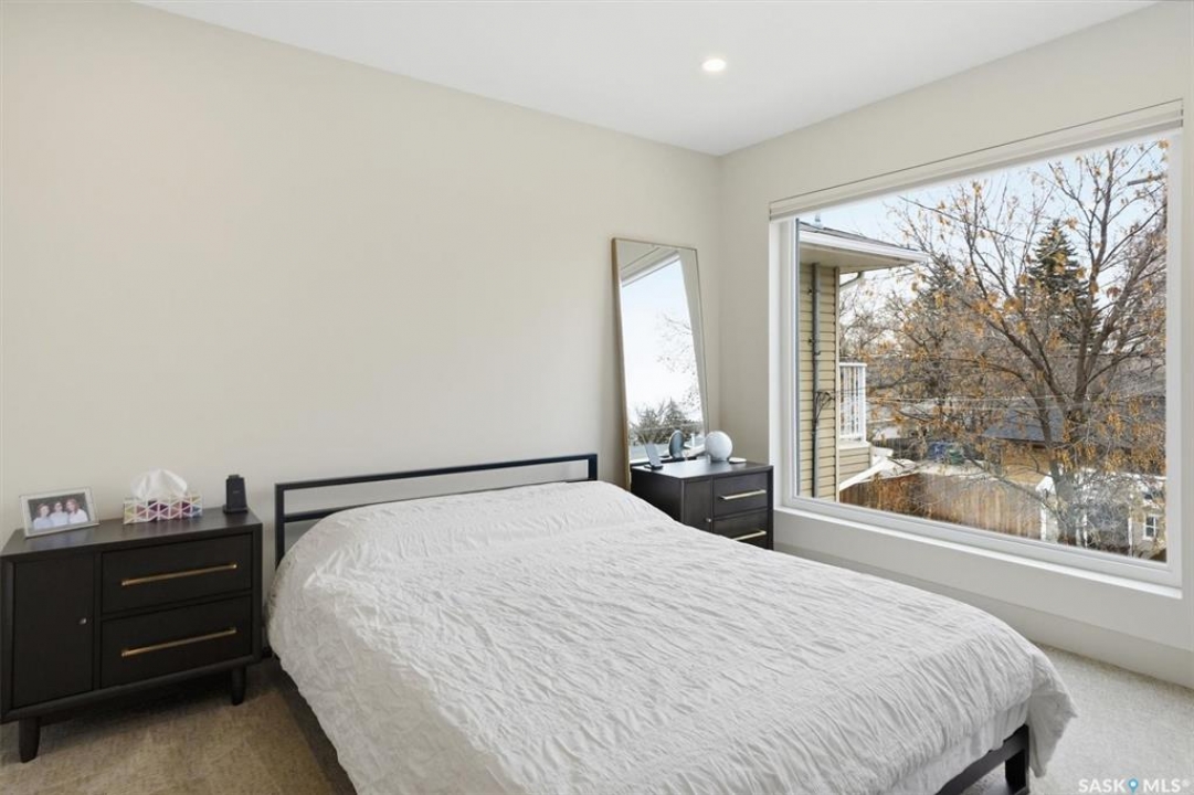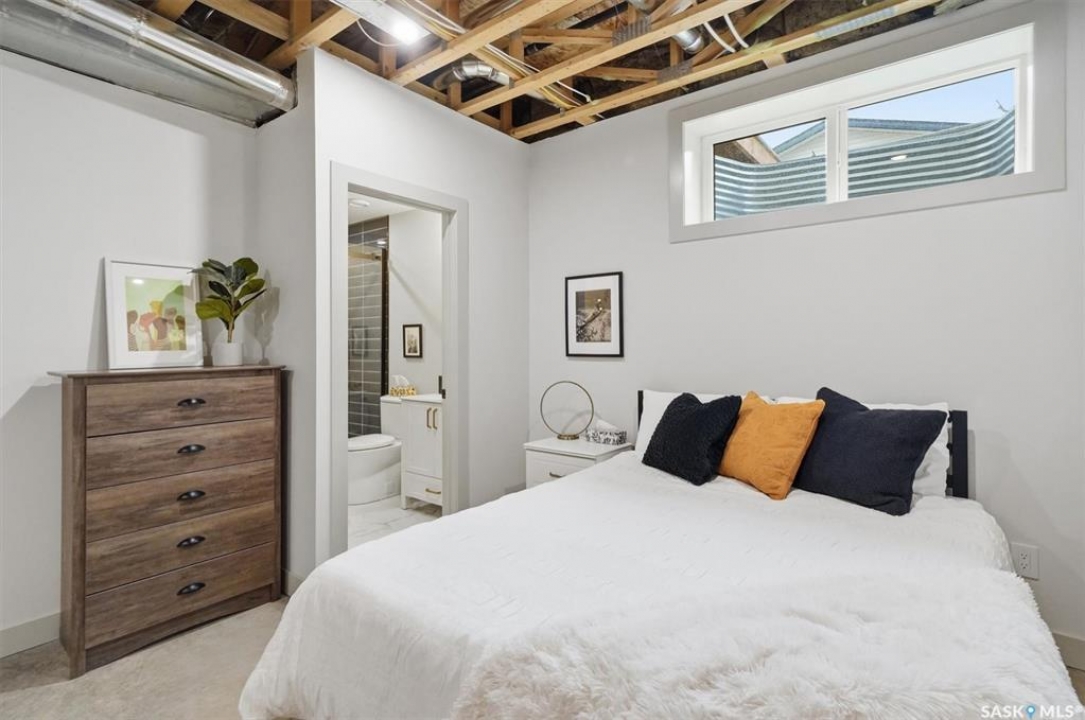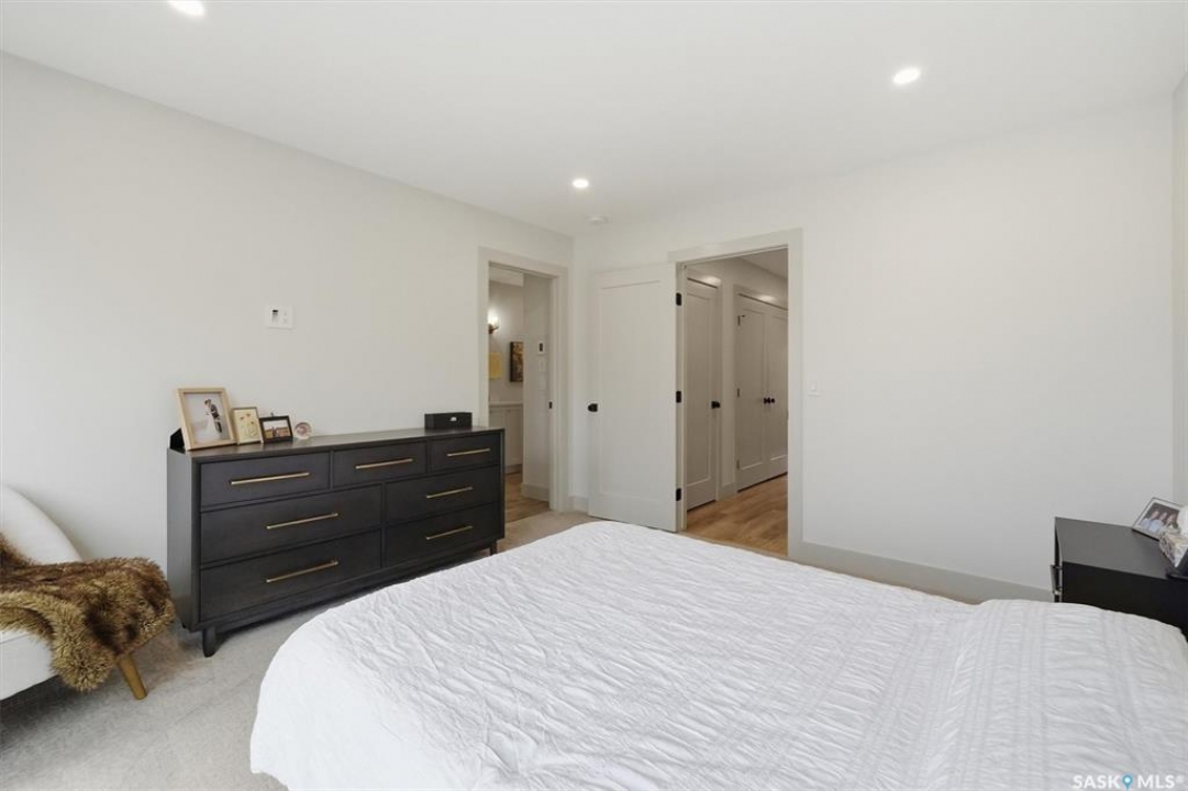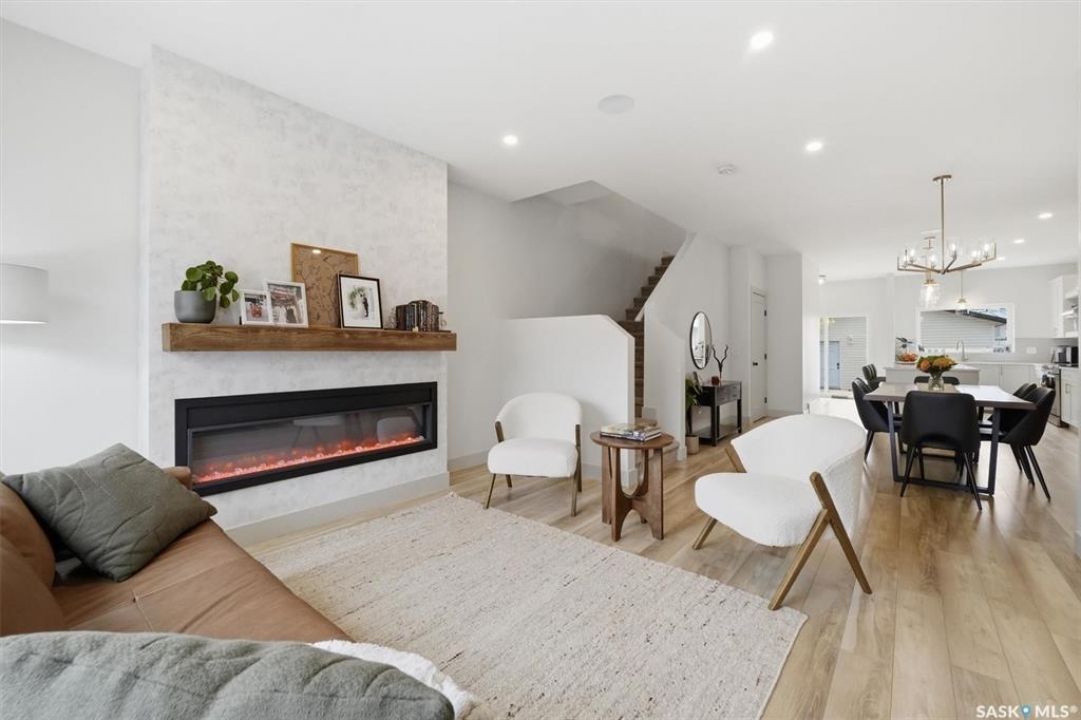 This stunning Decora Homes build offers a rare combination of high-end craftsmanship and significant recent upgrades, perfectly positioned on Empress Avenue just steps from the Saskatchewan River and Meewasin Trails. Over the last three years, this 1702sqft home has been meticulously refined, now featuring a durable and modern steel roof, an automated blind package for effortless light control, and professionally completed sidewalks and a rear patio. The main floor remains a showstopper with its functional living room centered on a stylish fireplace wall, a spacious dining area, and a gourmet kitchen equipped with a large quartz island and full stainless steel appliance package. Upstairs, the primary retreat continues to impress with its elegant 4-piece ensuite including double sinks and tiled shower, heated floors, and a vast walk-in closet, complemented by two additional bedrooms and a secondary 4-piece bath. The laundry is also located on the upper level as well as another two storage closets. The most notable addition is the nearly-developed basement, which has seen the completion of all exterior walls and the addition of a fully finished 3-piece bathroom, family room, open gym/play area and spare bedroom space, significantly increasing the home's functional square footage. Outside, the property is a low-maintenance oasis with black granite crushed rock, a rear deck, and a spacious double detached garage. Located on one of Saskatoon's most trendsetting streets with easy river access, this property is truly move-in ready with all the finishing touches already in place.