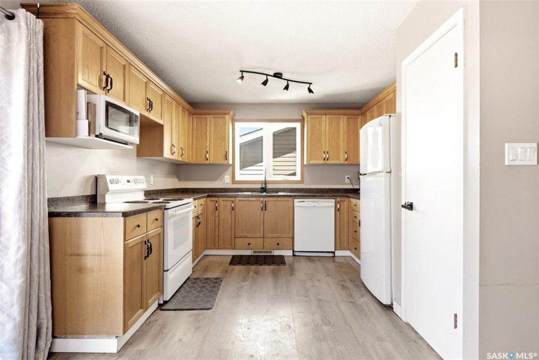 Welcome to 34 Glasgow Street in Normanview West! This bilevel offers space, flexibility, and great value with 3 bedrooms on the main floor and 2 more downstairs. With a second kitchen in the basement, this home is a fantastic option for buyers looking for extra functionality for roommates, billets, or extended family. The main floor features vinyl plank flooring, updated bathrooms, some PVC windows, a high-efficiency furnace, and central air conditioning for year-round comfort. Outside, the backyard offers a large 2-tier deck and convenient lane access, giving you the option to add a future garage. Located near Williston Park with quick access to Sherwood Drive and Ring Road, you'll love how close you are to all of Regina's northwest amenities. A versatile home in a great location with room to grow, live, and invest.