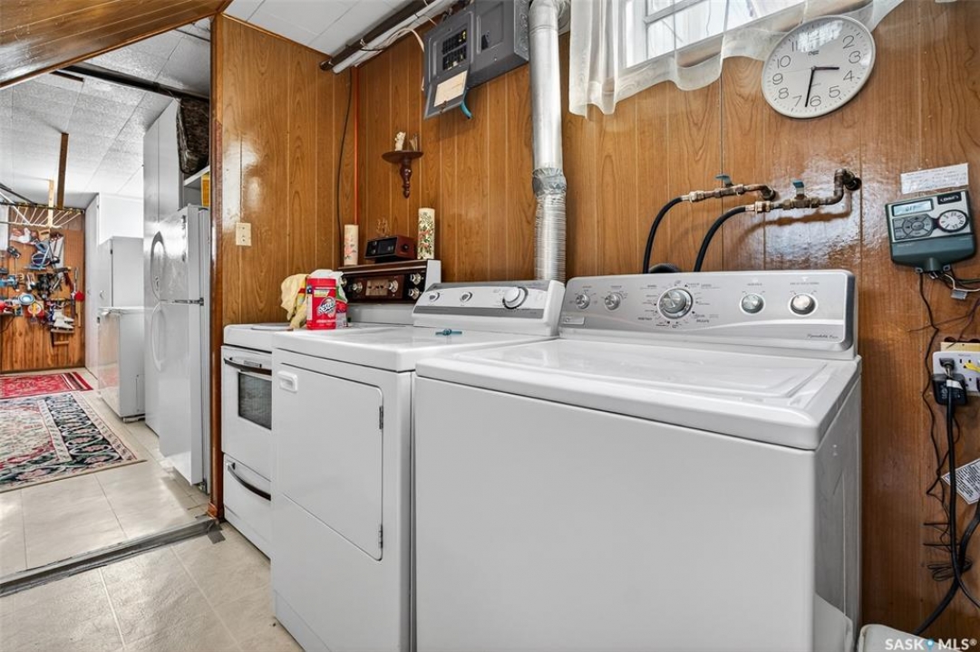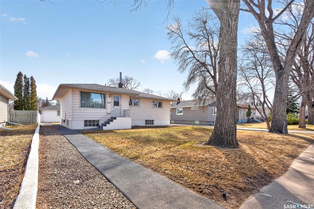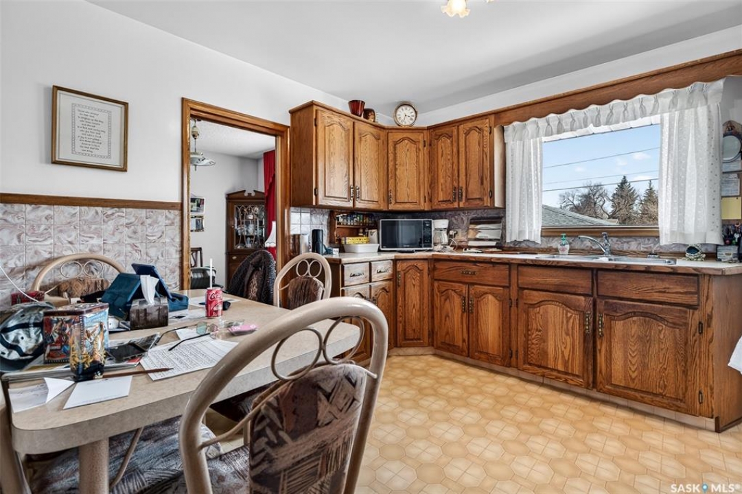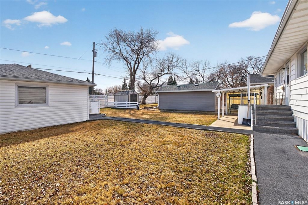 This well-maintained 1,052 sq. ft. raised bungalow offers excellent curb appeal with its crisp white siding and upgraded rubber-paved sidewalks. Inside, you'll find a spacious kitchen featuring classic oak cabinetry, complemented by a formal dining room that flows seamlessly into the bright and inviting living room—perfect for everyday living and entertaining. The main level hosts three comfortable bedrooms and a full four-piece bathroom. Downstairs, the fully developed basement boasts a generous L-shaped family room complete with a wet bar, along with a three-piece bathroom conveniently located in the laundry area and ample storage space throughout. Outside, the partially fenced yard includes a covered patio, underground sprinklers (both front and back yards), 19 x 25 detached garage and additional rear parking, providing both functionality and convenience.