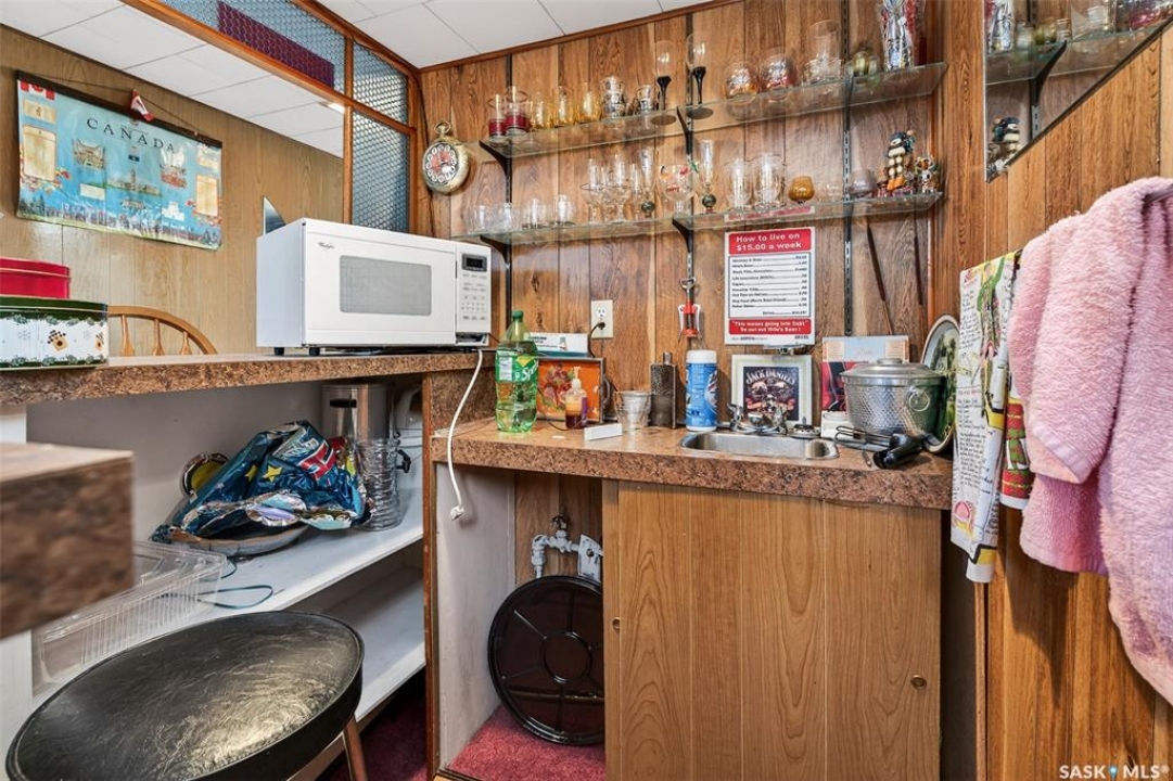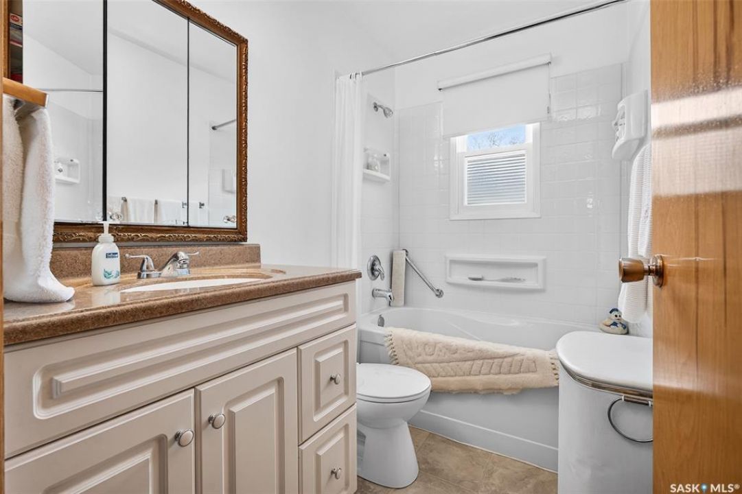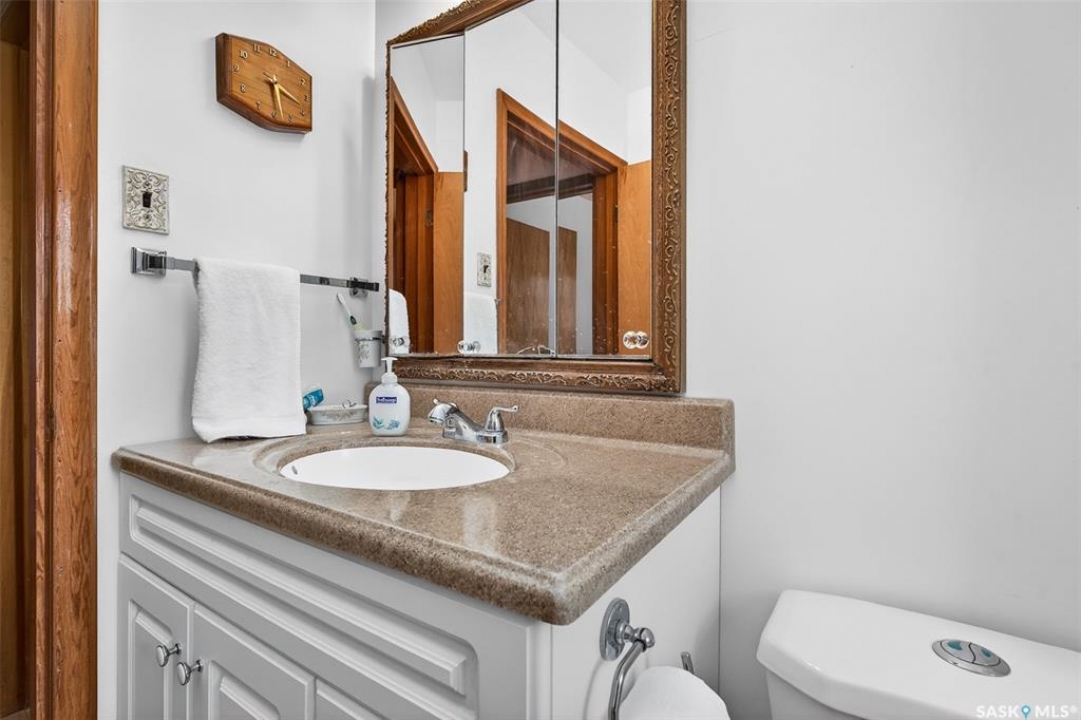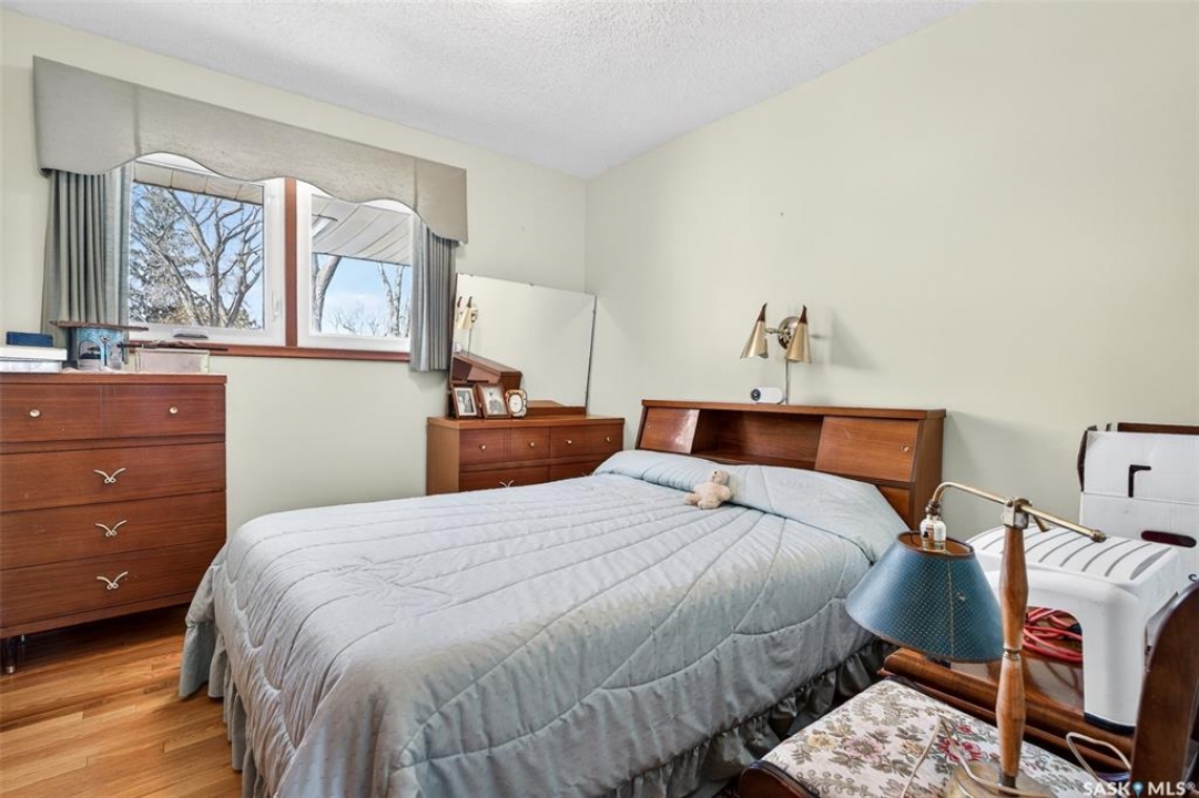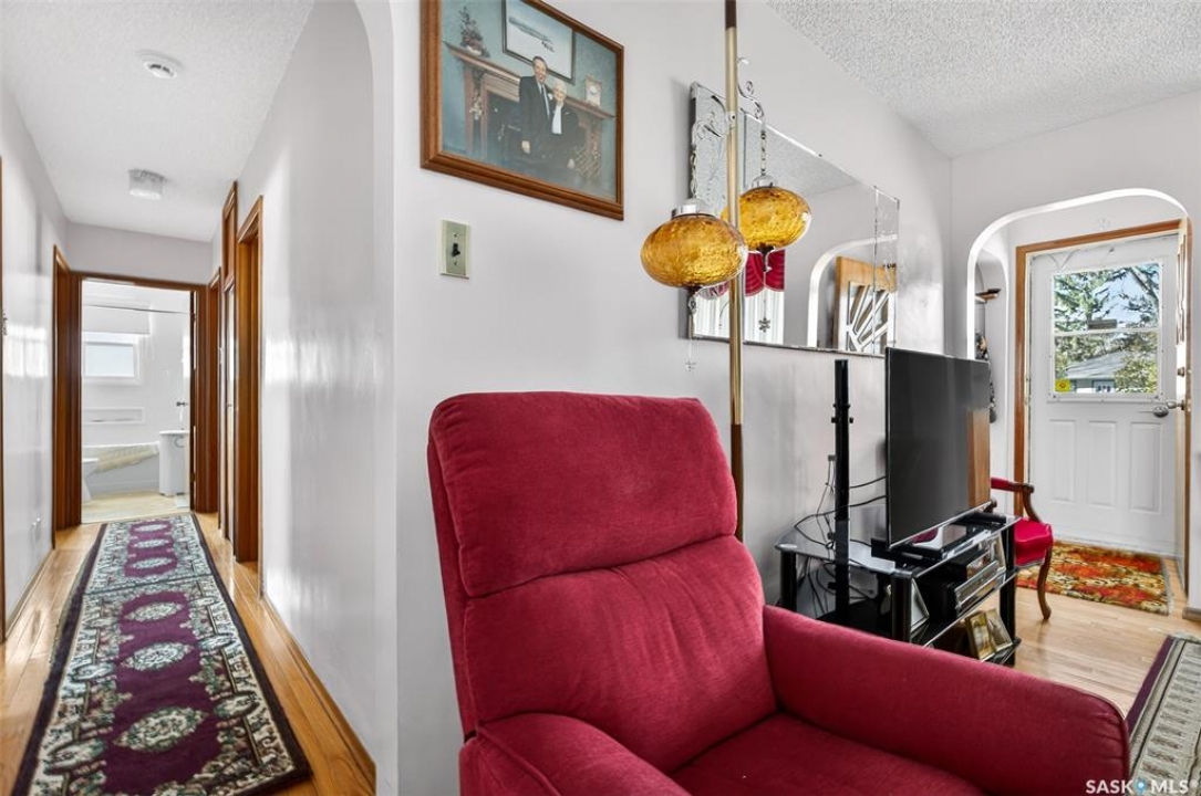 This well-maintained 1,052 sq. ft. raised bungalow offers excellent curb appeal with its crisp white siding and upgraded rubber-paved sidewalks. Inside, you'll find a spacious kitchen featuring classic oak cabinetry, complemented by a formal dining room that flows seamlessly into the bright and inviting living room—perfect for everyday living and entertaining. The main level hosts three comfortable bedrooms and a full four-piece bathroom. Downstairs, the fully developed basement boasts a generous L-shaped family room complete with a wet bar, along with a three-piece bathroom conveniently located in the laundry area and ample storage space throughout. Outside, the partially fenced yard includes a covered patio, underground sprinklers (both front and back yards), 19 x 25 detached garage and additional rear parking, providing both functionality and convenience.