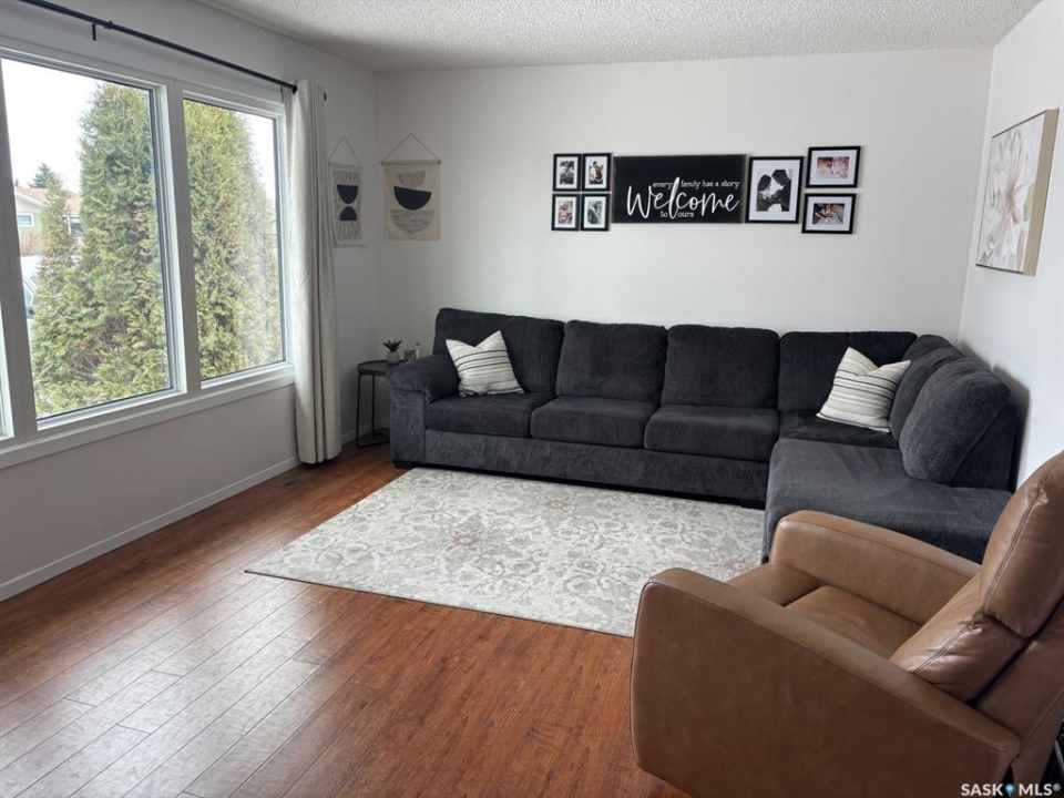 Well cared for 1,040 square foot bungalow built in 1975. Main floor walls and ceiling were professionally painted in 2025. Bright kitchen and living room with lots of natural light, three bedrooms on main floor and a 4 piece bath. The basement features new development with family room, one large bedroom and three piece bath with new flooring, paint and ceiling and new fixtures. Large laundry/storage room, cold room and separate workshop area/storage. Exterior is vinyl siding over Styrofoam insulation, PVC windows, metal soffit, fascia and eavestrough. The shingles are in very good condition The yard is fully fenced, fully accessible with wheelchair ramp; composite front deck, ramp and step. Low maintenance yard with grass front & back with two storage sheds. Conveniently located near elementary and high schools. Move in ready with quick possession available if needed.