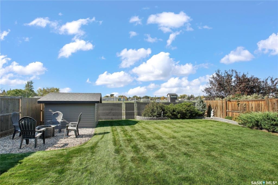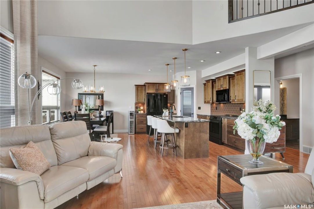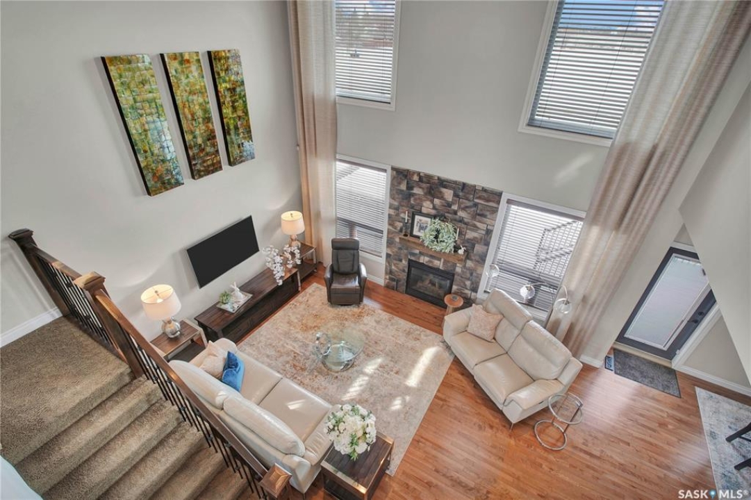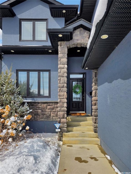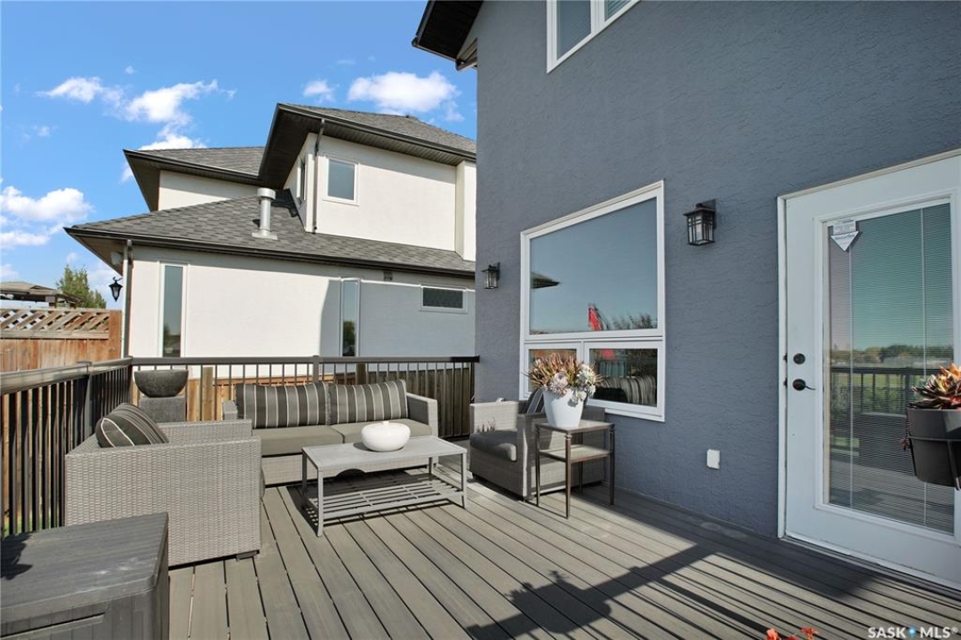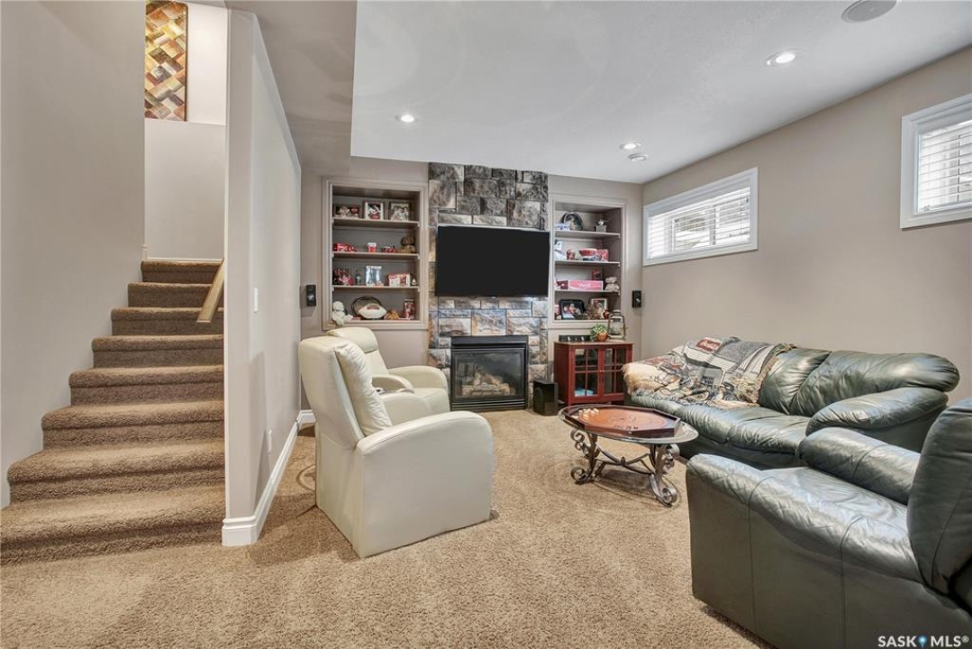 Welcome to this immaculate two-storey home, ideally located on one of Martensville's most desirable streets. Thoughtfully designed with an open-concept layout, this home offers the perfect blend of style, comfort, and functionality. The main floor features a spacious kitchen and dining area complete with a massive island, granite countertops, and a convenient walk-through pantry—perfect for everyday living and entertaining alike. The inviting living room is highlighted by a cozy gas fireplace, while the laundry/mudroom is ideally situated just off the fully finished 2-car garage, which boasts PVC paneling on both walls and ceiling. Upstairs, you'll find a beautiful primary retreat with a stunning ensuite and walk-in closet, along with two additional good sized bedrooms and a full 4-piece bathroom. The fully developed basement offers even more living space, including a large family room with a second gas fireplace, an additional bedroom, a 4-piece bathroom, and ample storage. This home is loaded with upgrades, including Chic Stucco Coating, UV window coating at the rear of the home, programmable underground sprinklers, and a premium polyaspartic-coated concrete patio. Additional highlights include a newer gazebo, newer garage doors, updated lighting throughout, updated paint and a newer composite deck. And so much more! A truly turnkey property with exceptional attention to detail—this is one you won't want to miss.