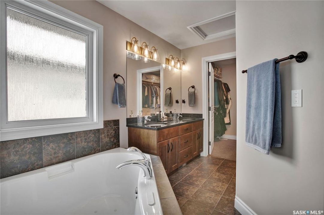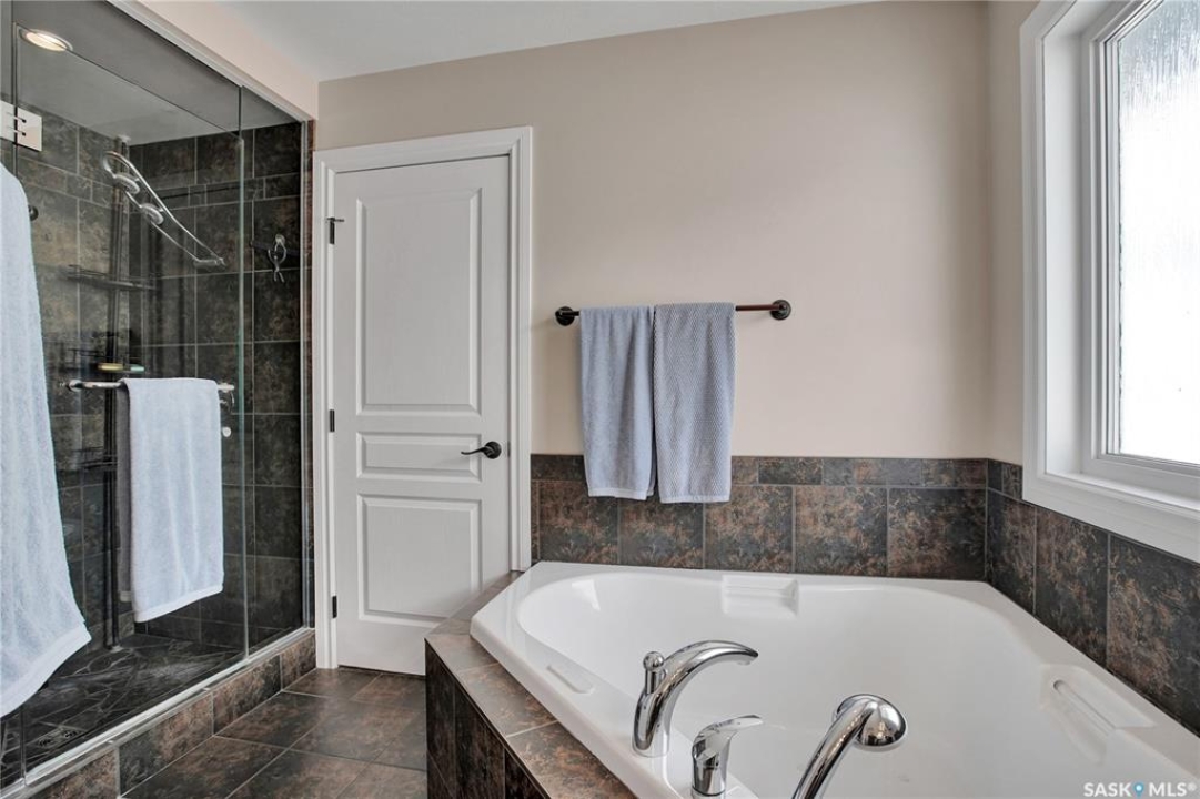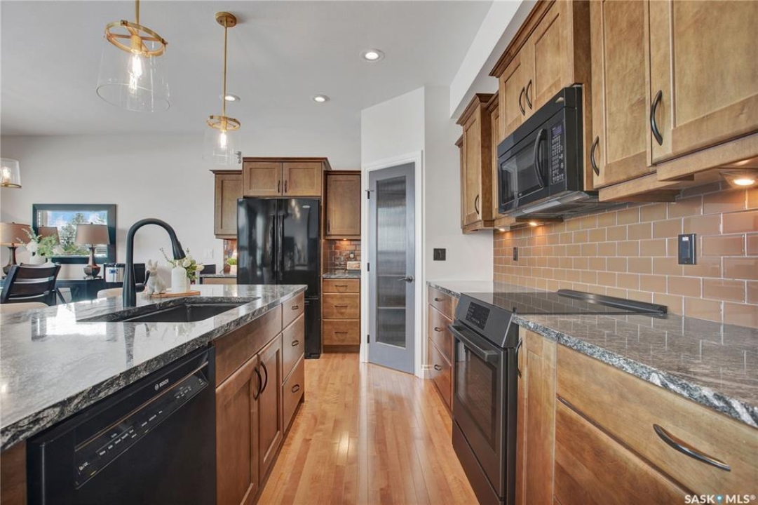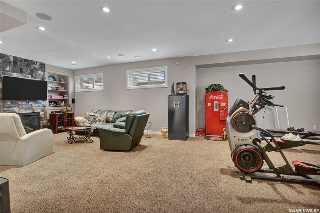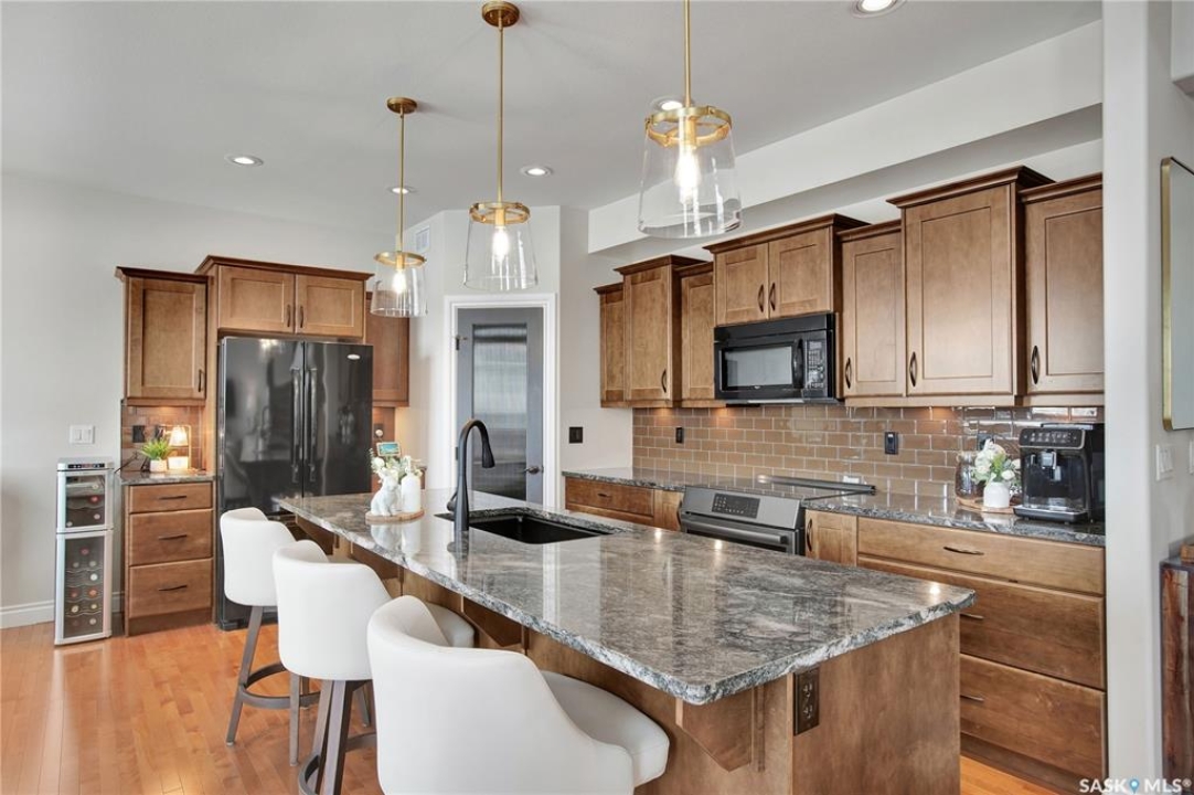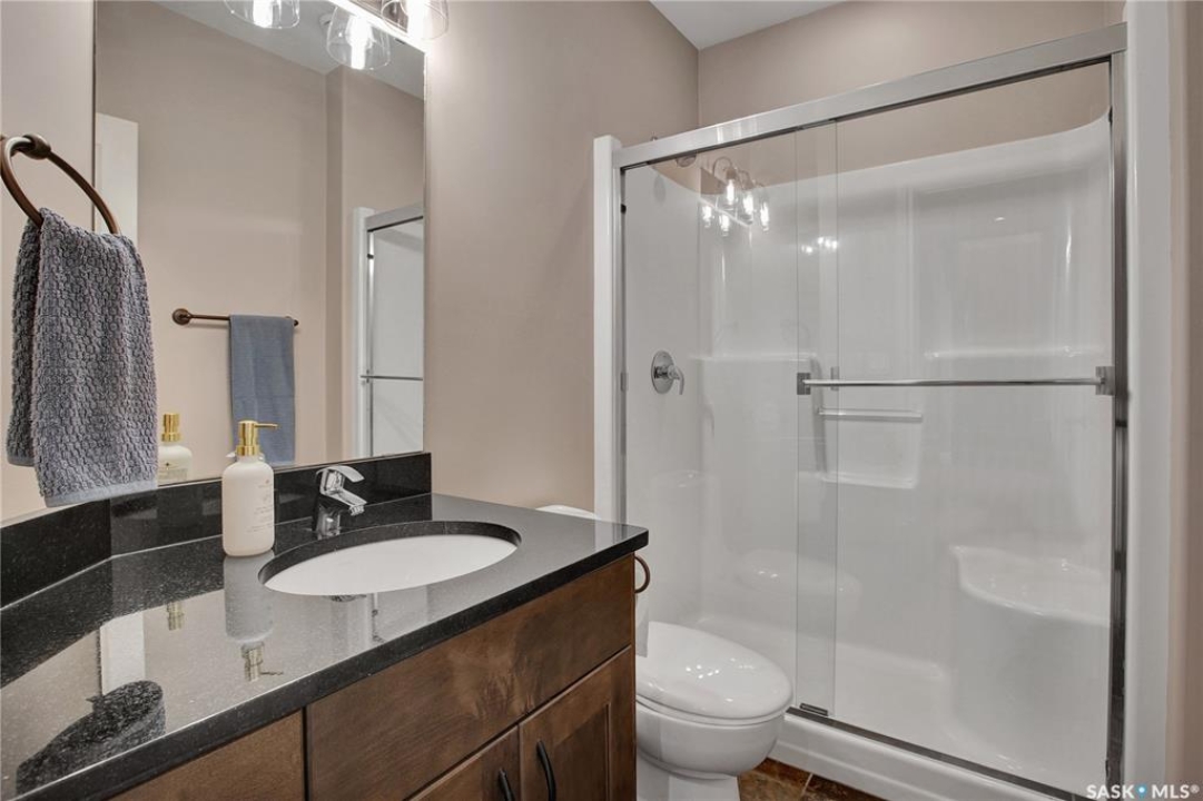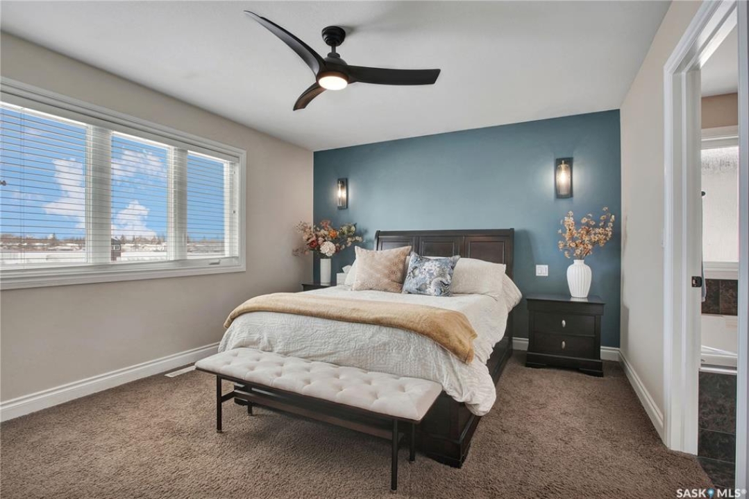 Welcome to this immaculate two-storey home, ideally located on one of Martensville's most desirable streets. Thoughtfully designed with an open-concept layout, this home offers the perfect blend of style, comfort, and functionality. The main floor features a spacious kitchen and dining area complete with a massive island, granite countertops, and a convenient walk-through pantry—perfect for everyday living and entertaining alike. The inviting living room is highlighted by a cozy gas fireplace, while the laundry/mudroom is ideally situated just off the fully finished 2-car garage, which boasts PVC paneling on both walls and ceiling. Upstairs, you'll find a beautiful primary retreat with a stunning ensuite and walk-in closet, along with two additional good sized bedrooms and a full 4-piece bathroom. The fully developed basement offers even more living space, including a large family room with a second gas fireplace, an additional bedroom, a 4-piece bathroom, and ample storage. This home is loaded with upgrades, including Chic Stucco Coating, UV window coating at the rear of the home, programmable underground sprinklers, and a premium polyaspartic-coated concrete patio. Additional highlights include a newer gazebo, newer garage doors, updated lighting throughout, updated paint and a newer composite deck. And so much more! A truly turnkey property with exceptional attention to detail—this is one you won't want to miss.