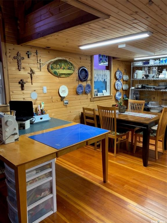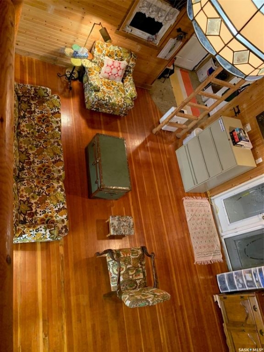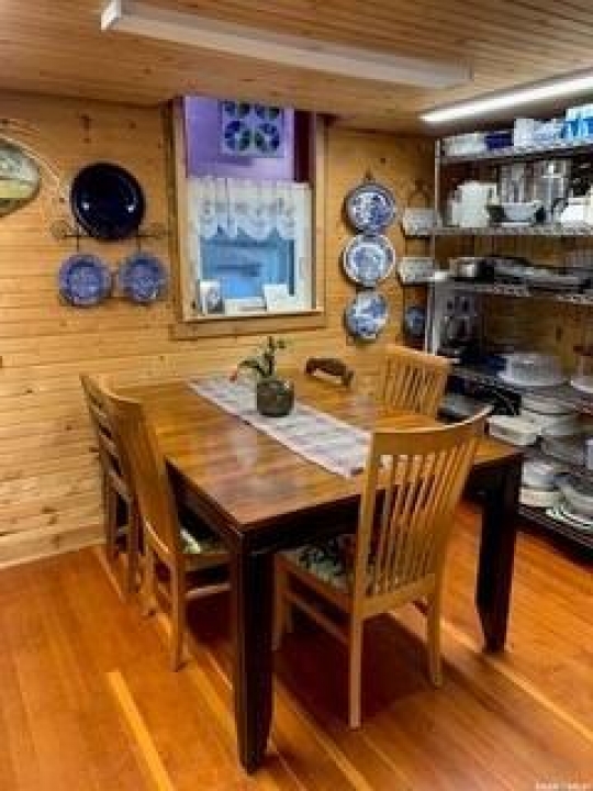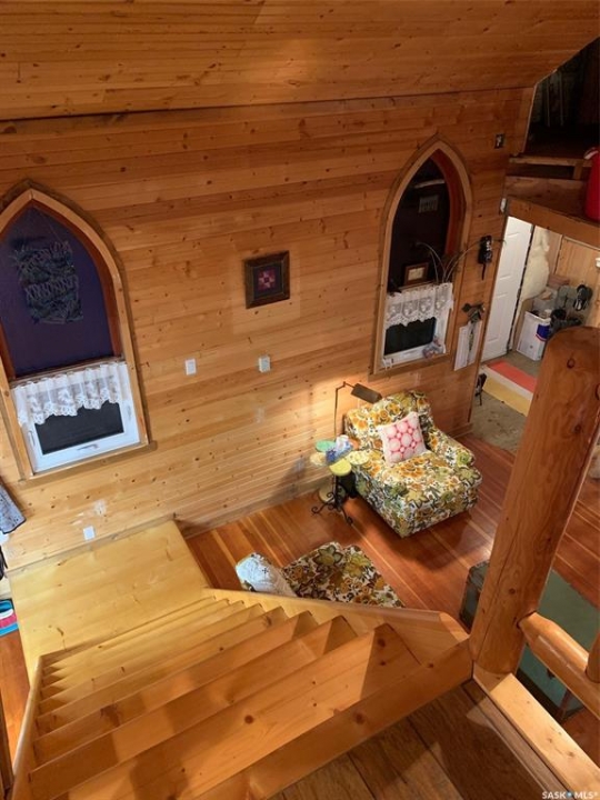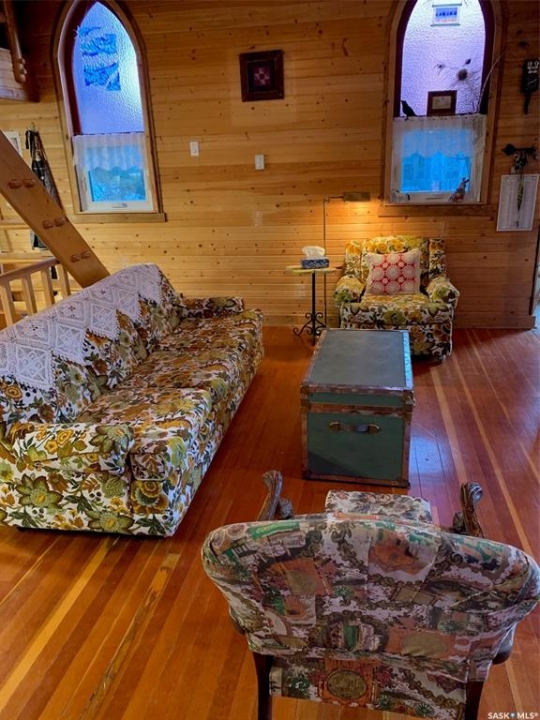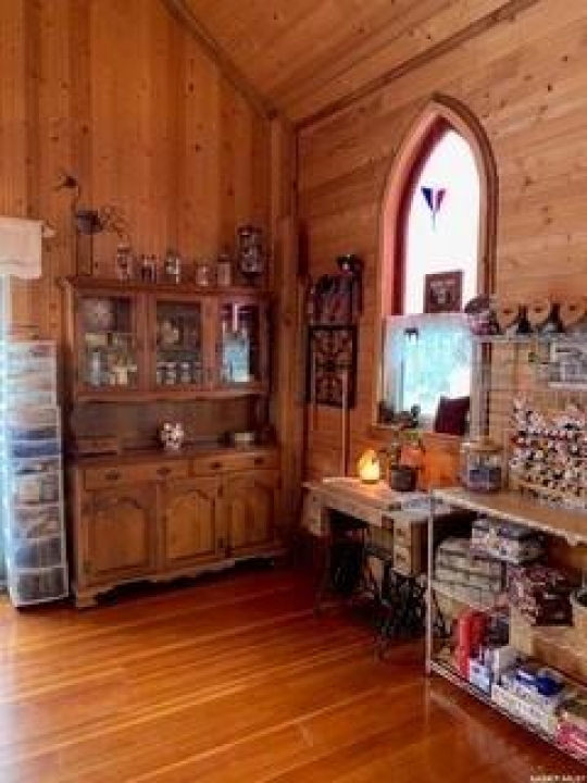 Charm. Serenity. Glowing light in your private oasis. This 1935 renovated church can give you all the peace and quiet of living on a private double lot in the village of Glaslyn. With the original fir wood flooring on the main level, the open layout reflects a golden glow from the clerestory windows, while an elevated stained-glass window above the entry provides a biblical conversation piece and an exquisite focal point. Frosted garden doors lead out onto the raised deck overlooking your lawn with fruit trees and shrubs. The spacious loft up the solid and attractive exposed staircase provides a simple and private space that fits with the classic spirit of the home. On the lower level, you will find more quality craftsmanship in the acid washed concrete floor throughout the open family space. In-floor heat keeps the home comfortable and inviting. Surrounded by shrubs and trees, the property is close enough to all amenities that you can walk uptown but is on a quiet street and almost hidden in its privacy. Own the most interesting home in town - book a showing today