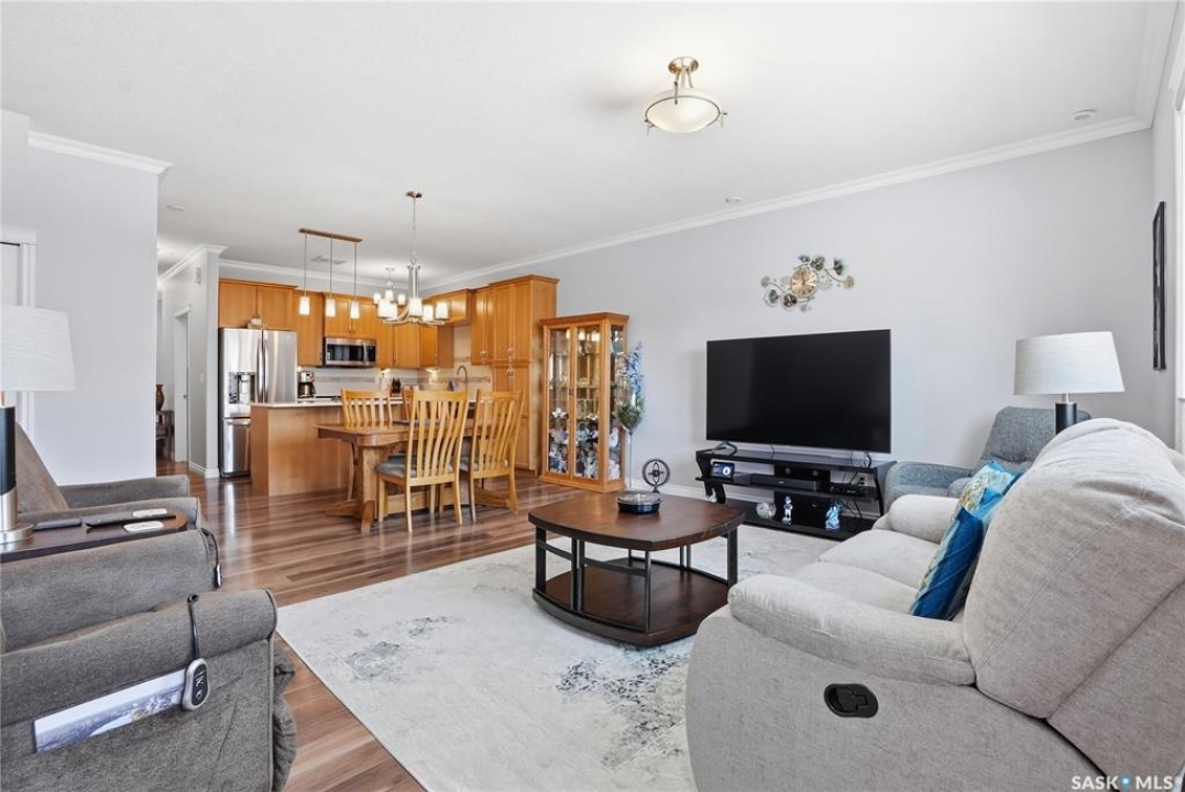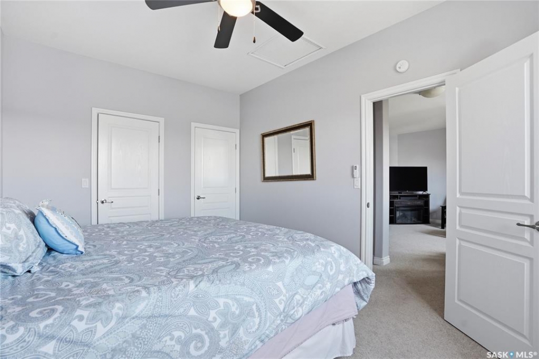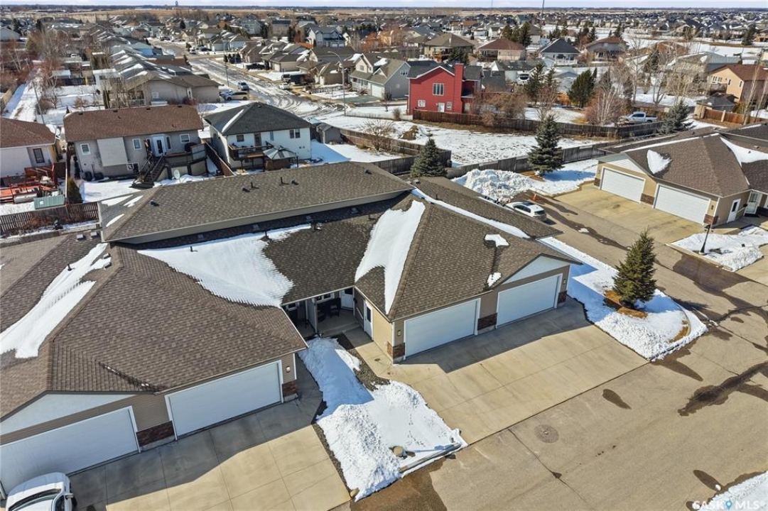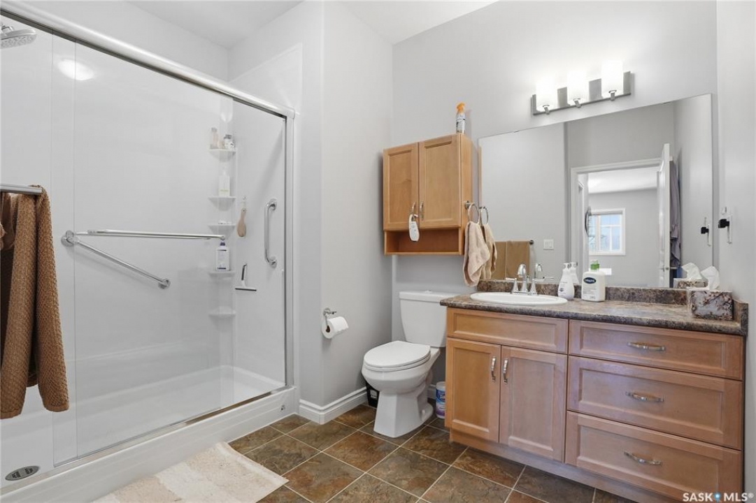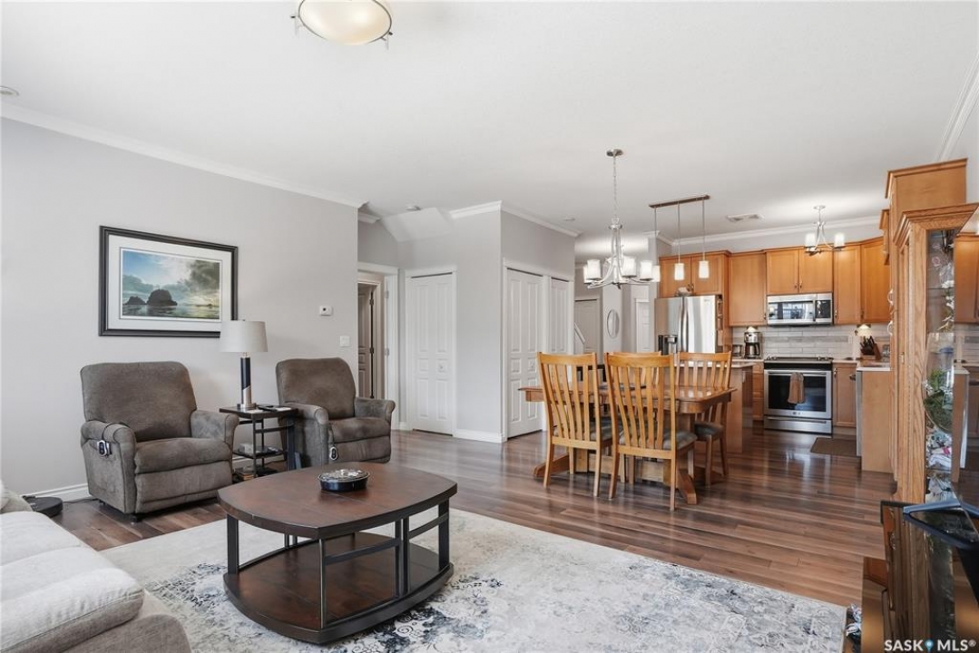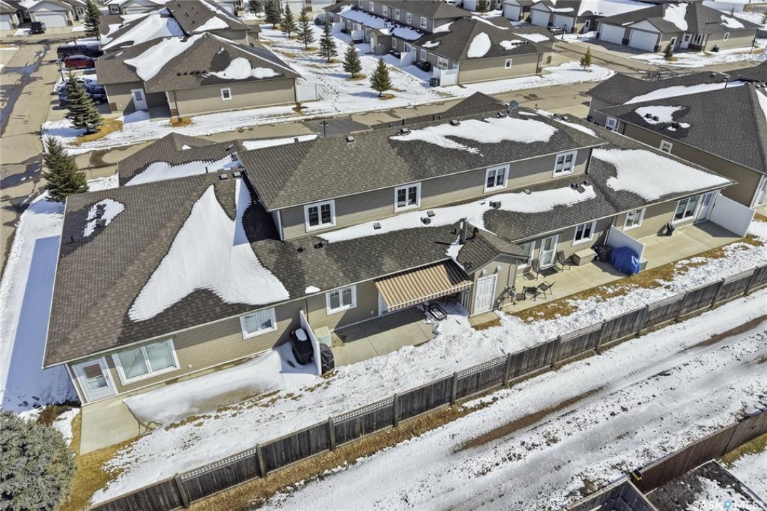 Welcome to #7- 100 Brooklyn Lane. Step inside this spacious 1770 sq ft two-storey townhouse nestled in the heart of Warman. Geared towards people that are 55+ these homes are perfect for people looking to downsize. Located right off the front entrance is the den which is roomy enough to be used as a third bedroom. Main floor laundry and a 2 piece bathroom are conveniently just down the hall. The double attached garage has direct entry into the front foyer. Still like to work on the car, or have hobbies you are interested in? Not a problem here! Over $10,000 has been invested into the garage offering plenty if built in cabinetry to store all your tools and epoxy flooring for a fresh, clean look. Don't let the fact that this home is a two storey fool you.... the master suite is located on the main floor! Mobility problems? Not an issue here. The massive master bedroom easily accommodates a king size bedroom set and boasts plenty of storage space in the walk-in closet. The master en-suite features an upgraded full size shower done by Bathfitter. 9 ft ceilings and an open concept main living area keep the space bright and airy. The kitchen features an abundance of maple cabinetry, upgraded marble countertops, tile backsplash, large island and updated stainless steel appliances. Enjoy the sunny afternoon on your private patio space face west, complete with a motorized retractable awning. Head on upstairs to enjoy a large family room which is perfect for extra company, craft space or even man cave. The 2nd floor also features a fantastic bedroom and full 4 piece bathroom. This home also features in-floor heat on the main floor in combination with Hi velocity air system. Condo fees include snow removal, building maintenance, water, sewer, heat, reserve fund, lawn care.... you only pay your own electric bill. You need to see it in person and you'll love this rare bungalow style living with a bonus second floor. Call to schedule your showing today