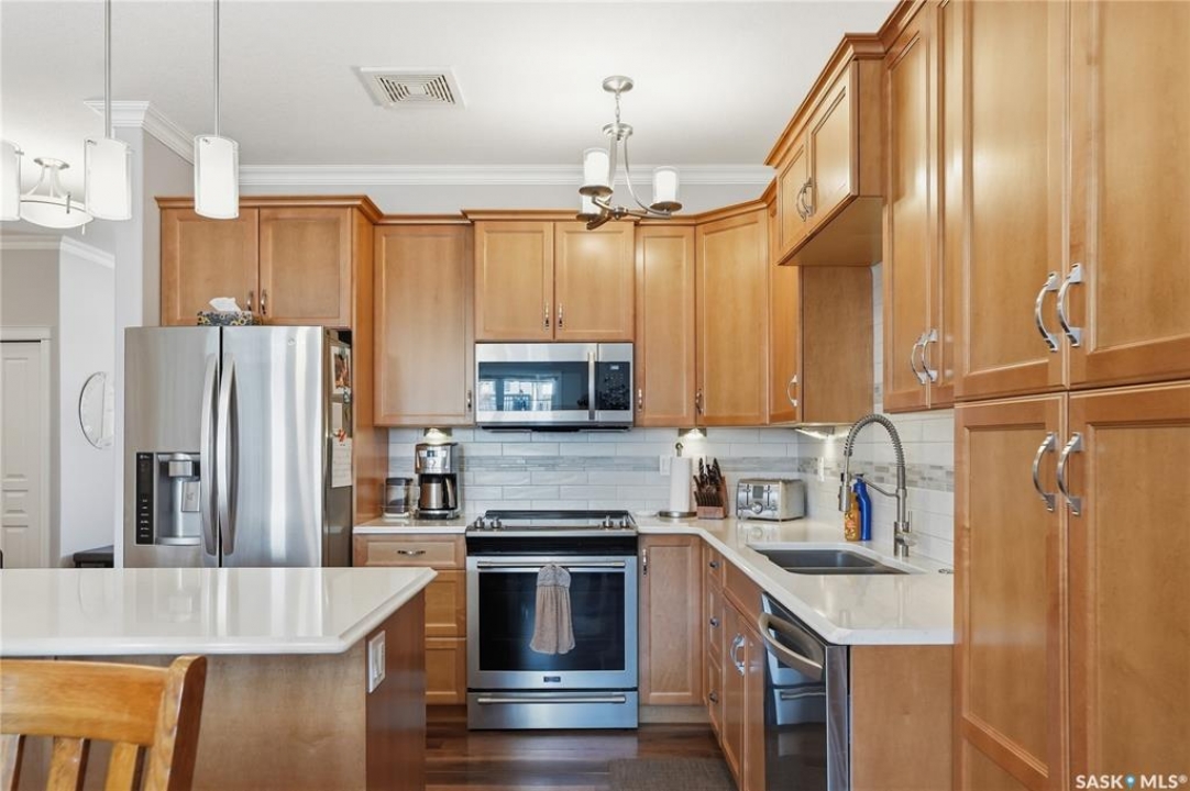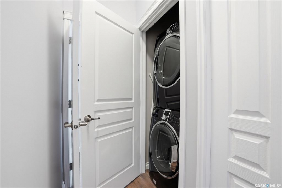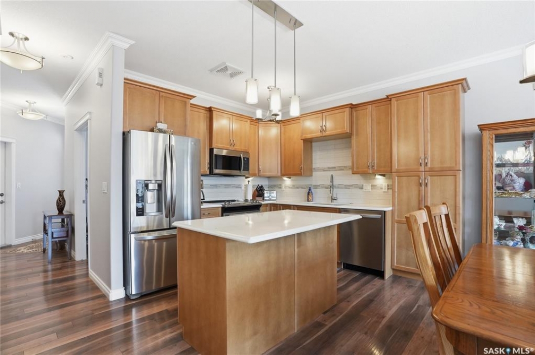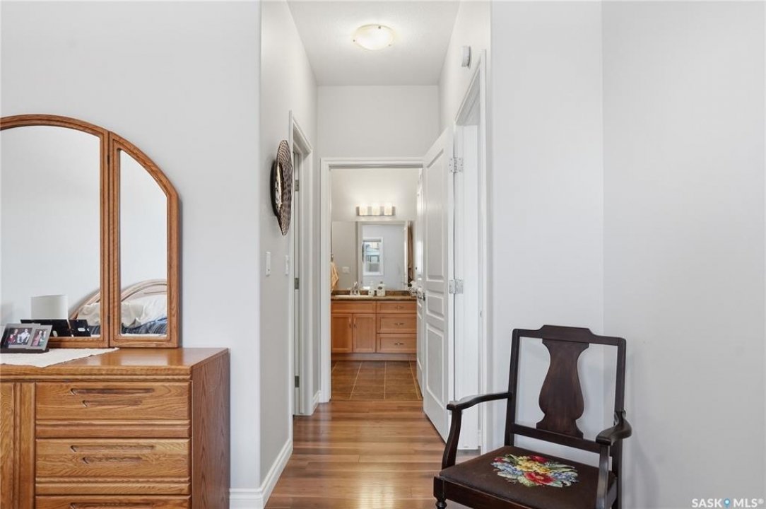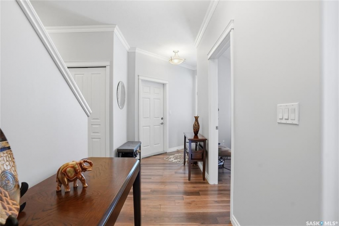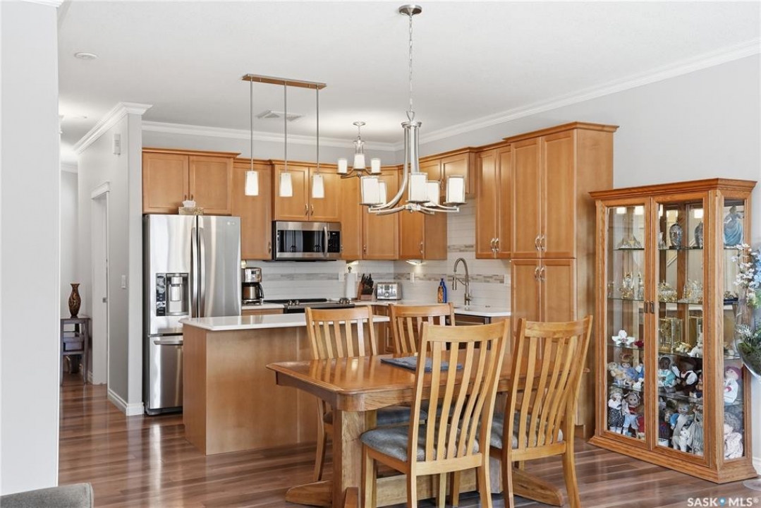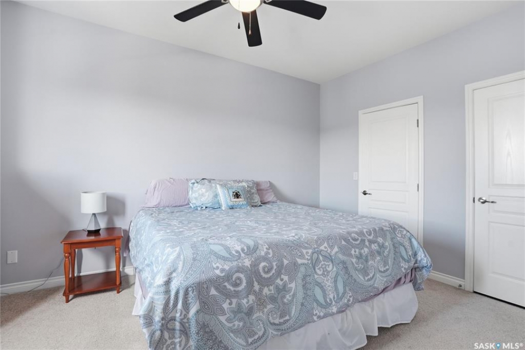 Welcome to #7- 100 Brooklyn Lane. Step inside this spacious 1770 sq ft two-storey townhouse nestled in the heart of Warman. Geared towards people that are 55+ these homes are perfect for people looking to downsize. Located right off the front entrance is the den which is roomy enough to be used as a third bedroom. Main floor laundry and a 2 piece bathroom are conveniently just down the hall. The double attached garage has direct entry into the front foyer. Still like to work on the car, or have hobbies you are interested in? Not a problem here! Over $10,000 has been invested into the garage offering plenty if built in cabinetry to store all your tools and epoxy flooring for a fresh, clean look. Don't let the fact that this home is a two storey fool you.... the master suite is located on the main floor! Mobility problems? Not an issue here. The massive master bedroom easily accommodates a king size bedroom set and boasts plenty of storage space in the walk-in closet. The master en-suite features an upgraded full size shower done by Bathfitter. 9 ft ceilings and an open concept main living area keep the space bright and airy. The kitchen features an abundance of maple cabinetry, upgraded marble countertops, tile backsplash, large island and updated stainless steel appliances. Enjoy the sunny afternoon on your private patio space face west, complete with a motorized retractable awning. Head on upstairs to enjoy a large family room which is perfect for extra company, craft space or even man cave. The 2nd floor also features a fantastic bedroom and full 4 piece bathroom. This home also features in-floor heat on the main floor in combination with Hi velocity air system. Condo fees include snow removal, building maintenance, water, sewer, heat, reserve fund, lawn care.... you only pay your own electric bill. You need to see it in person and you'll love this rare bungalow style living with a bonus second floor. Call to schedule your showing today