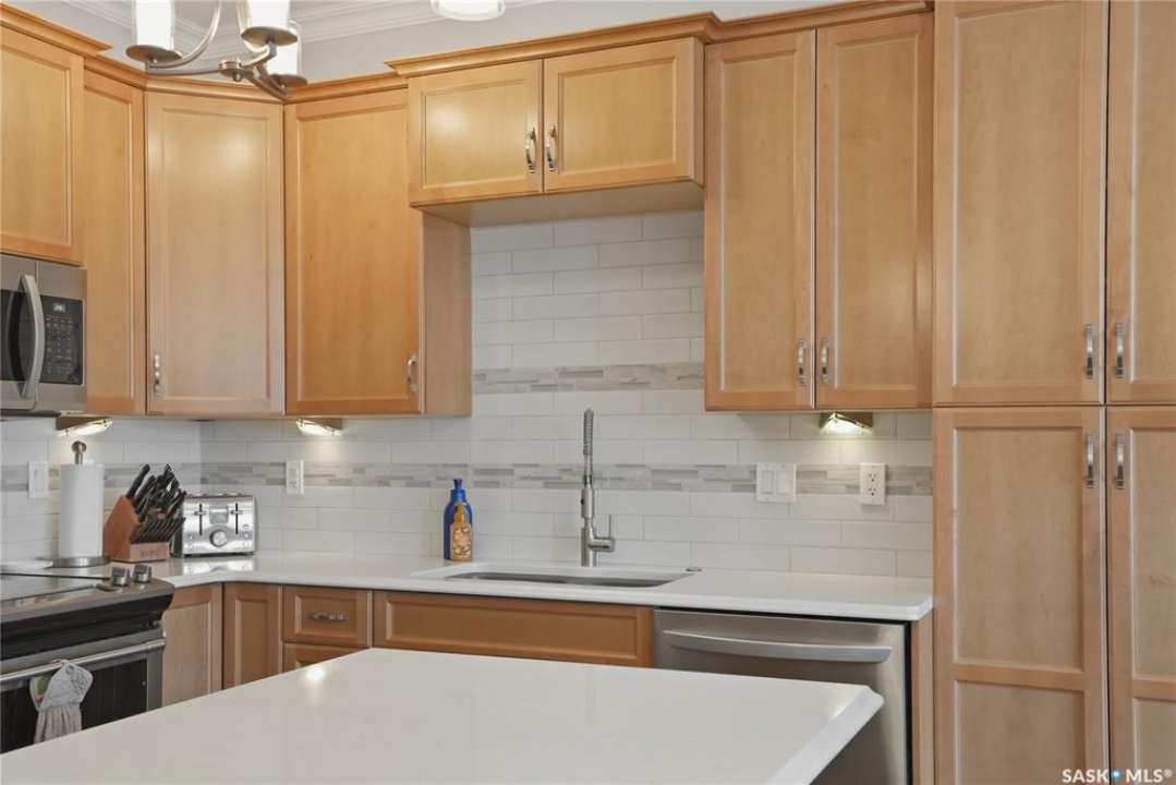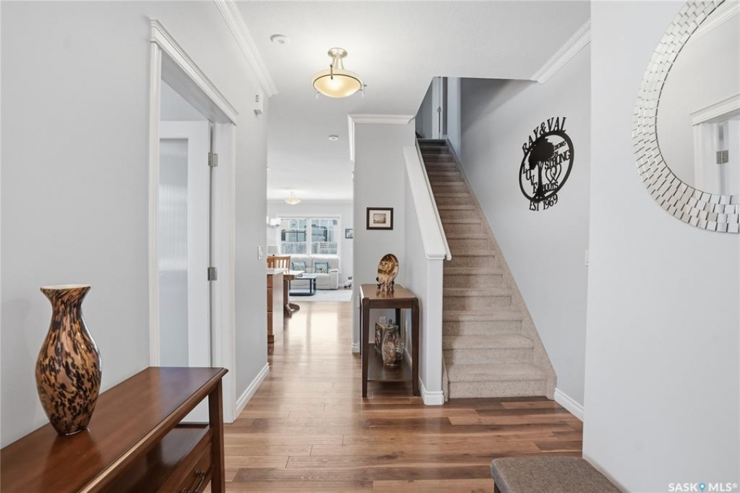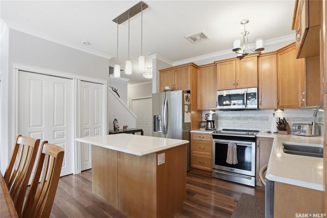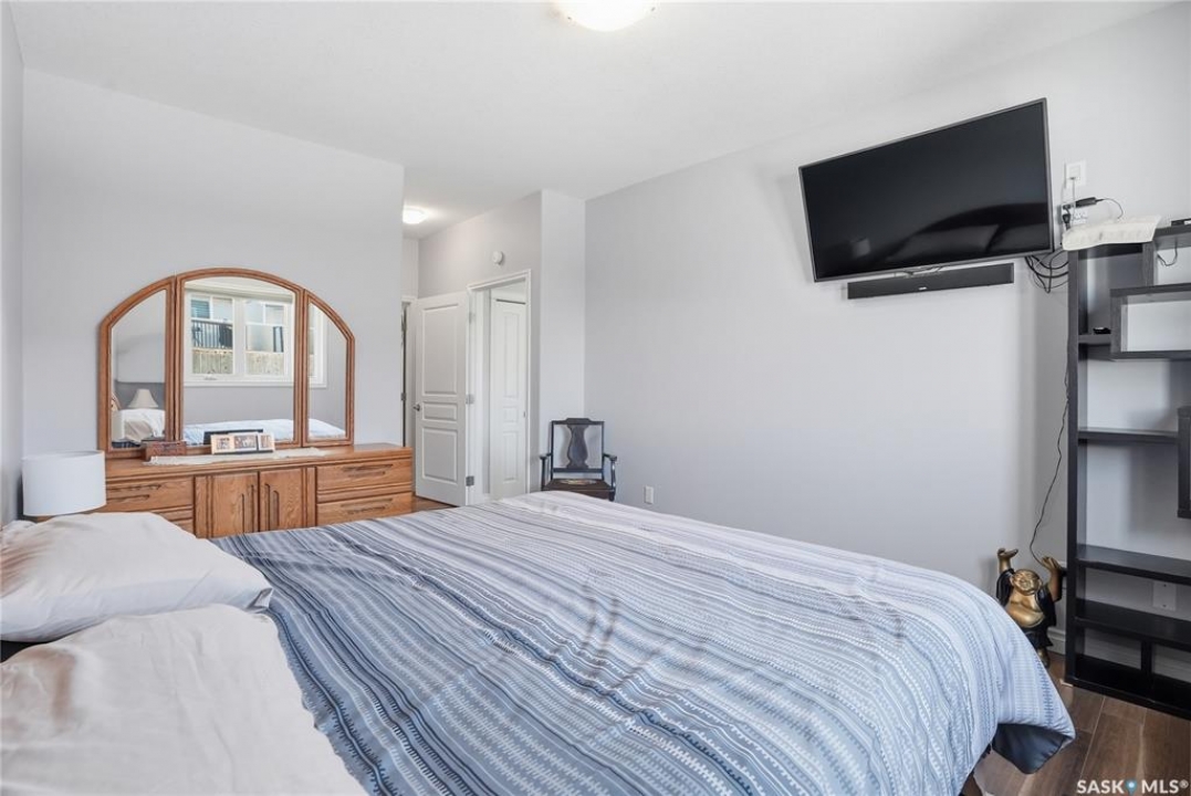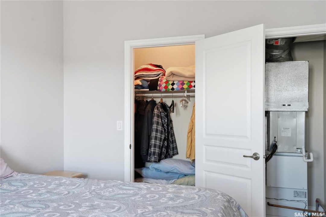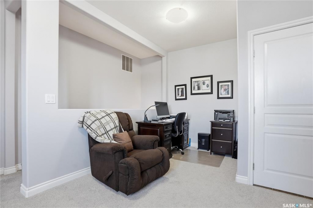 Welcome to #7- 100 Brooklyn Lane. Step inside this spacious 1770 sq ft two-storey townhouse nestled in the heart of Warman. Geared towards people that are 55+ these homes are perfect for people looking to downsize. Located right off the front entrance is the den which is roomy enough to be used as a third bedroom. Main floor laundry and a 2 piece bathroom are conveniently just down the hall. The double attached garage has direct entry into the front foyer. Still like to work on the car, or have hobbies you are interested in? Not a problem here! Over $10,000 has been invested into the garage offering plenty if built in cabinetry to store all your tools and epoxy flooring for a fresh, clean look. Don't let the fact that this home is a two storey fool you.... the master suite is located on the main floor! Mobility problems? Not an issue here. The massive master bedroom easily accommodates a king size bedroom set and boasts plenty of storage space in the walk-in closet. The master en-suite features an upgraded full size shower done by Bathfitter. 9 ft ceilings and an open concept main living area keep the space bright and airy. The kitchen features an abundance of maple cabinetry, upgraded marble countertops, tile backsplash, large island and updated stainless steel appliances. Enjoy the sunny afternoon on your private patio space face west, complete with a motorized retractable awning. Head on upstairs to enjoy a large family room which is perfect for extra company, craft space or even man cave. The 2nd floor also features a fantastic bedroom and full 4 piece bathroom. This home also features in-floor heat on the main floor in combination with Hi velocity air system. Condo fees include snow removal, building maintenance, water, sewer, heat, reserve fund, lawn care.... you only pay your own electric bill. You need to see it in person and you'll love this rare bungalow style living with a bonus second floor. Call to schedule your showing today