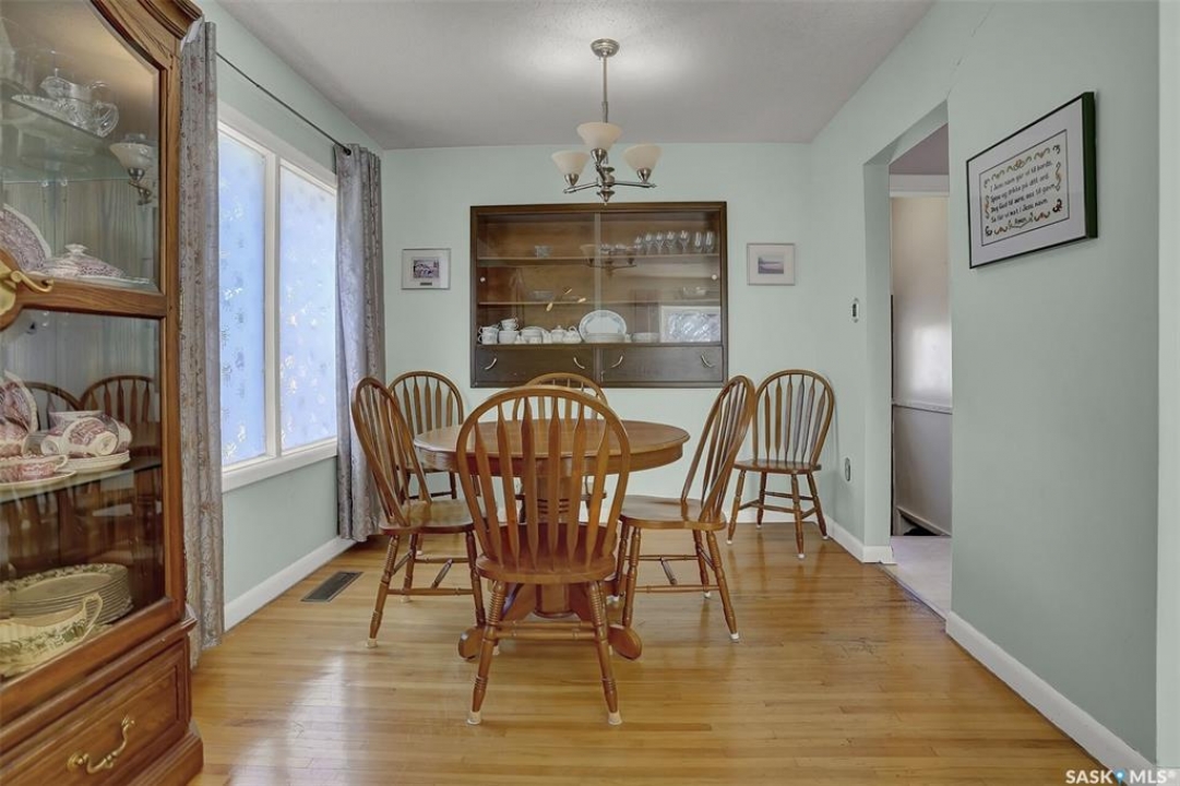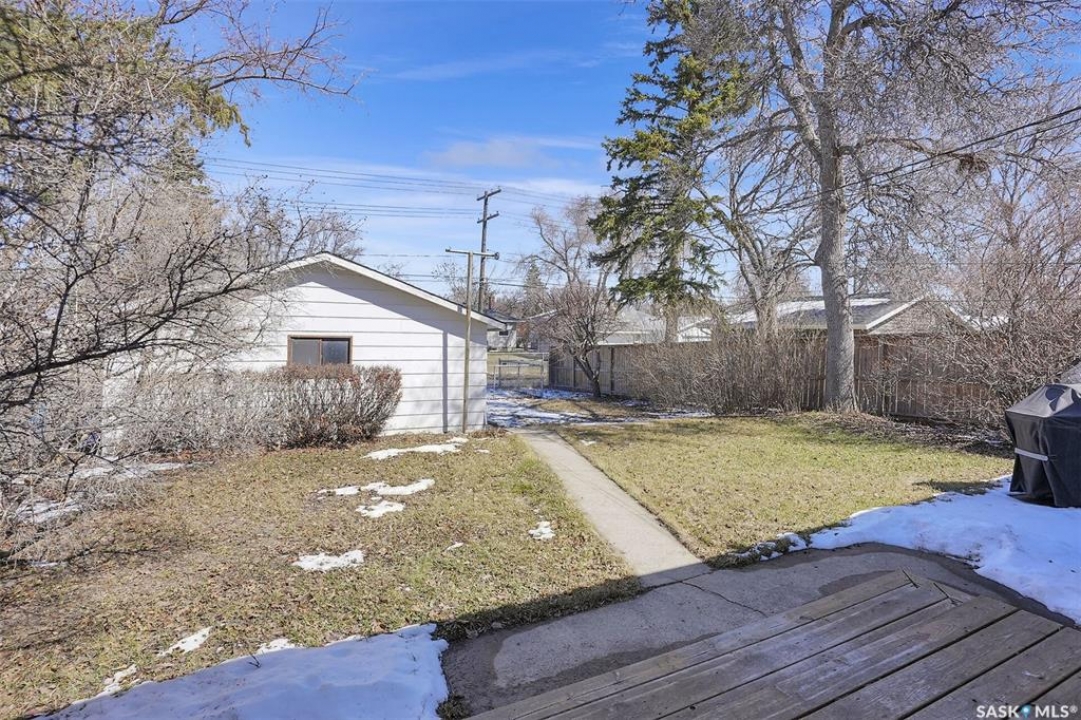 Welcome to this well-maintained 969 sq ft bungalow located in the desirable Regina neighbourhood of River Heights. Offering a functional layout and numerous key updates, this home is a great opportunity for a variety of buyers. Original hardwood flooring greets you upon entry and flows throughout the main living room, formal dining area, hallway, and both spacious bedrooms, adding warmth and character. The U-shaped kitchen overlooks the backyard, providing both functionality and a great view of the outdoor space. The updated 4-piece main bathroom is conveniently situated between the two bedrooms. The fully developed basement expands your living space with a large rec room, an additional bedroom, a den, and a 3-piece bathroom. The utility/laundry room offers plenty of storage. Outside, the fully fenced yard offers plenty of space to enjoy, along with additional parking beside the double detached garage. The garage features new shingles (2025), as well as a newer garage door and opener. A solid home with great space and key upgrades already completed—ready for its next owner.