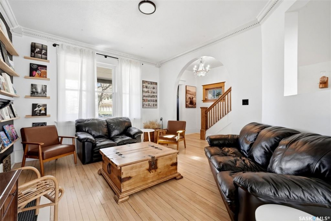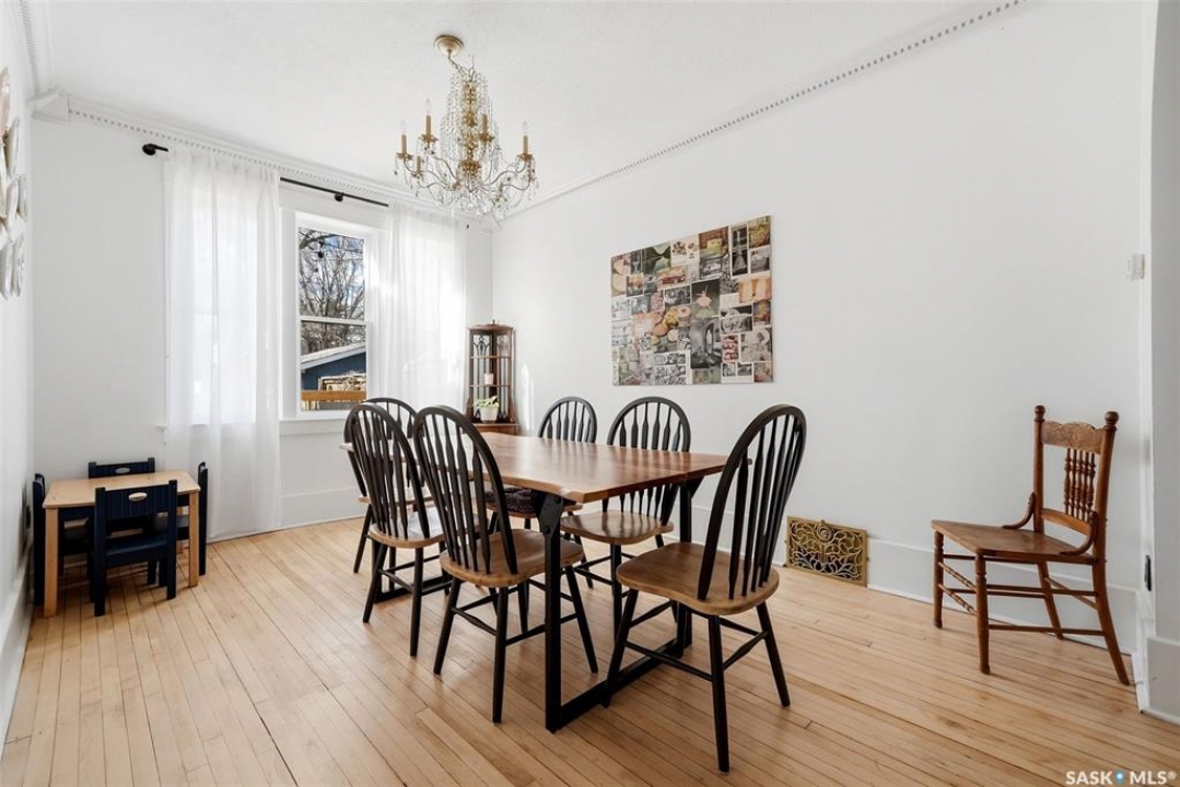 Welcome to 2322 Retallack Street, a charming character home that blends timeless details with thoughtful modern updates. The inviting enclosed front porch leads into a bright main floor featuring spacious living and dining areas, hardwood flooring, large windows, and beautiful original woodwork that adds warmth and personality throughout. The kitchen has been tastefully refreshed with modern cabinetry, updated counters, stylish black backsplash, and a functional eat-in layout. Upstairs, the home offers bright, comfortable bedrooms along with an updated bathroom, while the lower level provides additional storage and utility space. Outside, the fully fenced backyard is set up for relaxing and entertaining with a patio area, fire pit space, and room for play or gardening. A great opportunity to own a move-in ready home with character, style, and an appealing yard in a central Regina location.
