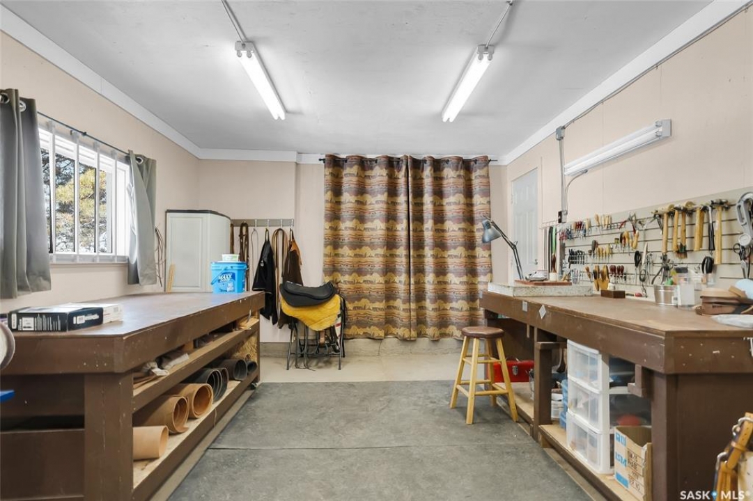 This well established equestrian acreage west of Saskatoon offers the space and functionality that horse owners are searching for. This property has been cared for by the same owner for 21 years, with thoughtful improvements made over time to support both comfortable living and a working country property. The yard is beautifully matured with established trees, creating a private, sheltered setting. The equine setup is extensive and ready to use, featuring a large arena that can be split, 7 corrals, 5 water bowls, a hydrant, and multiple shelters including a large livestock shelter and hay storage. The former dairy barn has been upgraded with metal siding and offers a versatile space with a generous tack room and room to expand your setup if needed. A heated shop and separate workshop adds even more flexibility, ideal for hobbies, projects, or business use. The 1,266 sq. ft. home built by Warman Homes offers a functional layout with 3 bedrooms up and a finished basement, providing additional living space, a 3-piece bath, a bedroom, and a large storage area/den. If desired, it would not be hard to turn the den into an additional bedroom. Numerous updates have been completed over the years, including all new flooring, fresh paint throughout, updated bathrooms (March 2023), newer shingles, updated window panes, and a newer hot water tank (2020/2022). Water systems have also been upgraded with a reverse osmosis system (approx. 3 years), water softener (5 years), and a new well pump (2022). Outside, enjoy both front and back decks, irrigation to the trees, and fencing set up with a combination of 3 & 4 strand barbed wire. The property offers plenty of room to expand or tailor the setup to your specific needs. Services include natural gas, a well water system, and septic surface pump out. This is a great opportunity to step into a well developed acreage ideal for horse owners, hobby farmers, or anyone looking to enjoy country living without starting from scratch.