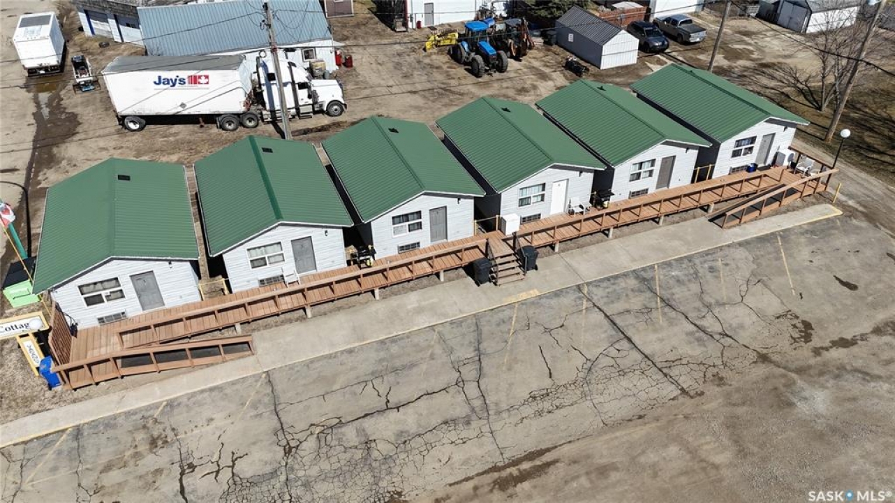 Open for offers from April 21, 10am to May 15th, 10am. All offers are to be left open until May 18th 5pm. Highest or any offer not necessarily accepted: Cottages for sale in the busy town of Lampman. The property includes 6 updated cabins, one of which serves as the booking office and also houses the laundry area. Each cabin is 384 sq ft and comes with its own electric heating and cooling. The layouts are similar throughout, featuring a large main room set up as a bedroom with a TV, microwave, mini fridge, and dresser. Off the main space, there's a separate bedroom and a 3-piece bathroom. One of the units is wheelchair accessible. All cabins are connected by a large shared deck. The cabins can also be moved by the new owner if they choose to relocate them. Offers to purchase can be seen in real time, contact REALTOR � to learn how.