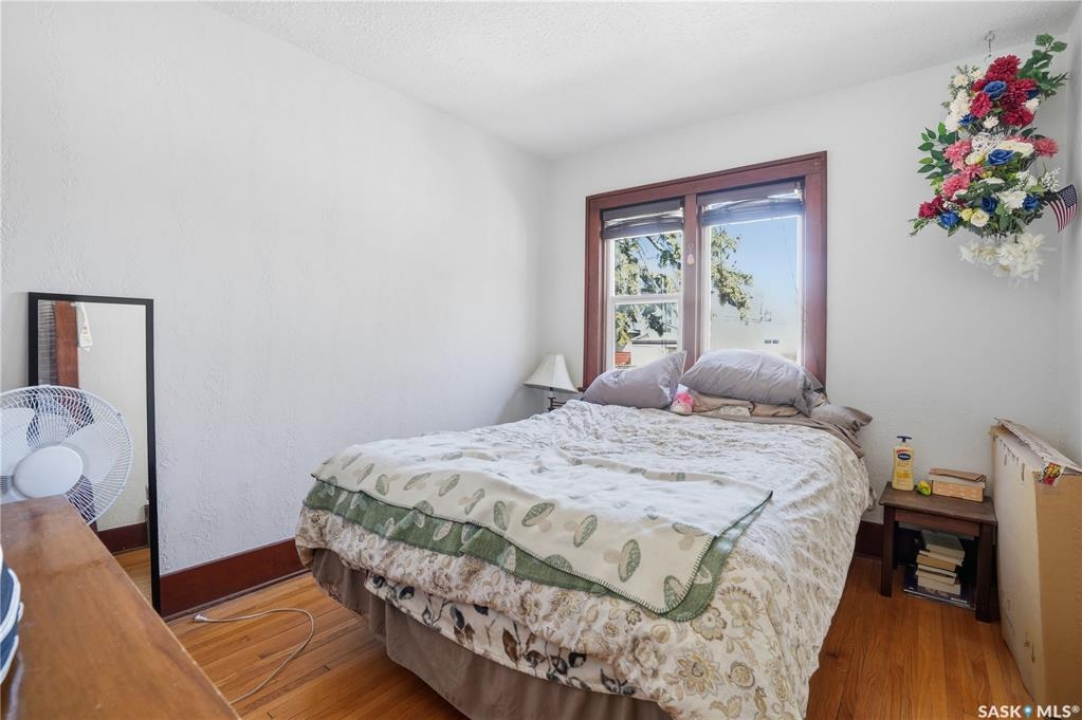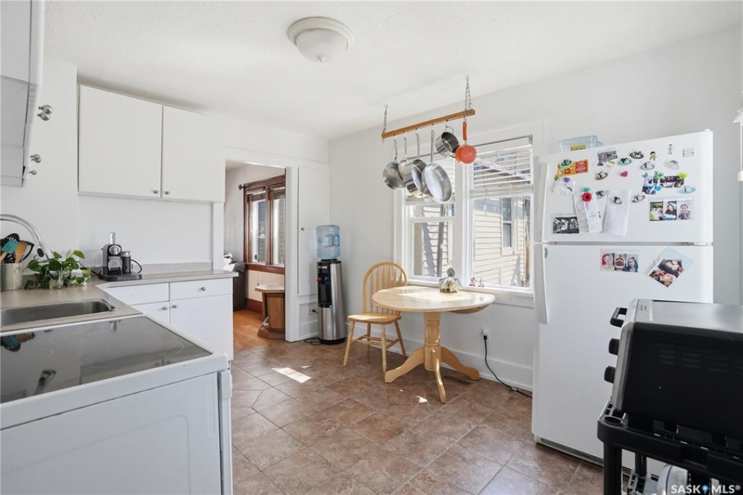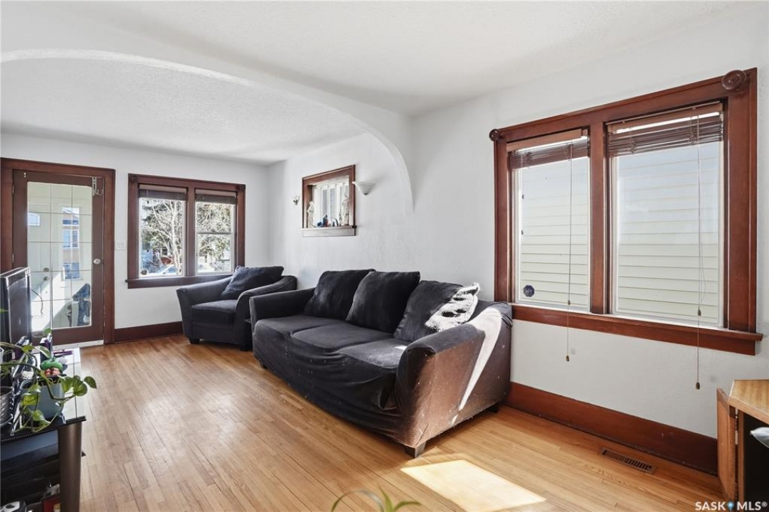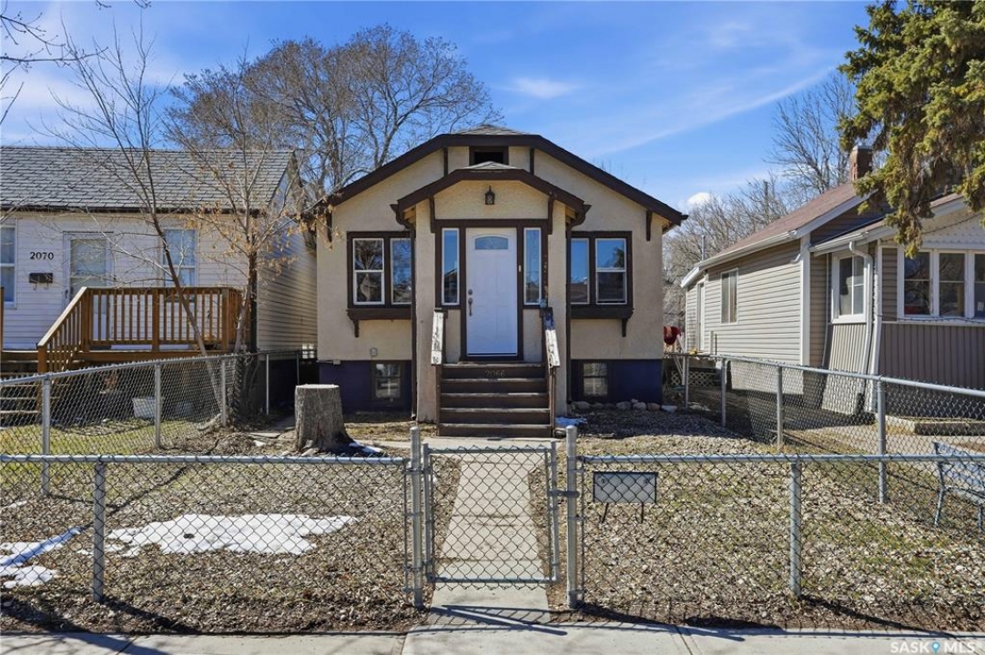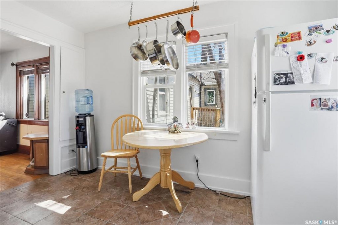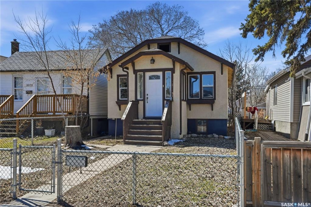 Welcome to 2066 Broder Street in the heart of Broder's Annex, a neighbourhood known for its charm and character. This inviting 2 bedroom home strikes a nice balance between classic details and everyday comfort. As you enter, you are welcomed into a large living room that offers plenty of space to relax or entertain. The main floor features hardwood floors throughout the living room, bedrooms, and hallway, along with original oak trim that adds warmth and a sense of history. The bedrooms stand out with their unique beveled glass doors, offering a subtle nod to the home's character roots. A 4 piece bathroom with a tiled surround is conveniently located between the two bedrooms. The kitchen is bright and functional, featuring an eat in layout, plenty of cabinet space, and durable ceramic tile flooring that works well for both daily living and casual meals. Downstairs, the basement offers great potential for future development and the opportunity to expand your living space. It is currently set up with a laundry area and provides plenty of storage. Recent updates include new shingles completed in 2022. Outside, you will appreciate the fully fenced backyard, designed for easy maintenance while still offering a private outdoor space. A solid home with personality in a great location, ready for its next chapter.