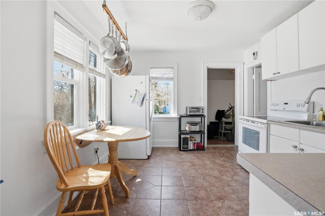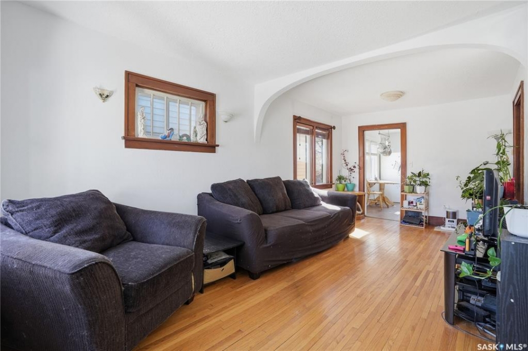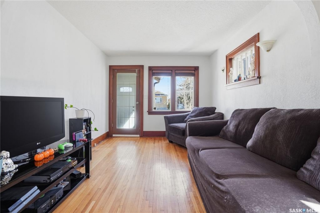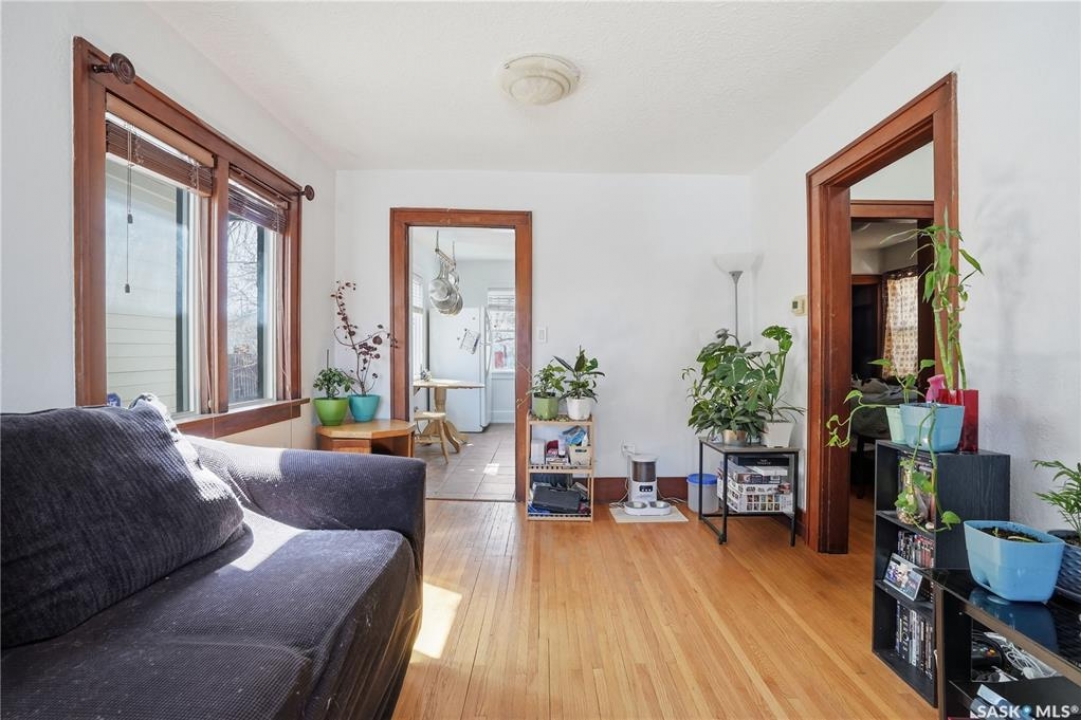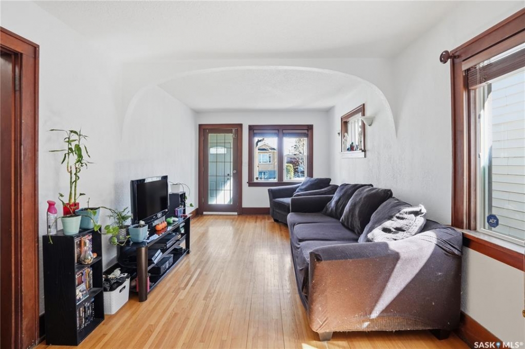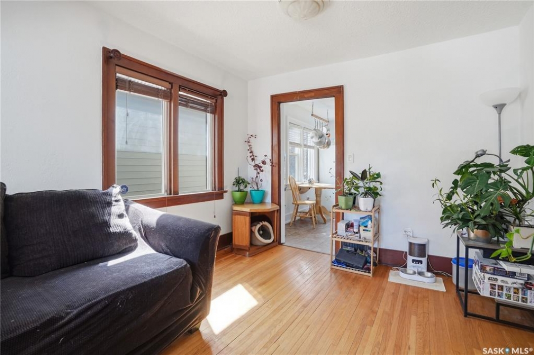 Welcome to 2066 Broder Street in the heart of Broder's Annex, a neighbourhood known for its charm and character. This inviting 2 bedroom home strikes a nice balance between classic details and everyday comfort. As you enter, you are welcomed into a large living room that offers plenty of space to relax or entertain. The main floor features hardwood floors throughout the living room, bedrooms, and hallway, along with original oak trim that adds warmth and a sense of history. The bedrooms stand out with their unique beveled glass doors, offering a subtle nod to the home's character roots. A 4 piece bathroom with a tiled surround is conveniently located between the two bedrooms. The kitchen is bright and functional, featuring an eat in layout, plenty of cabinet space, and durable ceramic tile flooring that works well for both daily living and casual meals. Downstairs, the basement offers great potential for future development and the opportunity to expand your living space. It is currently set up with a laundry area and provides plenty of storage. Recent updates include new shingles completed in 2022. Outside, you will appreciate the fully fenced backyard, designed for easy maintenance while still offering a private outdoor space. A solid home with personality in a great location, ready for its next chapter.
