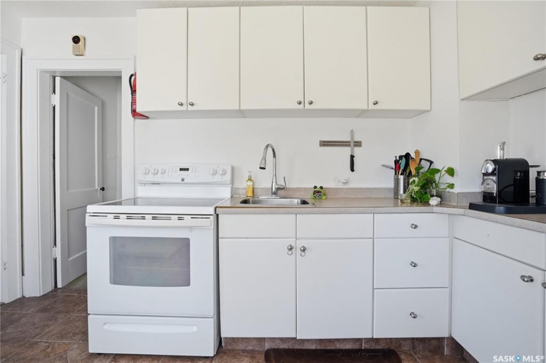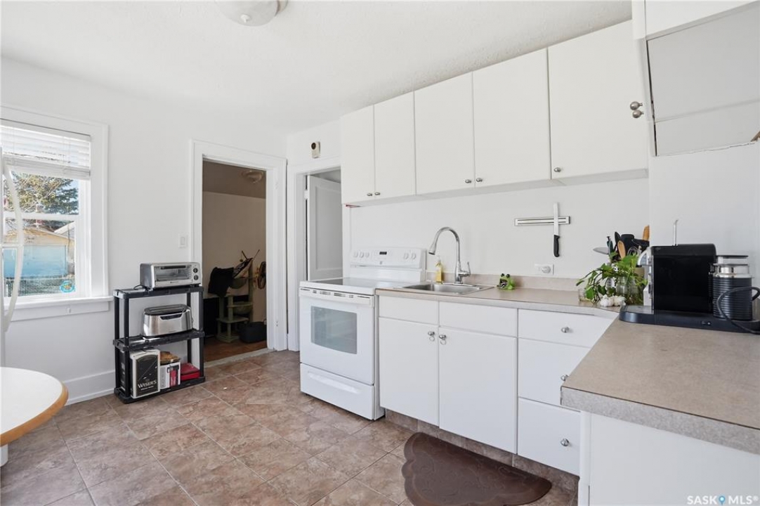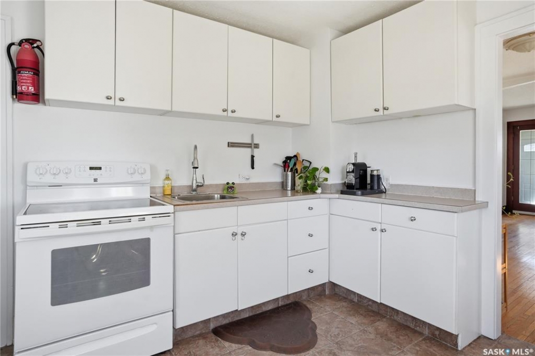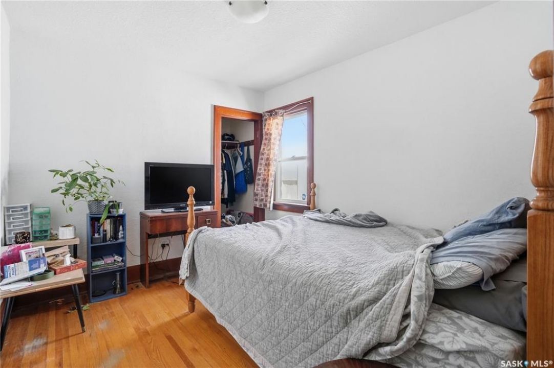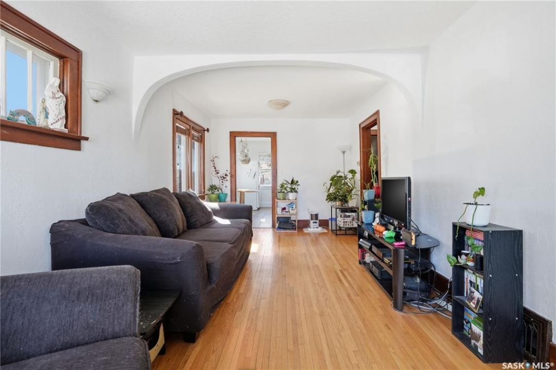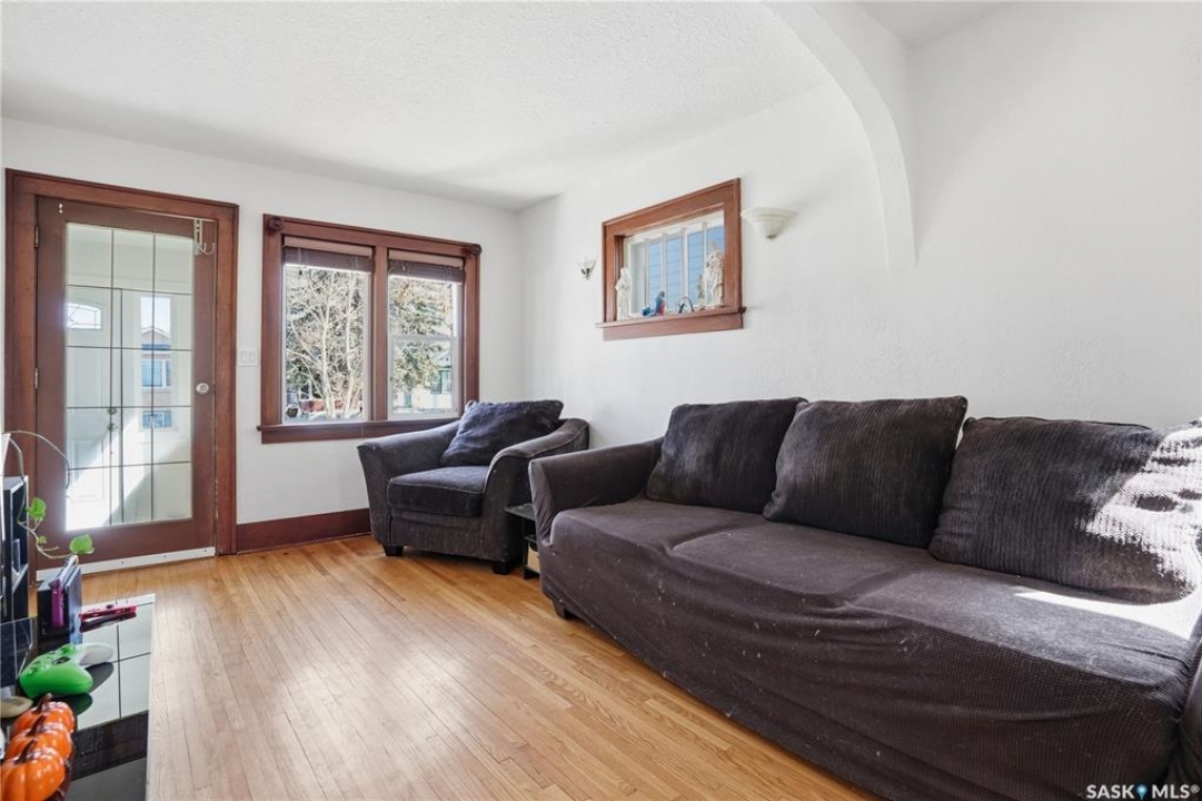 Welcome to 2066 Broder Street in the heart of Broder's Annex, a neighbourhood known for its charm and character. This inviting 2 bedroom home strikes a nice balance between classic details and everyday comfort. As you enter, you are welcomed into a large living room that offers plenty of space to relax or entertain. The main floor features hardwood floors throughout the living room, bedrooms, and hallway, along with original oak trim that adds warmth and a sense of history. The bedrooms stand out with their unique beveled glass doors, offering a subtle nod to the home's character roots. A 4 piece bathroom with a tiled surround is conveniently located between the two bedrooms. The kitchen is bright and functional, featuring an eat in layout, plenty of cabinet space, and durable ceramic tile flooring that works well for both daily living and casual meals. Downstairs, the basement offers great potential for future development and the opportunity to expand your living space. It is currently set up with a laundry area and provides plenty of storage. Recent updates include new shingles completed in 2022. Outside, you will appreciate the fully fenced backyard, designed for easy maintenance while still offering a private outdoor space. A solid home with personality in a great location, ready for its next chapter.