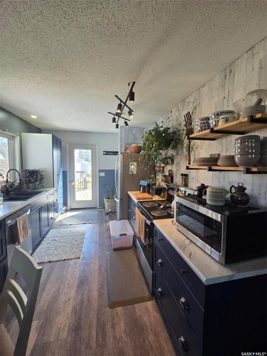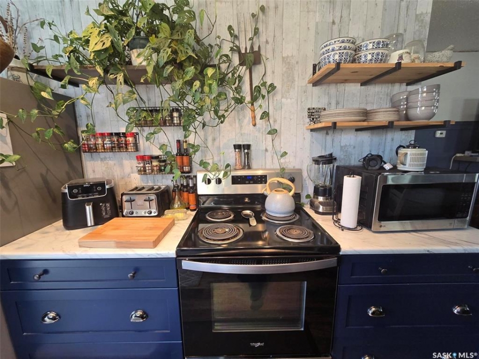 ADORABLE AND AFFORDABLE 2 BEDROOM HOME IN GRENFELL . Say yes to this address- 917 Qu'appelle Street with a modern updated flare. EXTENSIVE UPGRADES This 2 bedroom home is located on 50' x 125' lot with a huge driveway , a single detached garage off a back lane. Lots of room to park an RV or multiple vehicles. Open concept living area makes this 732 sq ft home bright and cheery. Galley style kitchen with new cabinets (navy on the bottom and floating shelves as uppers) also comes with newer appliances and double sink. Bathroom provides a soaker tub, new lighting , vanity and dual flush toilets. Some finishing touches (painting) willl need to be completed in both bedrooms. THE UPGRADES INCLUDE: HE FURNACE, HOT WATER ON DEMAND, VINYL WINDOWS, NEW WIRING AND PLUMBING. Basement has been insulated, vapor barrier and ready for drywall. Looking for a starter home , this is one to put on your list.