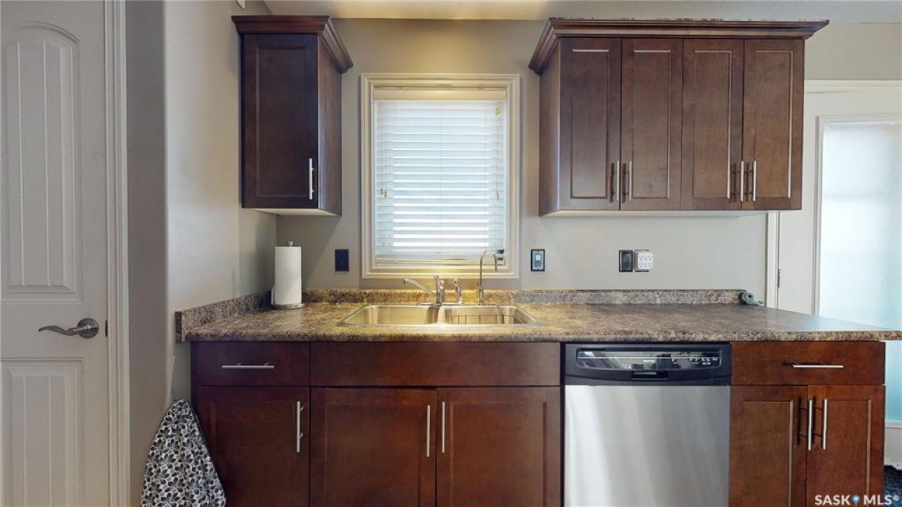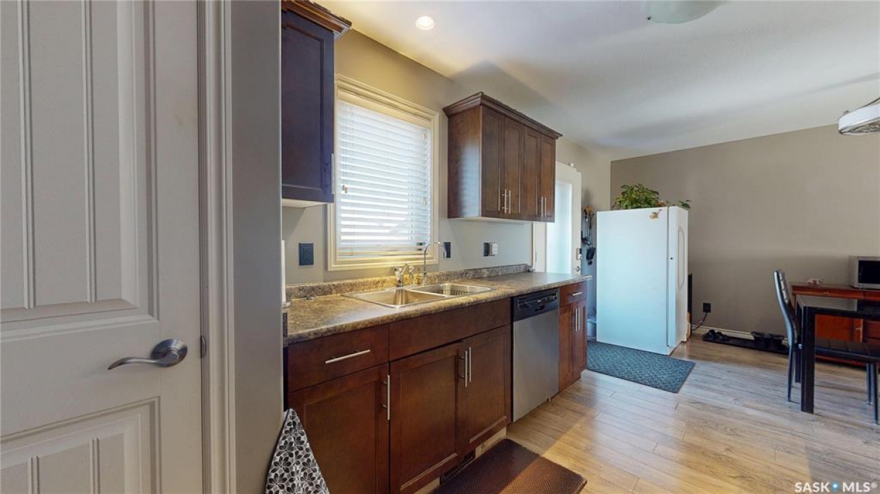 Welcome home to this beautifully maintained 1,176 sq. ft. two-storey townhome, complete with a double detached garage and, best of all, no condo fees, ideally situated in the highly desirable neighbourhood of Harbour Landing. Thoughtfully designed for comfortable living, the main floor features a bright and inviting open-concept layout. The living area is warm and welcoming, with laminate flooring, and flows seamlessly into a well-appointed kitchen with stainless steel appliances and a convenient pantry. The spacious dining area offers direct access to the backyard, making it perfect for everyday living and entertaining. Step outside to enjoy summer BBQs and relax on the patio in the beautifully landscaped yard. Upstairs, you'll find a versatile flex space on the landing, along with three bedrooms and the added convenience of second-floor laundry. The primary bedroom has direct access to a Jack-and-Jill full bathroom that also serves the two additional bedrooms. The fully developed basement provides even more living space, including a cozy family room, a full bathroom, ample storage under the stairs, and a utility room. Located just steps from Harbour Landing Elementary School, parks, walking paths, and a wide range of amenities, this home offers both convenience and a strong sense of community. Move-in ready and meticulously cared for, this is an excellent opportunity to own a fantastic home in one of Regina's most sought-after neighbourhoods.