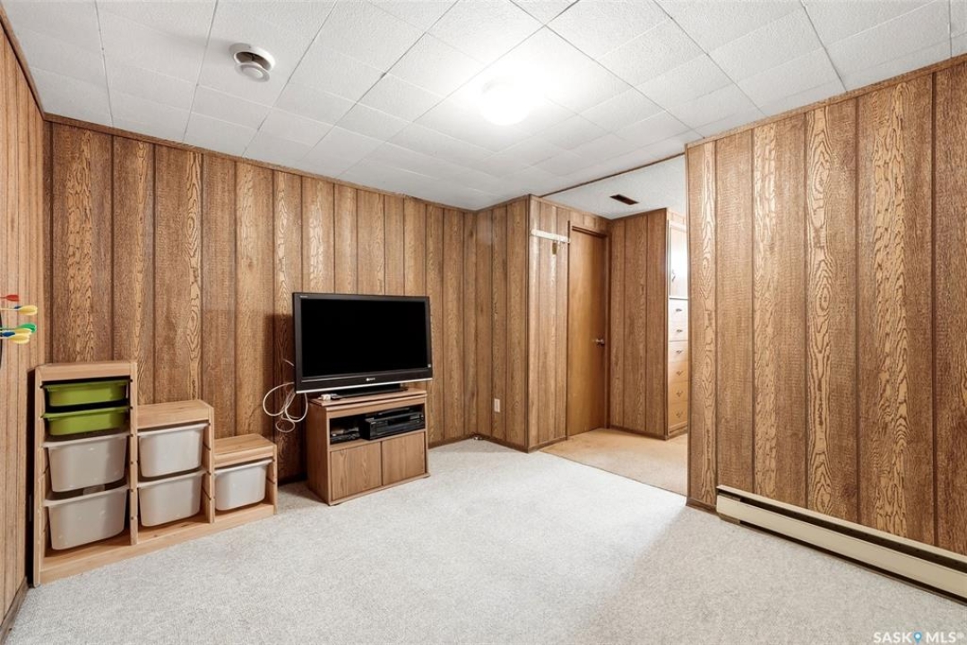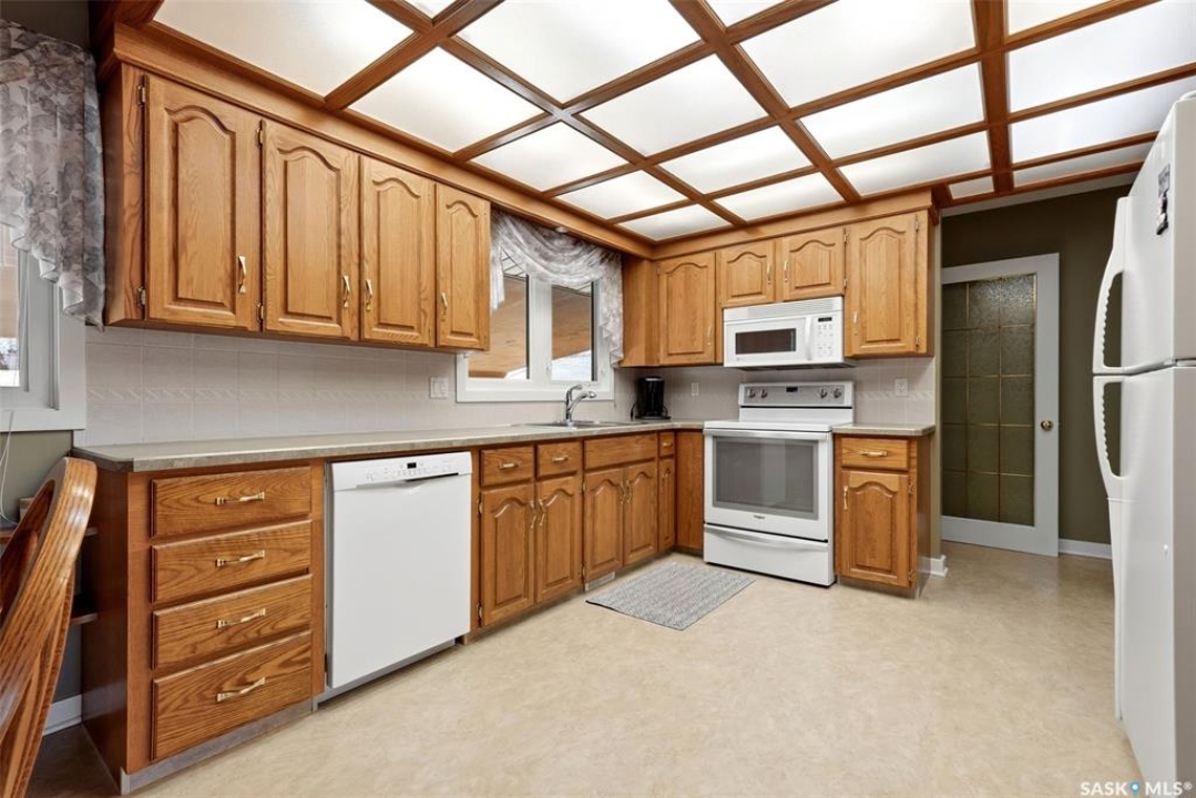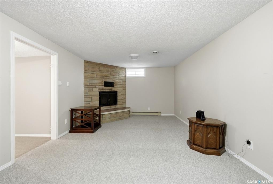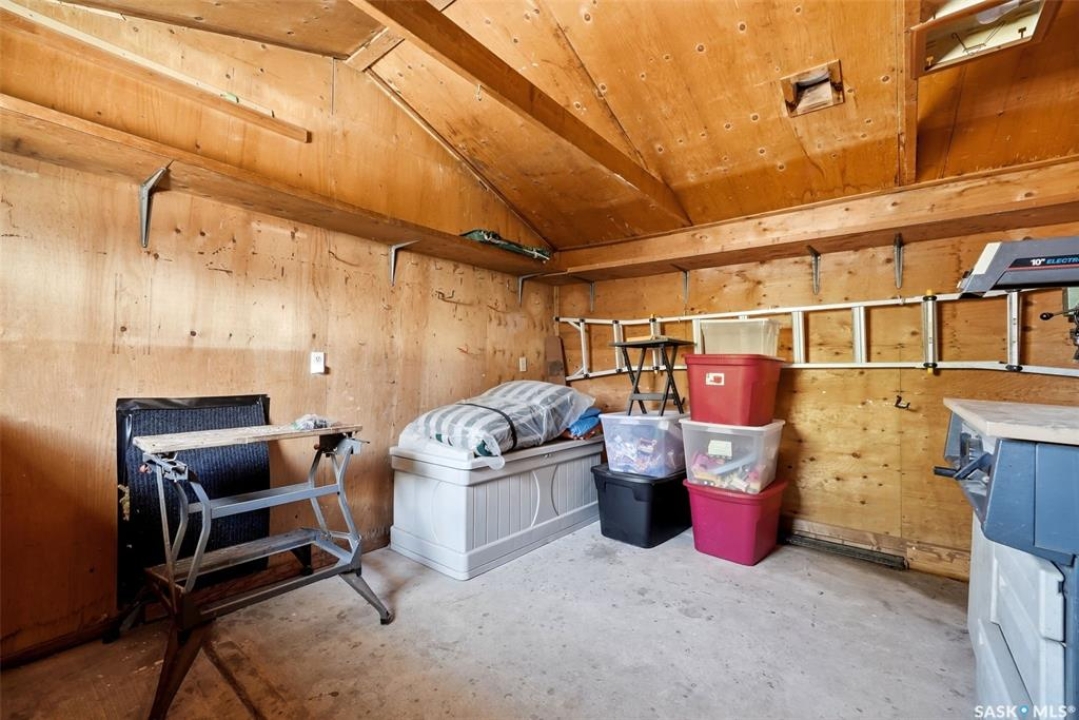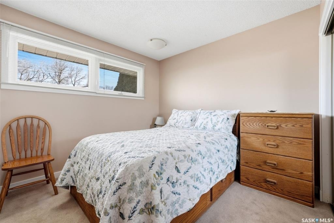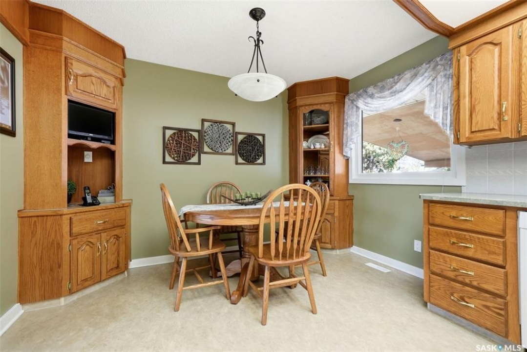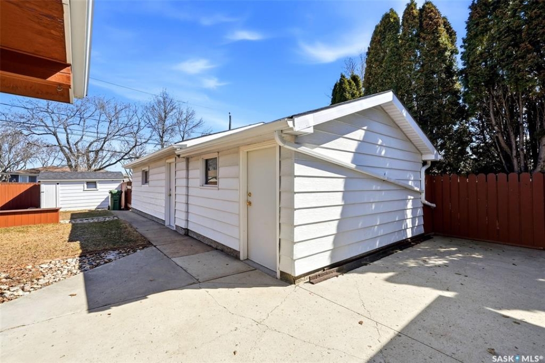 Welcome to 4027 Elphinstone Street—lovingly maintained by its original owners and thoughtfully updated over the past 60 years. Situated on a quiet street in desirable Parliament Place, this home offers fantastic street appeal! Step inside to a bright and spacious living room featuring three large updated triple-pane picture windows with custom cellular blinds (2023), allowing for an abundance of natural light. All windows on the main level have been updated to PVC. A cozy gas fireplace, added in 2003, creates a warm and inviting atmosphere. The living room flows seamlessly into the dining area and kitchen. Solid oak kitchen, updated in the 1990s, offers excellent functionality with a pantry featuring pullouts, pot drawer pullouts, and two built-in corner china cabinet. Appliances include a newer Whirlpool stove, microwave, hood fan, fridge, and a newer Bosch dishwasher. Main floor offers three bedrooms and a full bathroom complete with a jetted tub. Primary bedroom also features a convenient three-piece ensuite. Fully developed basement provides excellent additional living space with two more bedrooms, a den, and a large rec room complete with a wood-burning fireplace. A three-piece bathroom adds extra convenience, along with a cold storage room, a spacious utility room plus storage. Additional features include a newer sump pump, central air conditioning, and a central vacuum. Backyard is ideal for outdoor enjoyment, offering a large covered deck, a single detached garage with a newer overhead door, and a separate workshop area with a built-in bench. A storage shed is also included, and the deep lot provides ample space for potential future garage development. Ideally located in south Regina, this home is close to schools, parks, and all south-end amenities including shopping, restaurants, and services. Nearby bus routes provide convenient access to other areas of the city, adding to the overall appeal of this well-cared-for property.
