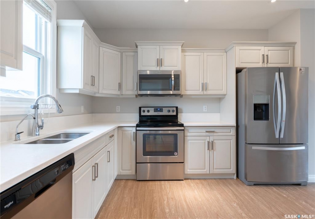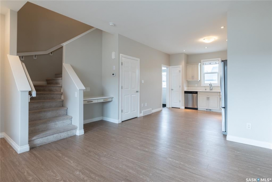 Discover modern elegance in this 2017-built, no condo fee, two-storey home located in Regina's highly desirable Harbour Landing neighbourhood. Offering 3 bedrooms, 2 bathrooms, and an unbeatable location with a bus stop right out front, this home is just steps from Harbour Landing School, parks, and shopping amenities. The open-concept main floor showcases durable vinyl plank flooring, a bright and functional kitchen with adjoining dining space, and a convenient 2-piece bathroom—perfect for everyday living and entertaining. Upstairs, you'll find a spacious primary bedroom, two additional bedrooms, and a full 4-piece bathroom. The basement is open for future development, providing excellent potential to customise to your needs. Additional features include central air conditioning, a heat recovery unit, and a gas water heater for added comfort and efficiency. Outside, enjoy a fully landscaped and fenced yard along with a double detached garage, completing this move-in-ready home—ideal for first-time buyers or growing families.