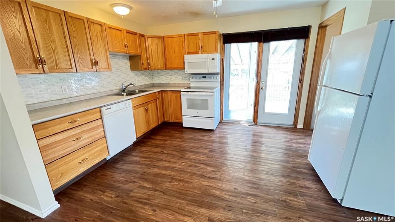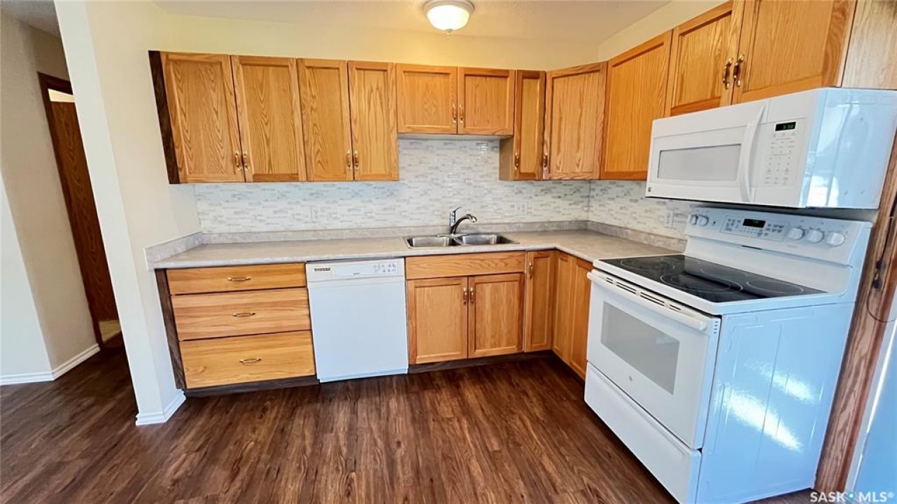 Welcome to this inviting home situated on a spacious corner lot, offering both comfort and versatility for families or investors. The main floor boasts an open concept living room and kitchen, perfect for entertaining or relaxing with loved ones. Two generous bedrooms are located on the main level, accompanied by a smaller room currently serving as a convenient laundry area—though laundry hookups remain downstairs should you choose to relocate. The basement provides additional living space with two more bedrooms and a 220 volt plug-in, presenting an excellent opportunity to convert the area into a suite (subject to town approval). Outdoors, enjoy a deck on the east side for morning sun and a covered deck on the west side, ideal for evening gatherings. This well-appointed home combines modern features with flexible options, making it a standout choice in a desirable neighbourhood. Close to the elementary school and shopping the location is ideal. Book your tour today.