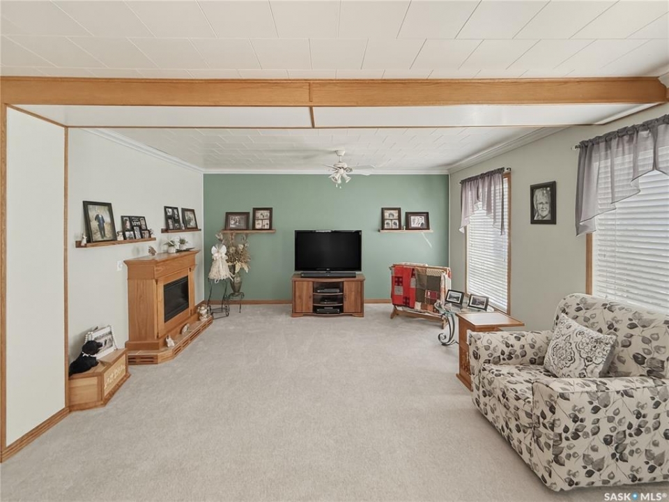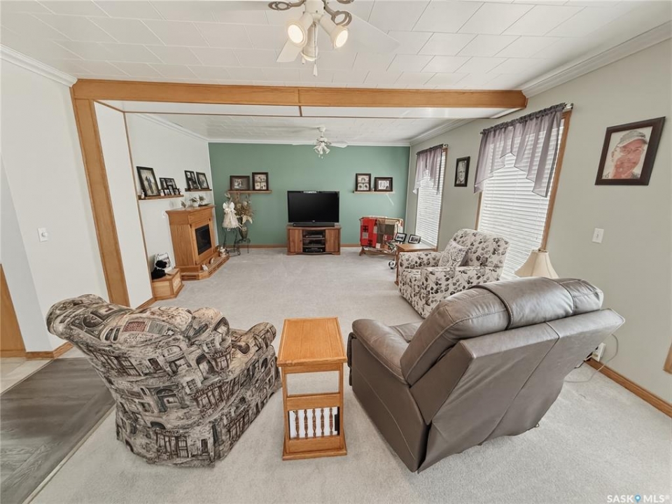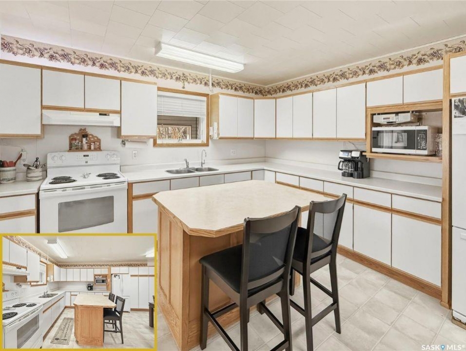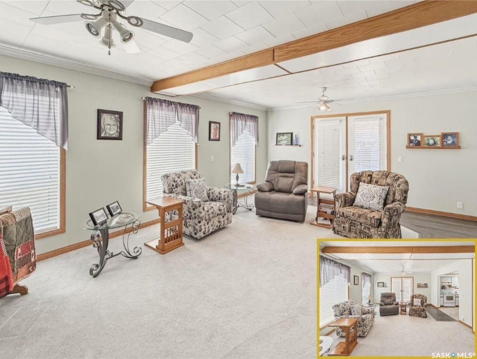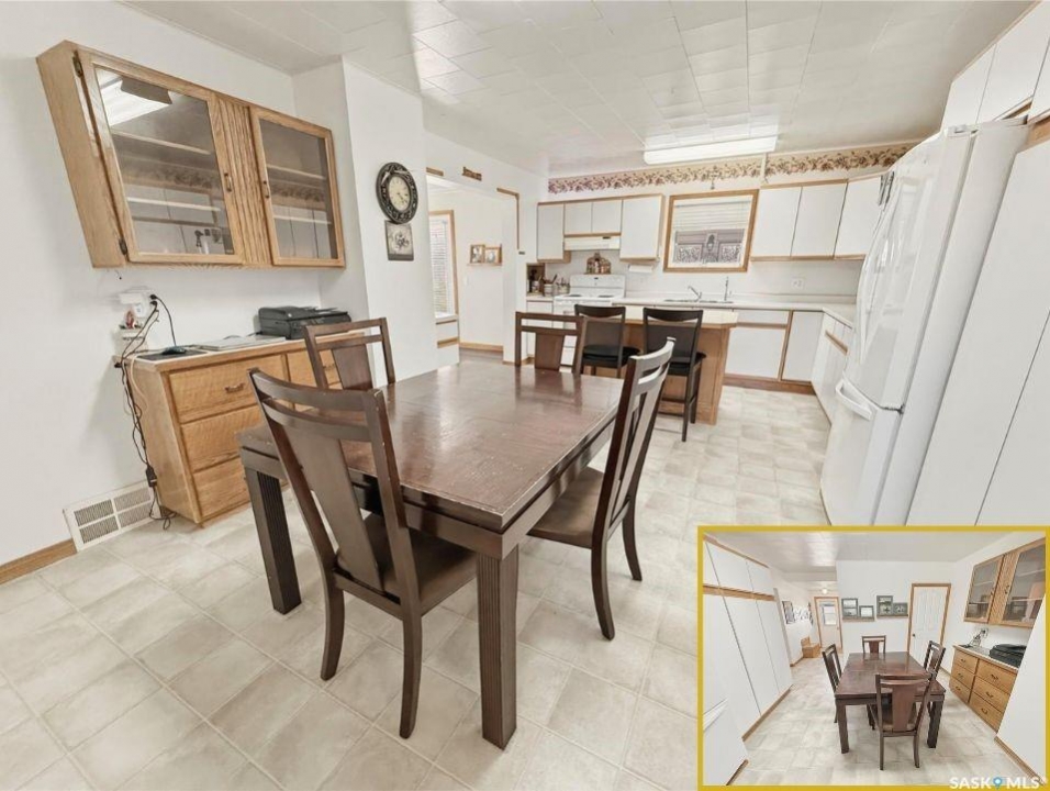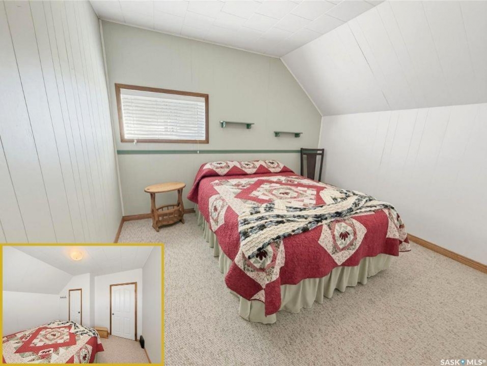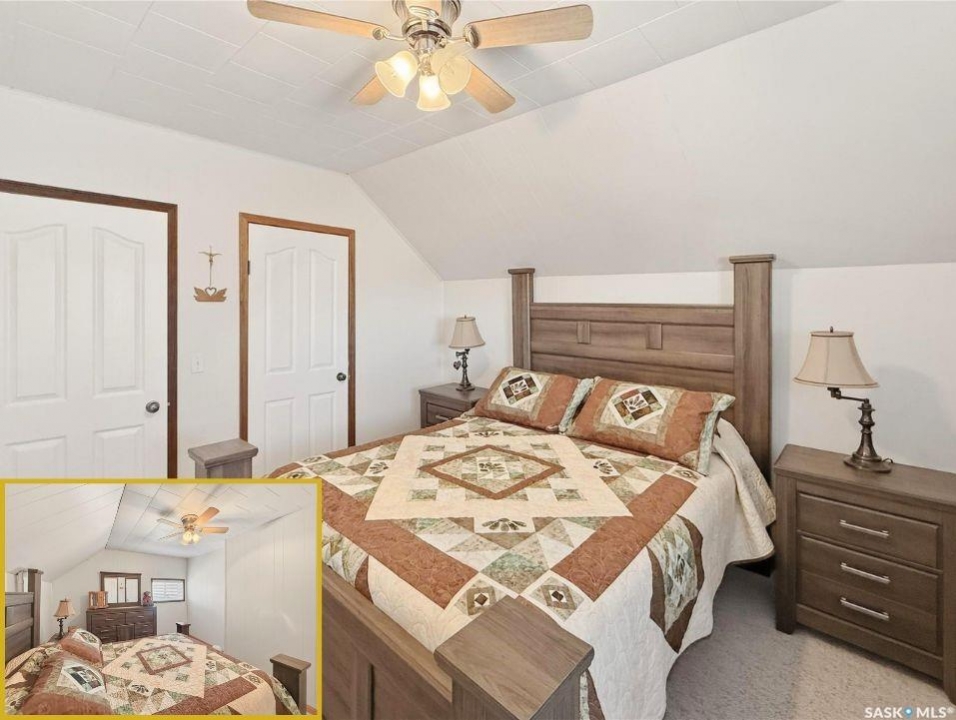 Located approximately 9 km east of Ponteix, this exceptionally well-maintained & affordable 10-acre acreage offers a mature, treed yard site w outstanding shelter & sweeping prairie views. 6 acres of productive hayland make it perfectly suited for hobby farming. There is a 40' x 140' metal-clad building w partial concrete flooring & power, previously used as a rabbit barn, providing options for storage, livestock, or workshop use. The home clearly reflects pride of ownership, w brand new shingles (2026), PVC windows & vinyl siding updated. A covered east-facing veranda adds warmth & curb appeal. The east entrance opens into a practical addition (late 1990s) featuring a foyer, ample closet space, & a convenient 3-piece bath. The main floor also includes a mudroom/laundry area off the kitchen h direct access to the heated garage. This garage is well-equipped as a workshop w in-floor heat & includes an RV hookup on the north exterior. The bright country kitchen flows seamlessly into the dining area w island, while the spacious living room is filled w natural light from the many windows. Garden doors lead to a covered deck & a 12' x 15' enclosed 3-season sunroom (added in 2010), ideal for entertaining or relaxing. Upstairs features 4 generously sized bedrooms, including one w built-in bunk beds. The primary bedroom is spacious (bed included). Both a 3-piece & 4-piece bathroom are conveniently located on the main floor. The basement offers a versatile rec area, perfect for hobbies or crafting. The yard is immaculately cared for, showcasing mature trees & numerous perennials. The property is serviced by a well w abundant water supply. Additional features include sheds, bins, a treehouse, older RV & a dugout. Included: 2 fridges, zero-turn mower, & most contents of exterior buildings. A move-in-ready acreage that stands out for its condition, care, & affordability—an excellent opportunity for those seeking value without compromise.