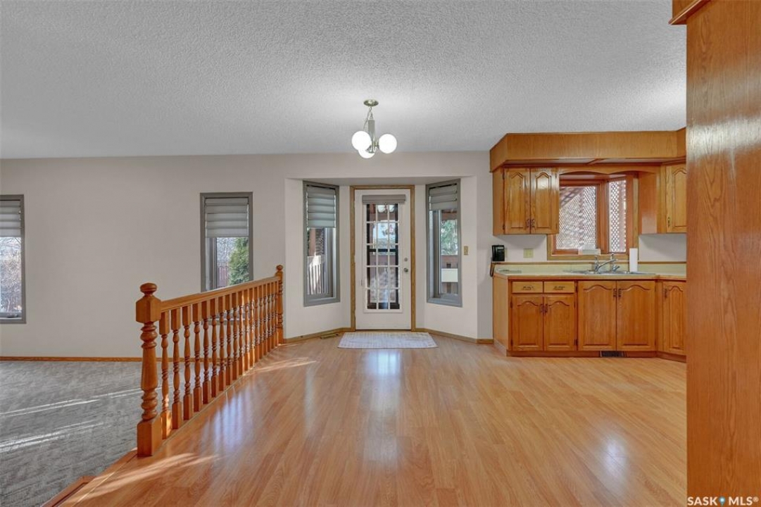 Perfect opportunity to own a fantastic family home in desirable Gardiner Heights! Just a short walk to beautiful parks and close to all East end amenities, this solid home has been extremely well cared for by original owners and offers an exceptional amount of space for a growing family. As you enter, you are welcomed by a large bright living and dining room with vaulted ceiling with natural light. The spacious kitchen area has great potential and opens to the cozy family room, making it an ideal layout for both everyday living and entertaining. The kitchen area has access to the covered back deck and backyard. The main floor also includes a convenient 2-piece bathroom, laundry and direct access to the heated garage. Upstairs, the spacious primary bedroom with walk in closet and two additional bedrooms and a 4-piece bathroom provide plenty of room for the whole family. There is a small loft overlooking the living room that could be used for small office/reading area. The fully finished basement adds even more functional living space with a large rec room and lots of space to add another bedroom, there is a 3-piece bathroom, and a utility room with plenty of storage. The large backyard is perfect for kids, pets, and entertaining with lots of privacy. There is access to the backyard with double gate for parking RV or other toys. Enjoy the covered deck on raining days, there is also a garden area. Don't miss out on this one!