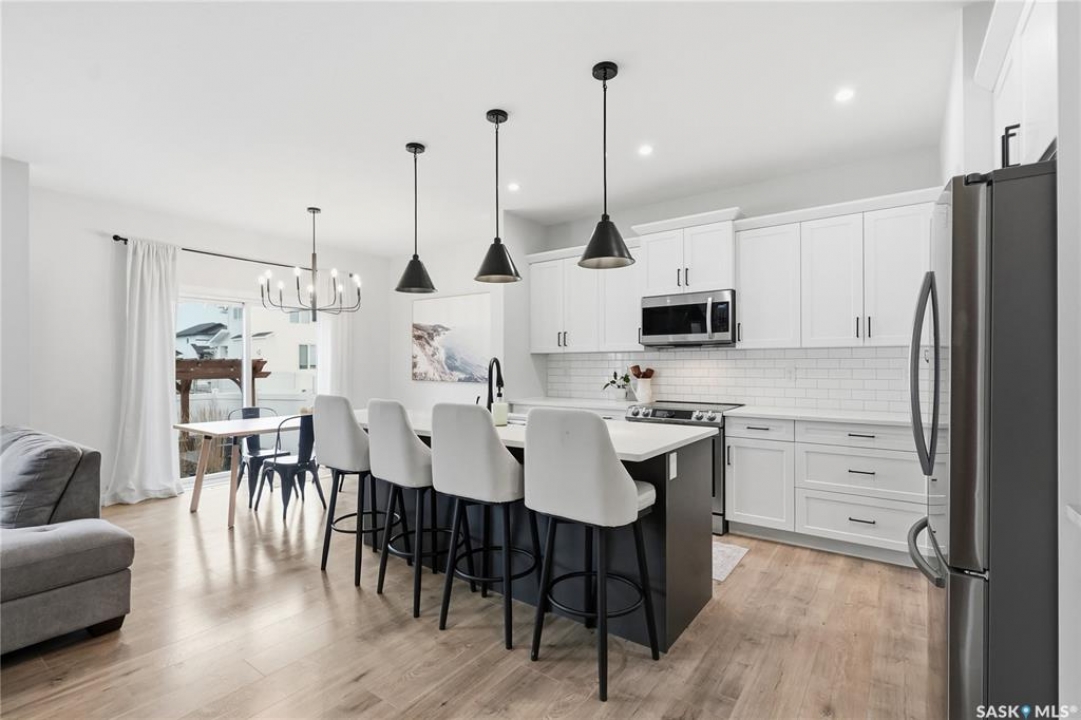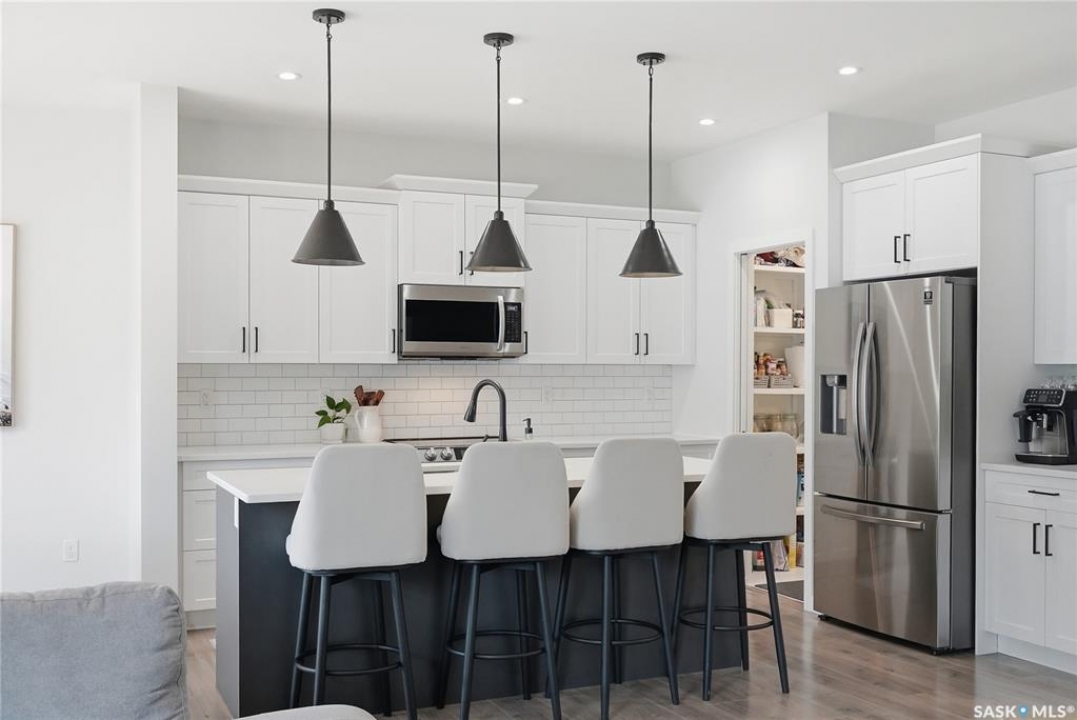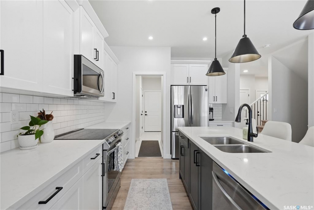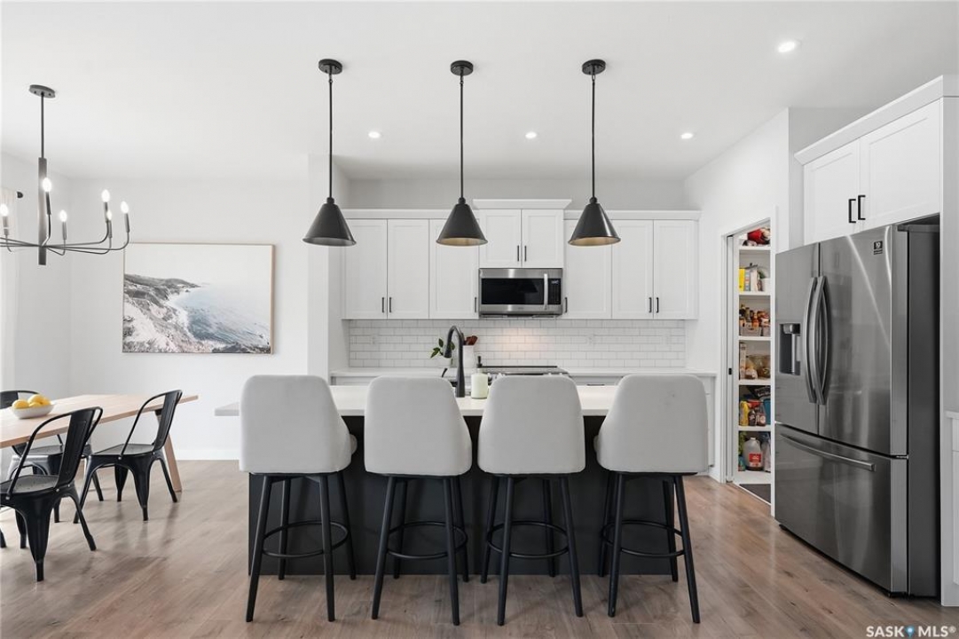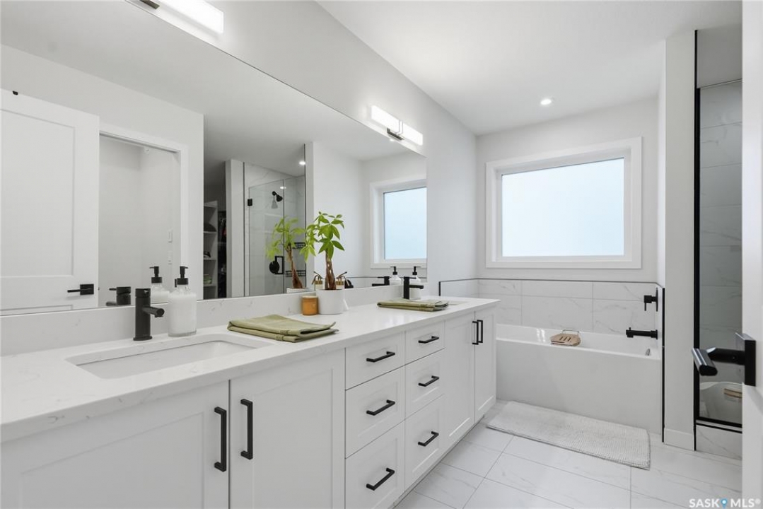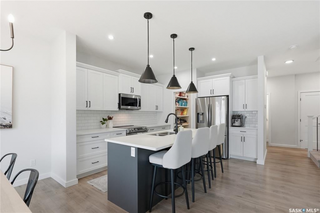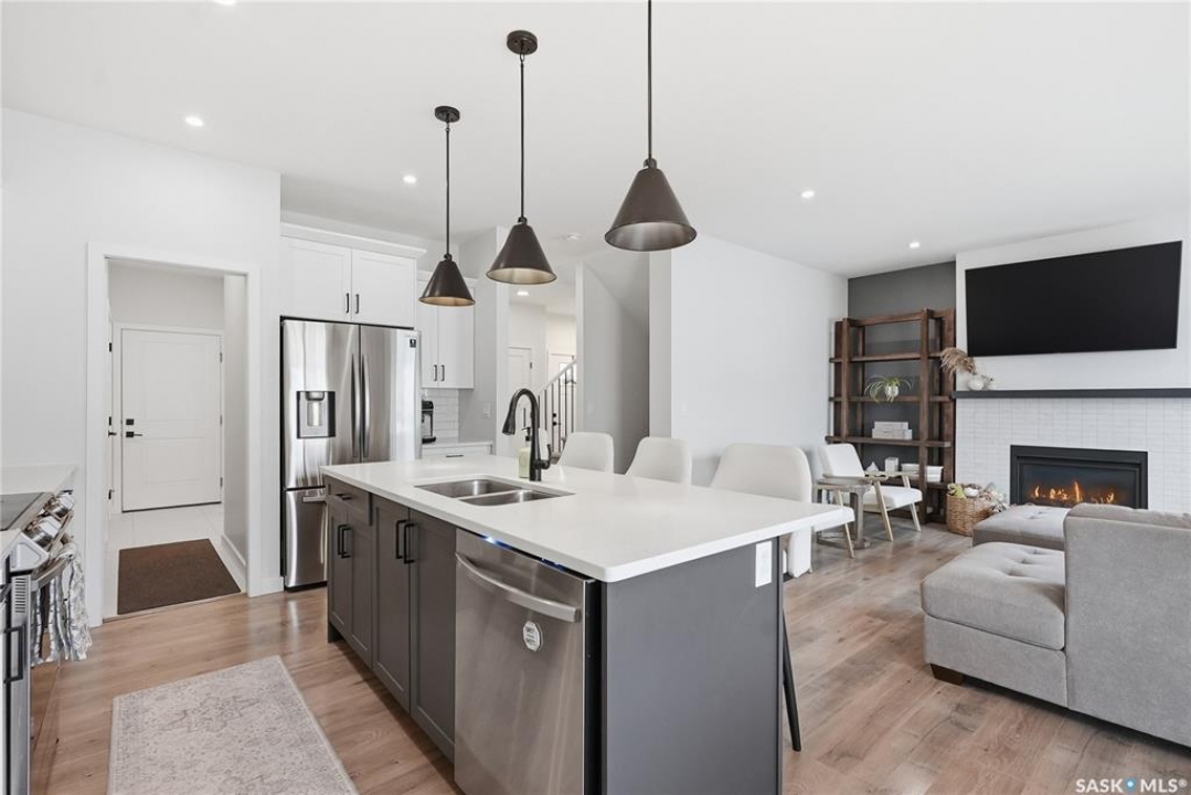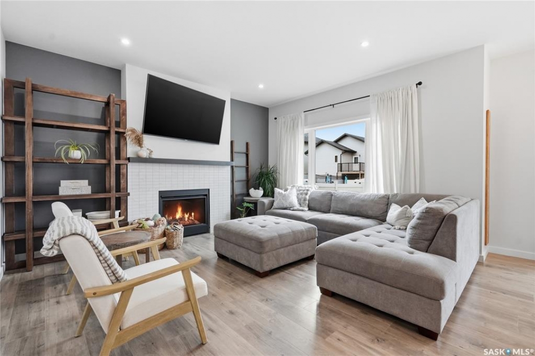 Welcome to 160 Thakur Street in the desirable community of Aspen Ridge. This like-new home by Edison Built Homes offers a perfect blend of modern design and everyday functionality. The exterior features attractive curb appeal with a stylish mix of vinyl siding, stone, and board-and-batten detailing. Inside, you're welcomed by a spacious foyer with a large double-door closet. Direct entry from the attached garage leads to a thoughtfully designed mudroom with built-in cabinetry, bench, and shelving. The heart of the home is the beautifully appointed kitchen, complete with rich cabinetry, quartz countertops, an appliance package, and ample storage. The adjacent living room is filled with natural light from large south-facing windows overlooking the backyard, while a feature wall with a gas fireplace creates a warm, inviting atmosphere—perfect for relaxing or entertaining. A convenient two-piece bathroom completes the main floor. Upstairs, you'll find a stunning bonus room with vaulted ceilings, ideal as a second living space. The bright and spacious primary bedroom features a large window and a luxurious five-piece ensuite with double vanity, soaker tub, tiled walk-in shower, and walk-in closet. Two additional bedrooms, both with walk-in closets, a full four-piece bathroom, and a dedicated laundry room complete the upper level. The basement is open for future development with space for an additional bedroom, bathroom, and family room. The backyard is beautifully designed with white vinyl fencing, a ground-level patio, and a well-planned sitting area. With south-facing exposure, it's perfect for enjoying summer days. Don't miss your chance to own this beautiful home.