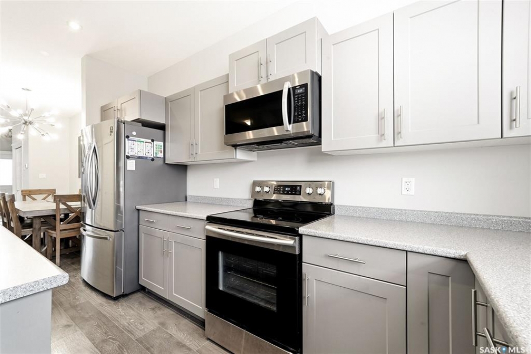 Better than brand new and move-in ready, this stunning townhouse is located in the vibrant and highly sought-after community of Harbour Landing in Regina. Thoughtfully designed with modern living in mind, the open-concept main floor seamlessly connects the kitchen, dining area, and living room—creating the perfect space for both everyday living and entertaining. A convenient 2-piece bathroom completes the main level. Upstairs, you'll find a rare and highly desirable layout featuring two spacious primary bedrooms, each with their own private ensuite—ideal for families, guests, or shared living. One of the bedrooms also boasts a generous walkthrough closet, adding both style and functionality. The basement is open for development, offering endless potential to customize to your needs, and is already roughed in for a future bathroom. Outside, the backyard has been beautifully enhanced with approximately $10,000 in landscaping, featuring a variety of plants that create a welcoming and enjoyable outdoor space. A single detached garage at the rear provides added convenience and storage. Located in Harbour Landing, one of Regina's most vibrant communities, you'll enjoy access to numerous parks, walking paths, shopping, and amenities—all just minutes from your doorstep. This is an incredible opportunity to own a turn-key home in a thriving neighbourhood.