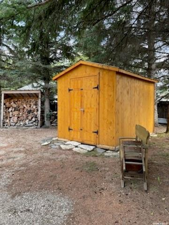 This is a fantastic opportunity to own this unique log home located at 109 Rustad Ave in White Fox, SK! Built in 2022 this property features an approx. 30'9”x42'9” storage area on the main floor with in-floor heat, and approximately 630 sq ft living quarters on the 2nd floor filled with wood finishes. There is an open concept kitchen/living room area and 1 cozy bedroom, plus a 3-pc bath. Most of the furniture can be included in the sale. Primary heat source for the building is the electric in-floor heat in the storage on the main floor, and the plug-in electric heaters upstairs. Plumbing for laundry is on the main floor. With 2 overhead doors and high ceilings on one side it provides various storage options. Property is located on 0.21 acre lot backing onto the fields, partially fenced and well treed, plus the yard is filled with tons of gravel for easy maintenance. White Fox is only 15 km to Nipawin Regional Park where you can launch your boat and enjoy fishing. Tobin Lake is known for the world class fishing. North-East Saskatchewan is known for good hunting and the great outdoors! Book the viewing today!