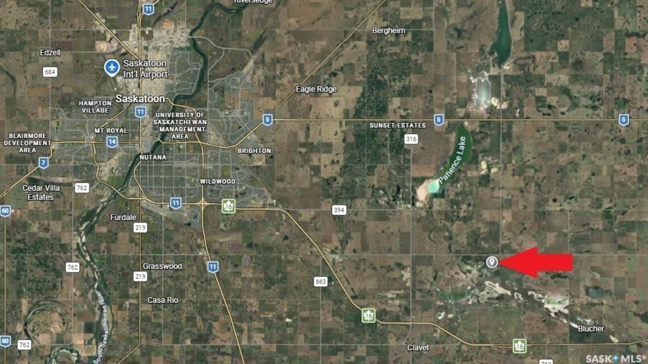 131.83 acres of pasture land in the RM of Blucher, only 15 minutes from Saskatoon. Fully fenced with newer barbed wire on the west and south sides, and older but functional barbed wire on the north and east sides. Seller had cows on the land in the past and states that natural gas runs through the property and electrical service across the road. RM office indicated potential for building site for a dwelling, please contact the RM office for details. SAMA report indicates type K soil on 67 acres with none to few stones, 65 acres of slough, and nearly level topography. The 2025 property taxes were only $270. Short drive to Saskatoon South Costco. Has main road access; the east-west road is a school bus route to Clavet and is very well maintained. From Zimmerman Rd, head east 10.3km on HWY 394 (Patience Lake Potash Road), turn right & go south 3.2km on HWY 316, turn left at TWP 360 (Cement Plant Road) & go east 5.6km on gravel - property on right-hand side (south) of road. No for sale sign, orange metal stake at the north west corner of the property. Red and yellow lines on maps in photos are approximate only. Call now for additional information.