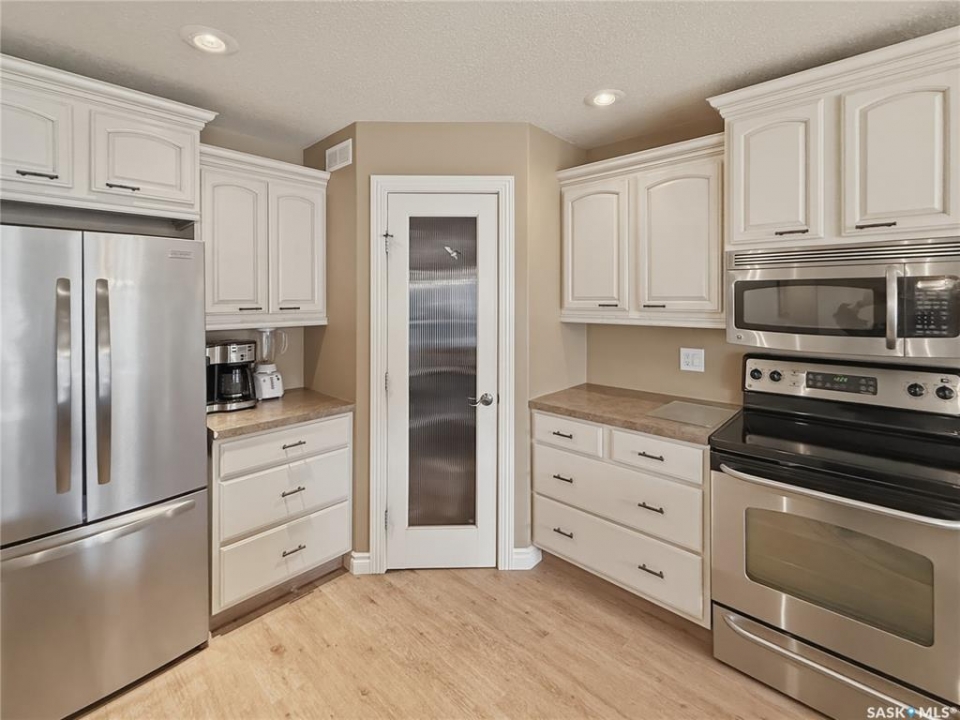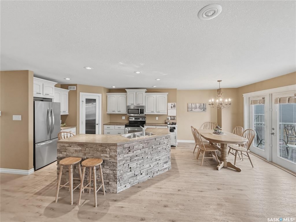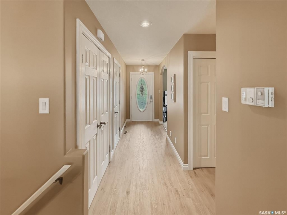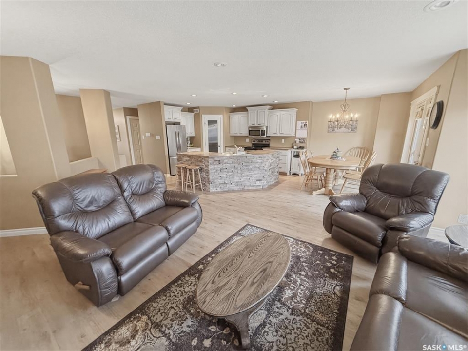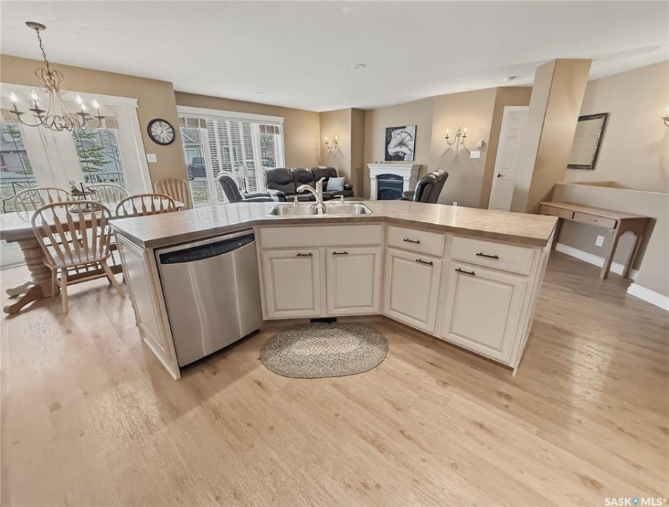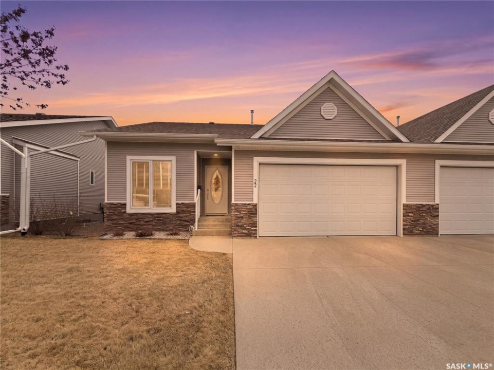 Looking for easy, stylish living in one of Swift Current's most sought-after neighbourhoods? This beautifully maintained bungalow-style condo in Meadow View Village Estates in Highland is one you won't want to miss. Offering 1,271 sq/ft of thoughtfully designed space, this south-facing unit is filled w natural light & warmth throughout. The welcoming front foyer features updated vinyl plank flooring, a charming den wnan arched doorway to the left, & direct access to the 21 x 22 attached garage on the right. Just down the hall, you'll find convenient main floor laundry tucked into one of three closets, along w a 2-piece powder room. The heart of the home is the open concept kitchen, dining, & living area, where large south-facing windows & a garden door create a bright & inviting atmosphere. Step out onto the composite deck, complete w natural gas BBQ hookup, perfect for relaxing or entertaining. The kitchen showcases creamy cabinetry, stainless steel appliances, a corner pantry, & a functional island w sink & attractive stone accents overlooking the living space. Recessed lighting adds to the modern feel. The spacious primary suite offers a large south window, a walk-in closet w built-ins, & a well-appointed 4-piece ensuite featuring a corner shower & tub. Shingles were new in 2025, offering added peace of mind. Downstairs, the fully developed lower level provides even more living space with a cozy family room, highlighted by a wet bar w stone accents on one end & a feature stone accented wall on the other. Two additional bedrooms (one w a large closet), a stunning 3-piece bath w a custom tiled double shower and bench, plus a storage/utility room complete the lower level. The electric fireplace in the living room is included, adding both comfort and ambiance. Condos like this don't often hit the market, making this a rare opportunity to enjoy low-maintenance condo living in a highly desirable location. Reach out today to book your personal tour.