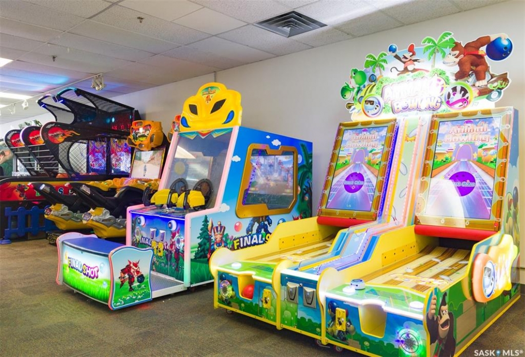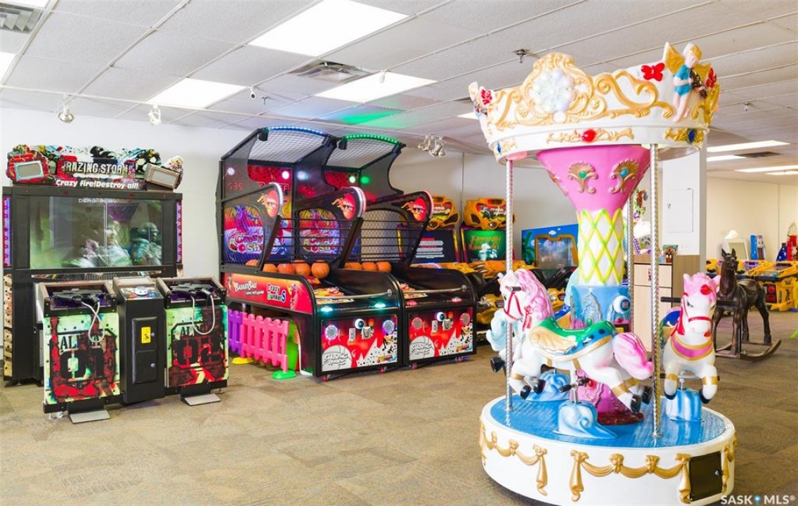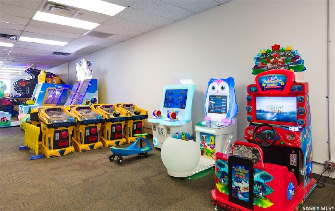 Gold Wave Play Center is located at the heart of Moose Jaw, Main Street North. Whole floor area is 5500 sqf , and it is the only play center that combines an arcade and kids' indoor playground in town. A great place for birthday parties and family parties. It can hold 3 kids' birthday parties at the same time. While you and your family enjoy playing games here, you can also order Ice cream, soft drinks, pizza and fires in store. There are over 20 video game machines, a big indoor play structure, a carousel, a riding bull bouncy structure, 2 crane machines, 8 pinball machines, an ice cream stand, stove, fridge, freezer. The owner is selling the business, machines + toddler play structure, kitchen appliances, tables and chairs, wall decoration and good will.