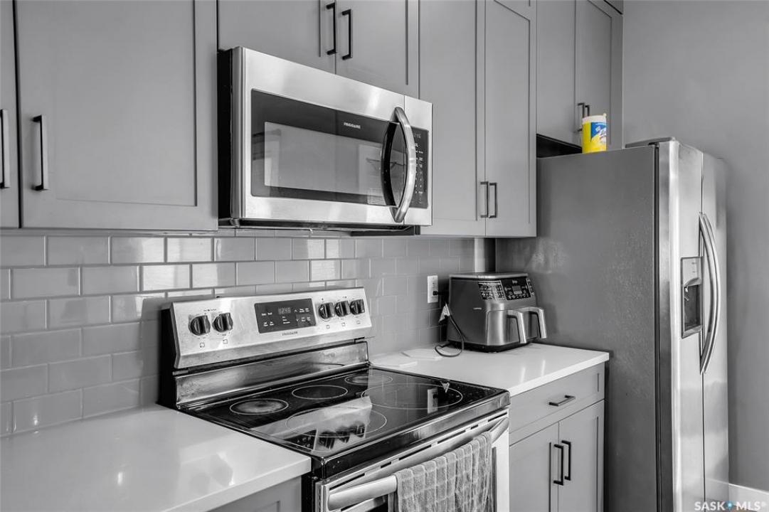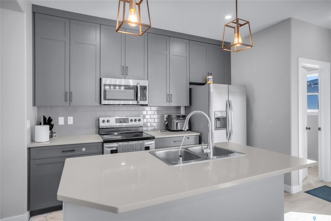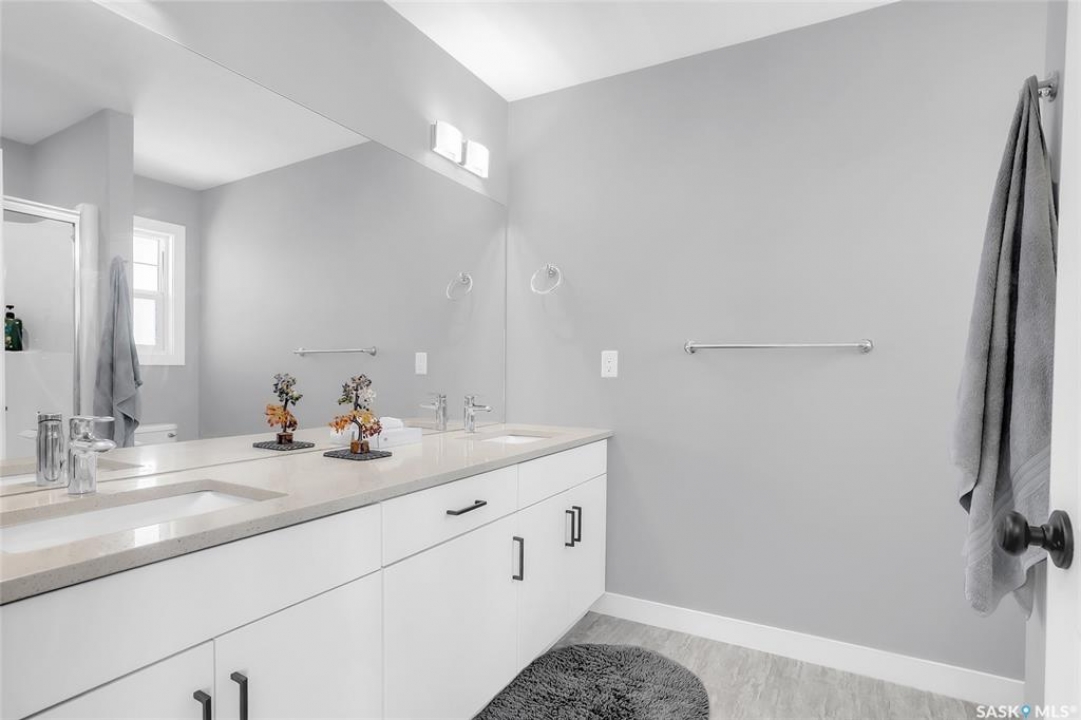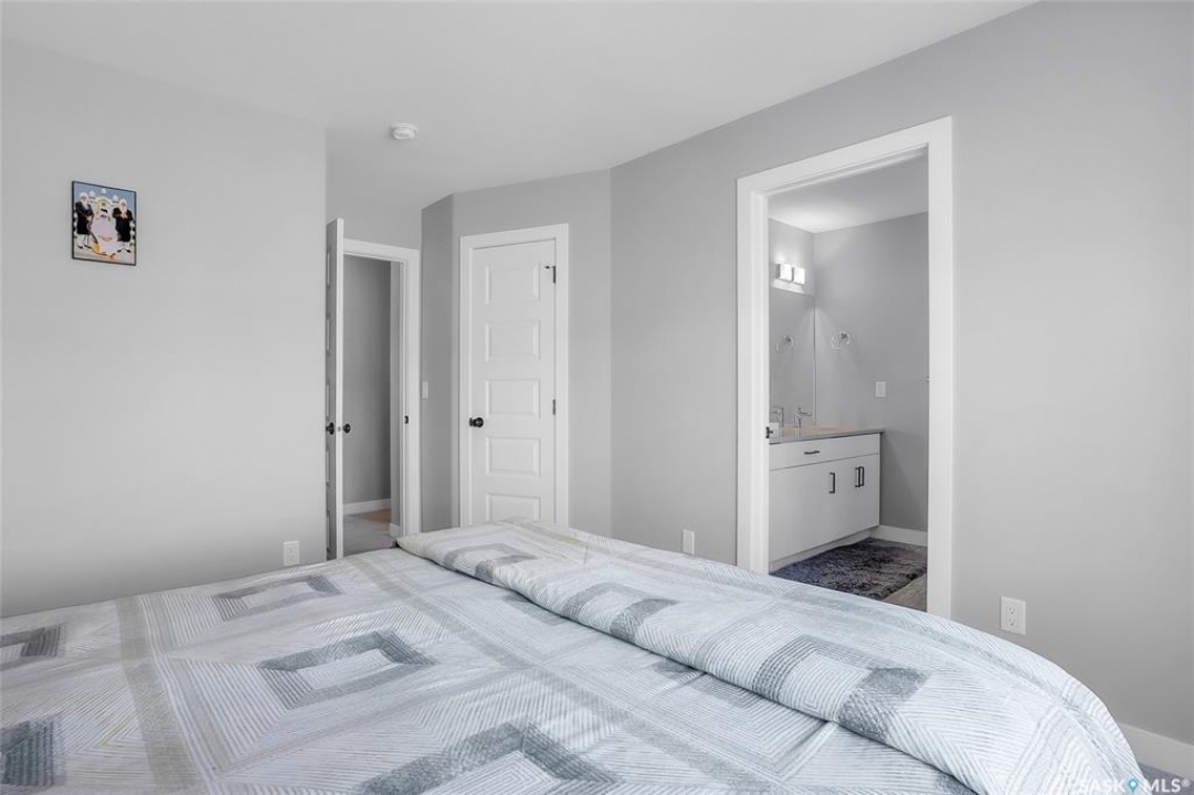 Experience the perfect harmony of style and substance in this impeccably maintained two-storey semi-detached home. Nestled in the heart of Saskatoon's most energetic community, this Brighton gem offers 1,363 square feet of thoughtfully designed living space where every detail feels like home. The main floor is a masterclass in modern open-concept living. Bathed in natural light, the kitchen serves as the ultimate focal point, boasting sleek quartz countertops, custom cabinetry, and premium stainless steel appliances. Whether you're prepping a quick weeknight meal or hosting friends for the weekend, the oversized island provides the perfect stage for gathering and effortless conversations. The upper level is where comfort meets everyday convenience. The spacious primary features a generous walk-in closet and a 4-piece ensuite. On this Floor You also find 2 additional well-appointed bedrooms sharing a stylish 4-piece bathroom, while the dedicated second-floor laundry room makes daily chores feel completely effortless. The living space extends outdoors to a fully landscaped backyard oasis. Imagine summer BBQs on the large deck, lounging on the brick patio, or enjoying the lush green lawn. For those who value storage and workspace, the double detached garage comes fully insulated and drywalled, ready for the Saskatchewan winter. Beyond the property lines, you'll find a lifestyle of unmatched convenience. You are just steps away from school bus stops and public transit, and a short stroll brings you to the vibrant Brighton Marketplace, Timmies, Gas Station, Landmark Cinemas & Much More. This property also offers the option for a legal basement suite with potential eligibility for SECONDARY SUITE INSENTIVE grant—an incredible opportunity to generate additional income. Call Today to Book a Viewing - BEFORE it's SOLD !