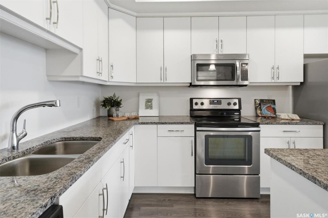 Welcome to this well-designed 2nd floor condo in the heart of Kensington, offering a great blend of comfort, function, and location. The open-concept layout is bright and inviting, with large windows filling the space with natural light. The kitchen is a true focal point, featuring granite countertops, stainless steel appliances, plenty of cabinetry, and a spacious island with eat-up seating—perfect for everyday living or hosting. This unit offers two bedrooms, including a primary suite with a walk-in closet and a four-piece ensuite, along with a second full bathroom. Step out onto the west-facing balcony to enjoy a sunny outdoor space, ideal for evening unwinding. You'll appreciate the convenience of two parking stalls: one secure, heated underground stall and one surface stall (non-electrified). Additional features include in-suite laundry, central air conditioning, forced-air heating, and elevator access. Located just steps from Kensington's shops, restaurants, groceries, parks, and more, with easy access to main routes. Clean, functional, and in a location buyers love, this property is an easy yes. Contact your REALTOR � to book your showing.