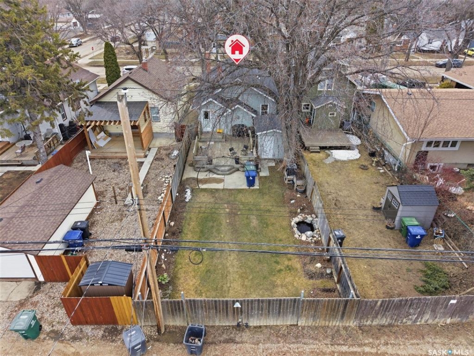 Welcome to 1306 Avenue C North, a charming and immaculately maintained 960 sq ft bungalow full of character since 1930. This 3-bedroom, 2-bathroom home offers comfortable main-floor living with an open living room centred around a cozy wood-burning fireplace. Enjoy year-round comfort with central air conditioning and peace of mind from a complete security system with cameras. Numerous updates include a newer backflow valve and sump pump, shingles replaced in 2024 on both the house and shed, and the added benefit of lead pipe replacement scheduled by the city for 2026. The basement is partially finished, and all materials needed to complete it are included — a fantastic head start for the next owner to add value and living space. Step outside to a beautifully landscaped backyard featuring a tranquil pond — a true private retreat in the heart of the city. The property sits on two parcels, offering a generous 30 x 124.5 ft lot with a swing gate, ample off-street parking, and excellent potential to build a garage in the rear. Exceptionally well cared for and move-in ready, this is a rare opportunity in an established Saskatoon neighbourhood. Book your showing today!