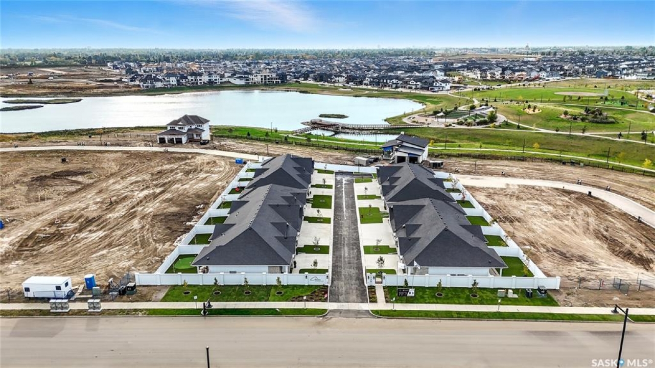 Welcome to The Moët II, an exquisite bungalow townhome nestled within the private, gated community of Chateau Bungalows, crafted by the award-winning North Prairie Developments Ltd. This sophisticated 1,071 sq. ft. bungalow embodies modern luxury, complete with a spacious attached two-car garage. Every detail has been thoughtfully curated, from the premium Whirlpool built-in appliance package to the quartz countertops that exude elegance. The open-concept living areas feature high-end laminate flooring, while the bathrooms are adorned with luxury vinyl tile. Step inside to experience the grandeur of 9' ceilings and a luminous, airy living space. The living room, framed by floor-to-ceiling windows, invites you to bask in natural light while overlooking your private, picturesque backyard. This outdoor haven boasts a covered patio, low-maintenance turf landscaping, and privacy fencing. The primary bedroom is complete with a 4-piece ensuite and a spacious walk-in closet. For those needing additional space, an optional 1,417 sq. ft. basement development offers limitless potential. Whether you envision an additional bedroom, office, a private bathroom, a state-of-the-art theatre room for those cinematic family nights, the possibilities are endless. The exclusive Chateau Bungalows community extends beyond your front door. Indulge in private backyards, engage in a friendly match at the sleek pickleball court, or take in a show at the nearby amphitheater, just steps away. The scenic lakeside walks and tranquil paths provide a perfect retreat from the bustling world, while the trendy shops, dining, and vibrant entertainment of Brighton are only moments away. Experience the epitome of refined living at Chateau Bungalows, where luxury meets lifestyle in one of Brighton's most coveted locations. Details are subject to change without notice. This home qualifies for the SaskEnergy Homes Beyond Code Tier 3 rebate (up to $3,000), subject to SaskEnergy approval and program T&C's.