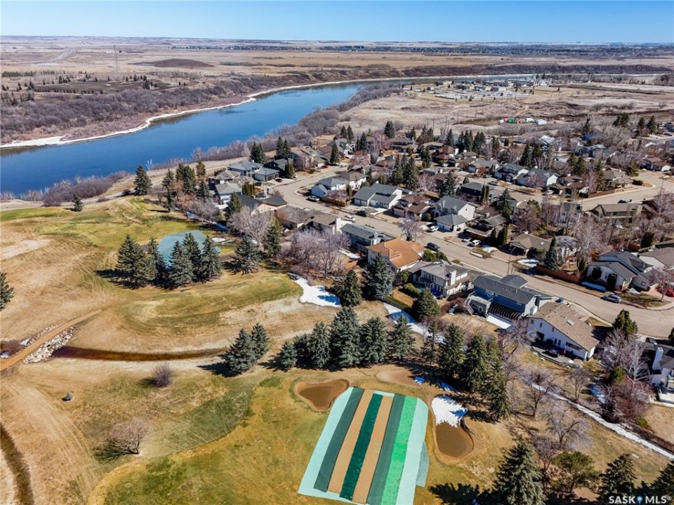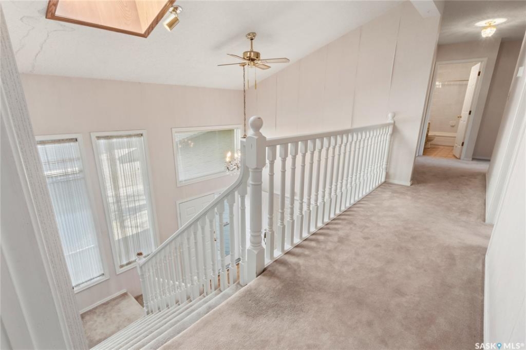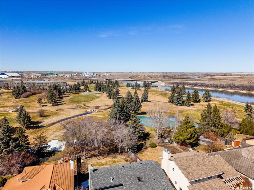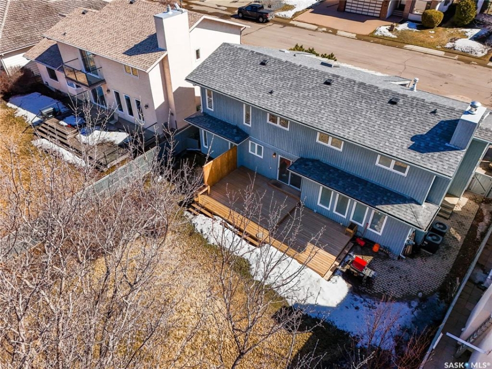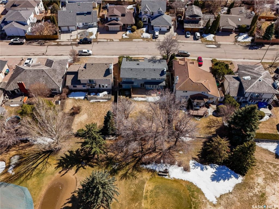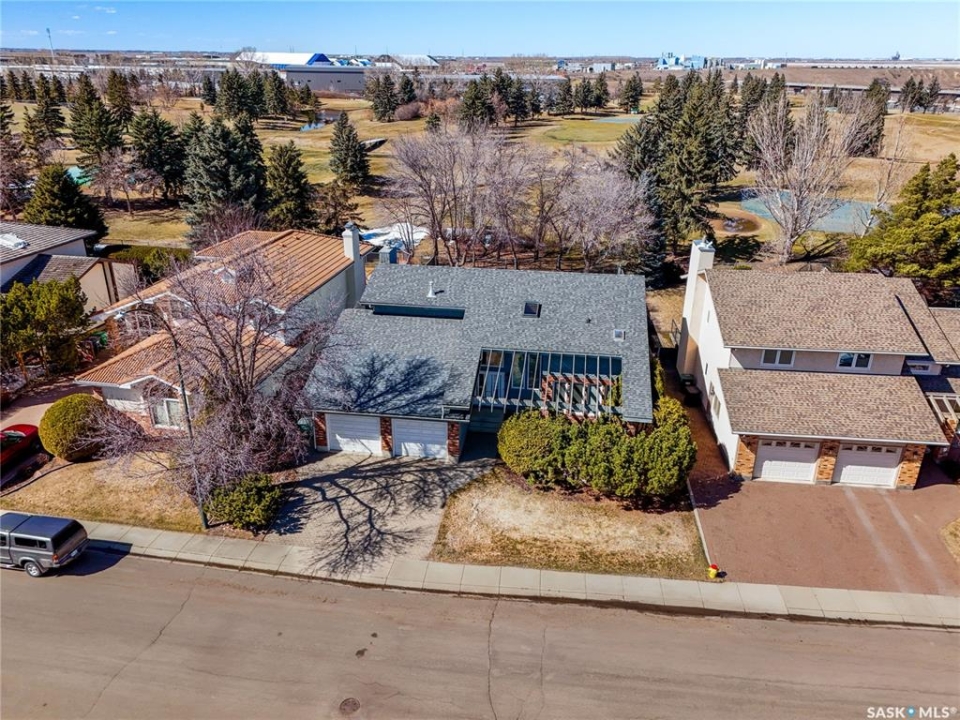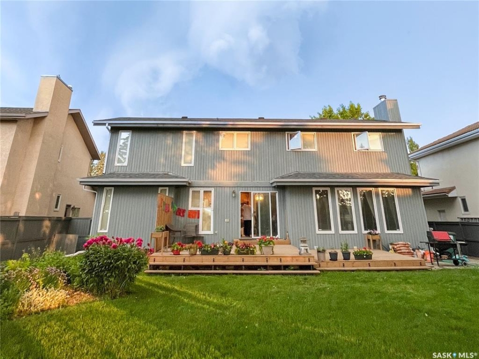 Rare find in one of Saskatoon's most loved north-end pockets. Tucked into desirable Silverwood Heights, this spacious two-storey backs directly onto Silverwood Golf Course and sits just steps from the river and Meewasin Trail — basically the real estate version of winning the location lottery. This is the kind of setting buyers say they want, then quickly realize almost never exists: quiet street, mature neighbourhood, golf course behind you, river and trails nearby. Check, check, check, and check. The yard has been meticulously cared for with flowers, shrubs, trees, and mature landscaping, creating a private oasis that backs onto another oasis. Yes, that sounds dramatic, but here it's accurate. Inside, the home offers 2,472 sq. ft. on the top two levels, with generous room sizes, a functional layout, and loads of potential. Is it dated? Absolutely. Are we pretending otherwise? Not a chance. But this is a solid, spacious home with great bones, and for the buyer with vision, this is where things get exciting. The main floor features a welcoming foyer, front living/sitting room, formal dining area, and large rear living room with backyard and golf course views, plenty of windows, and a wood-burning fireplace. The eat-in kitchen with breakfast nook offers great space for a future dream kitchen renovation, while the front sitting room could make an excellent office or quiet escape. Upstairs offers a spacious primary bedroom with four-piece ensuite, three additional bedrooms, and a four-piece main bathroom. The home also includes main floor laundry/mudroom, two-piece bath, double attached garage, interlocking brick driveway, and a unique front pergola. Important updates include 2 furnaces (2019), 2 A/C units (2021), water heater (2018), deck(2024), roof/front eavestrough(2025), plus skylights in primary bath and foyer (2025). Large, solid home in a genuinely rare Silverwood Heights location — backing golf course, steps from river, and packed with potential.