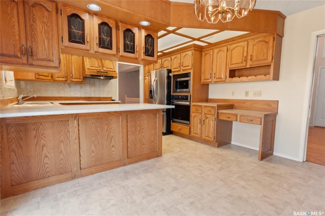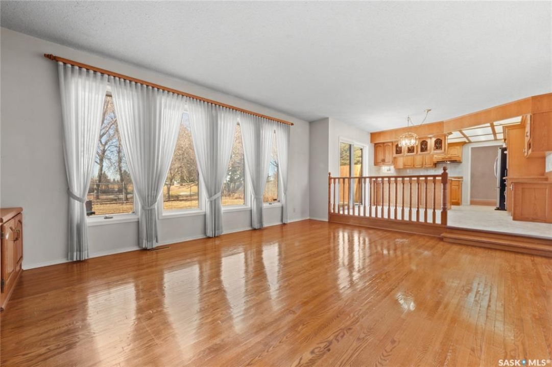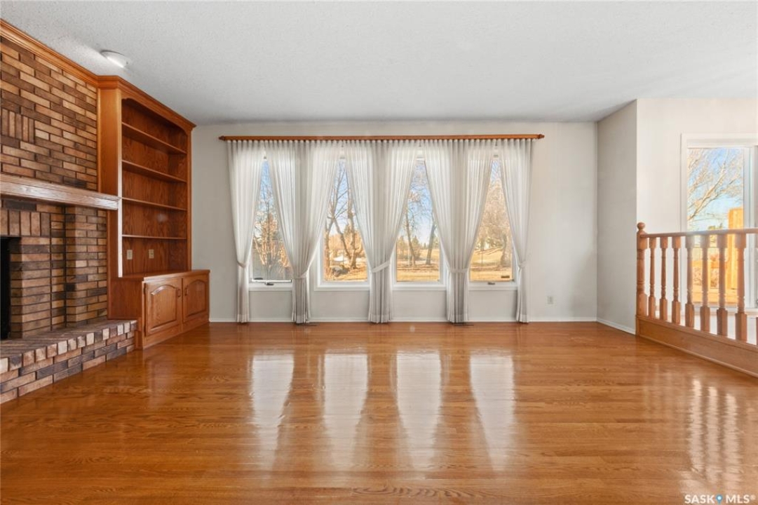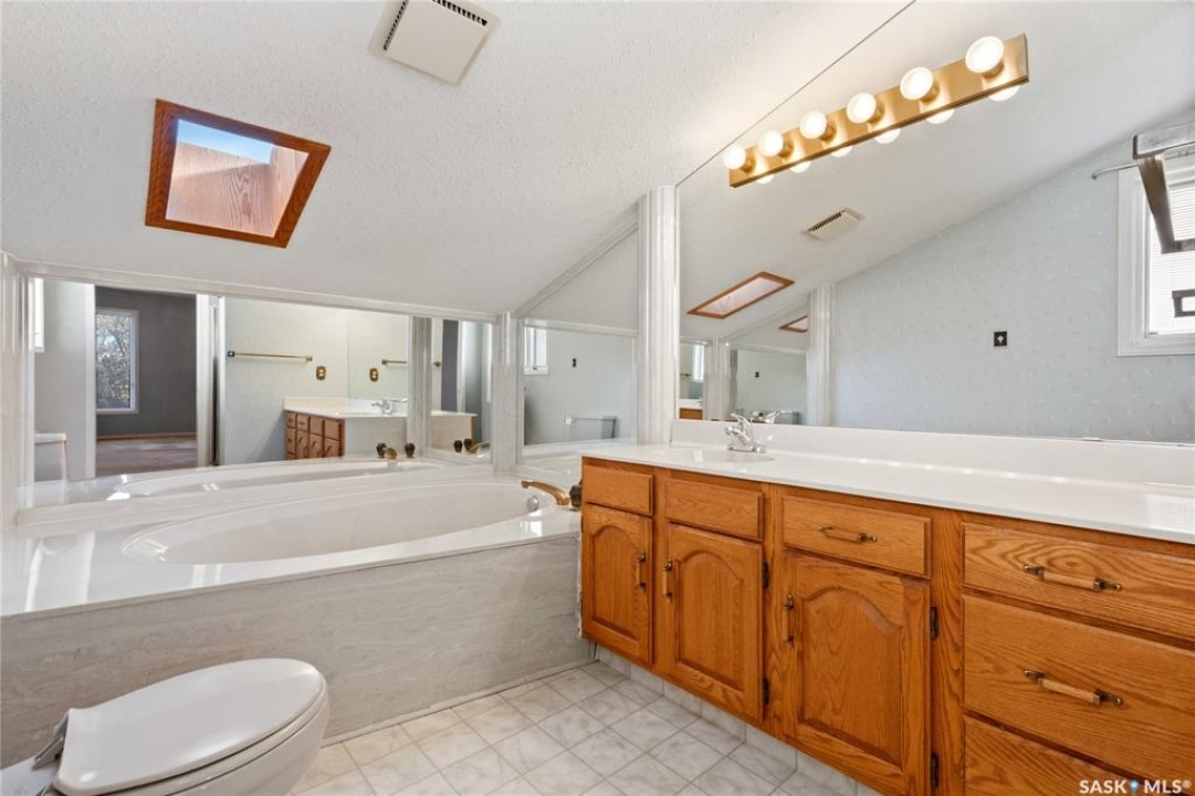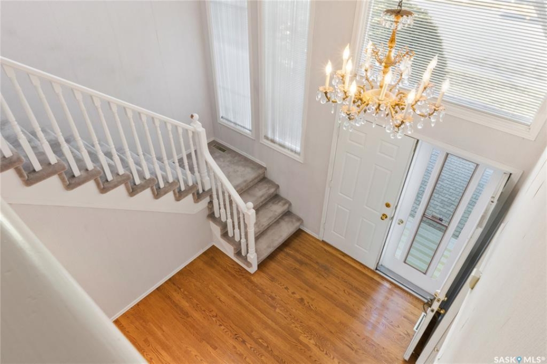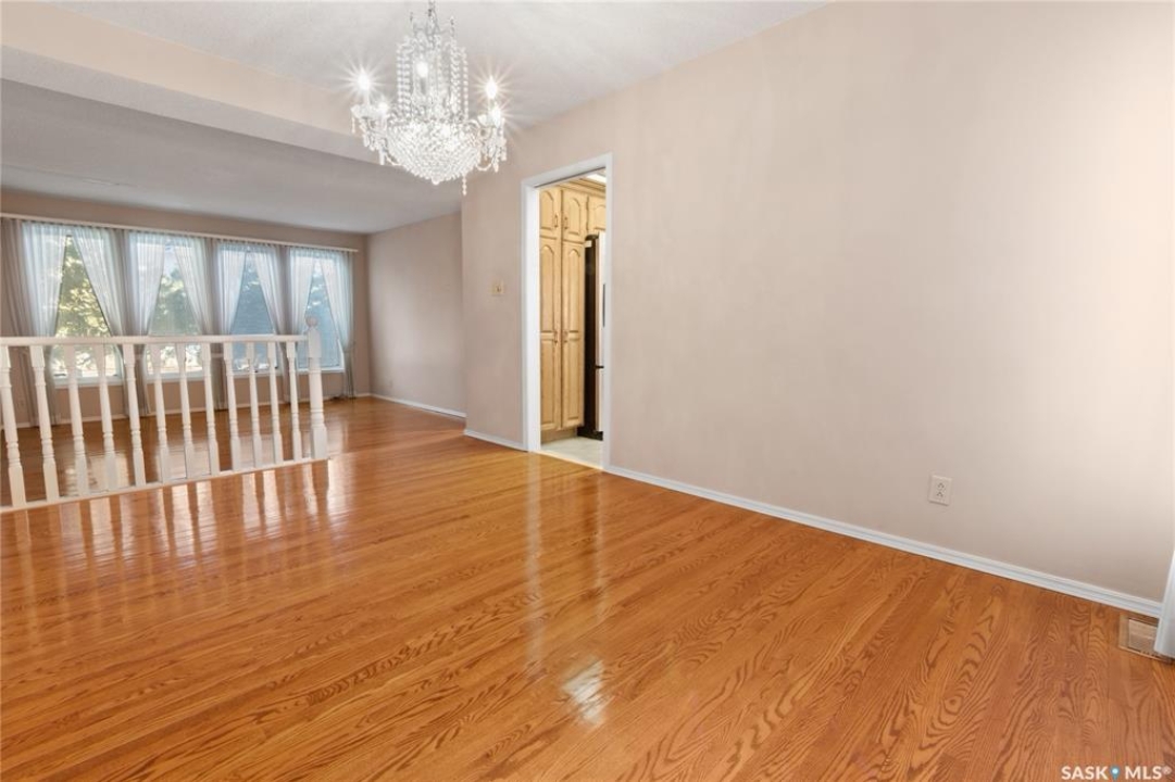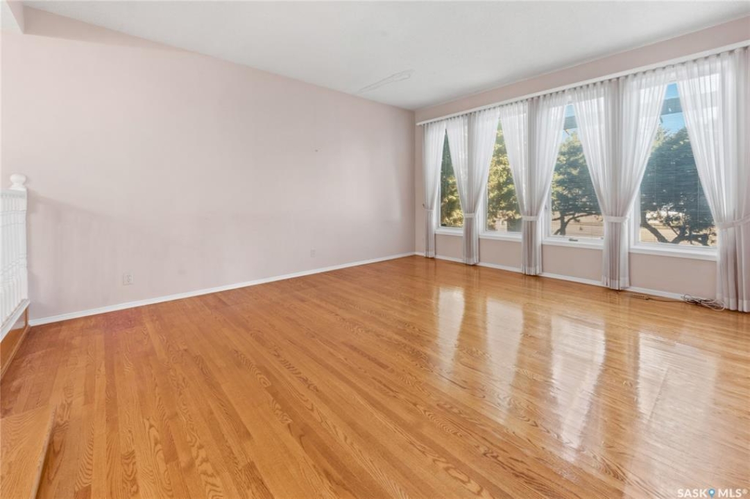 Rare find in one of Saskatoon's most loved north-end pockets. Tucked into desirable Silverwood Heights, this spacious two-storey backs directly onto Silverwood Golf Course and sits just steps from the river and Meewasin Trail — basically the real estate version of winning the location lottery. This is the kind of setting buyers say they want, then quickly realize almost never exists: quiet street, mature neighbourhood, golf course behind you, river and trails nearby. Check, check, check, and check. The yard has been meticulously cared for with flowers, shrubs, trees, and mature landscaping, creating a private oasis that backs onto another oasis. Yes, that sounds dramatic, but here it's accurate. Inside, the home offers 2,472 sq. ft. on the top two levels, with generous room sizes, a functional layout, and loads of potential. Is it dated? Absolutely. Are we pretending otherwise? Not a chance. But this is a solid, spacious home with great bones, and for the buyer with vision, this is where things get exciting. The main floor features a welcoming foyer, front living/sitting room, formal dining area, and large rear living room with backyard and golf course views, plenty of windows, and a wood-burning fireplace. The eat-in kitchen with breakfast nook offers great space for a future dream kitchen renovation, while the front sitting room could make an excellent office or quiet escape. Upstairs offers a spacious primary bedroom with four-piece ensuite, three additional bedrooms, and a four-piece main bathroom. The home also includes main floor laundry/mudroom, two-piece bath, double attached garage, interlocking brick driveway, and a unique front pergola. Important updates include 2 furnaces (2019), 2 A/C units (2021), water heater (2018), deck(2024), roof/front eavestrough(2025), plus skylights in primary bath and foyer (2025). Large, solid home in a genuinely rare Silverwood Heights location — backing golf course, steps from river, and packed with potential.