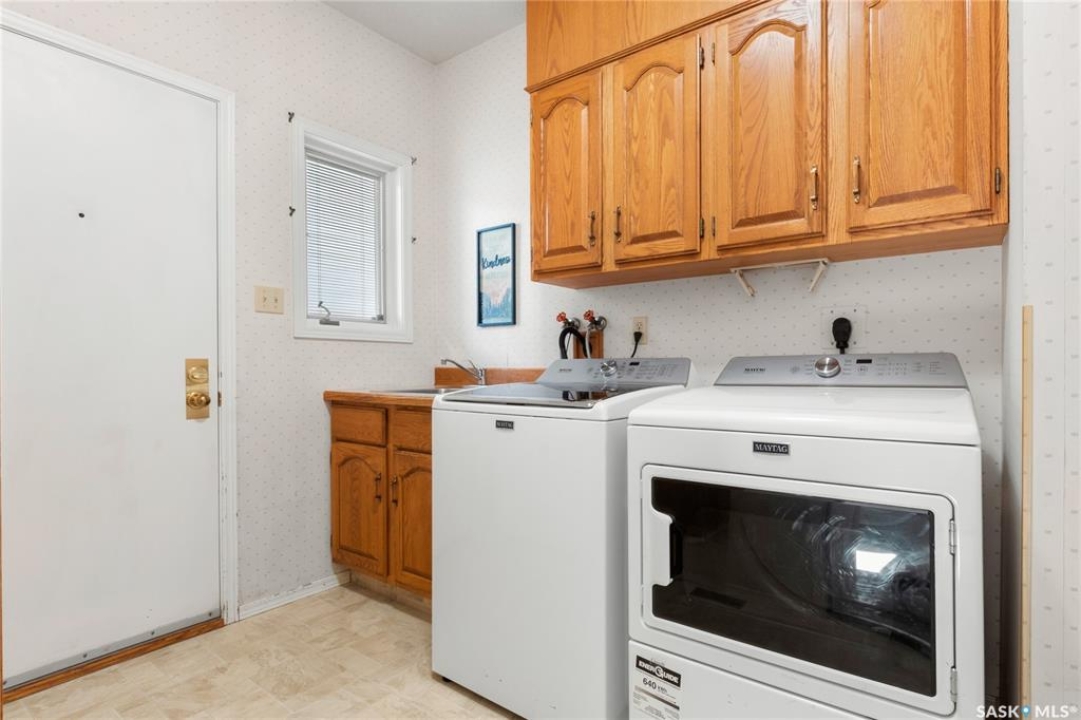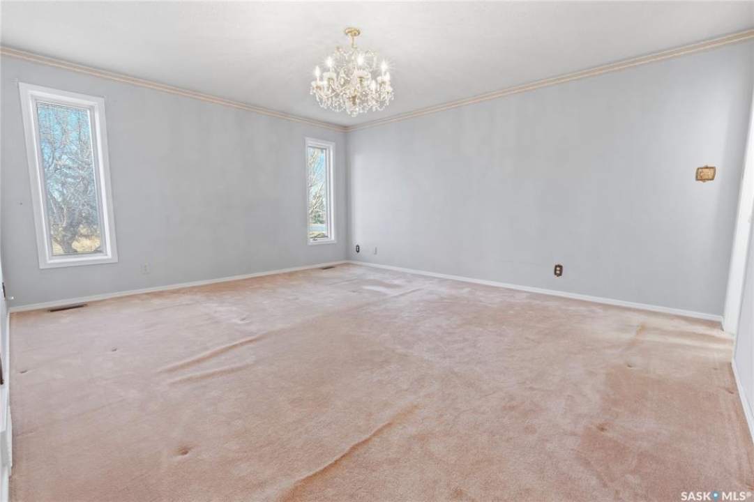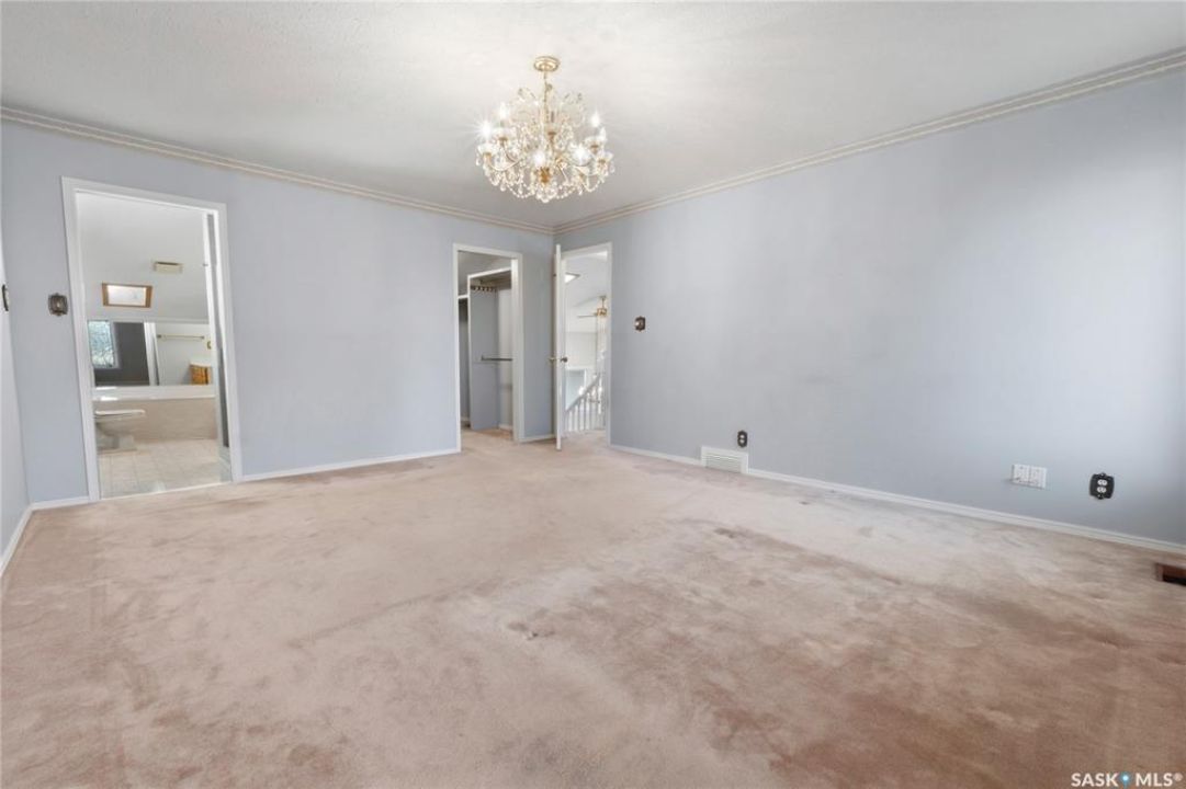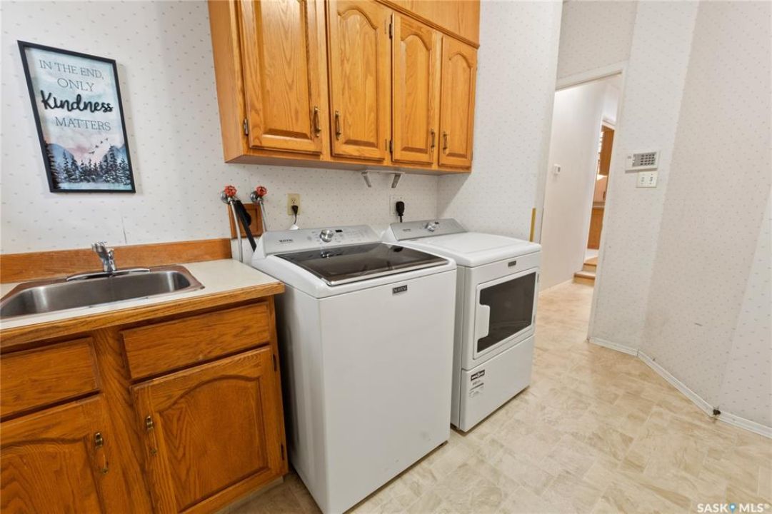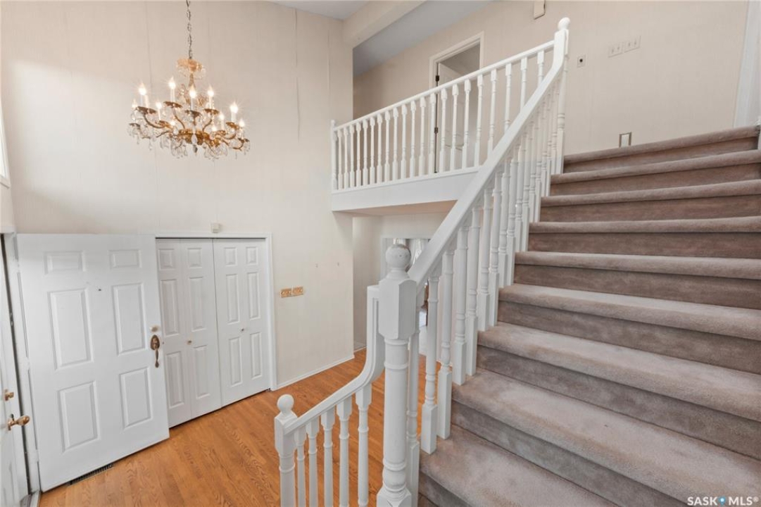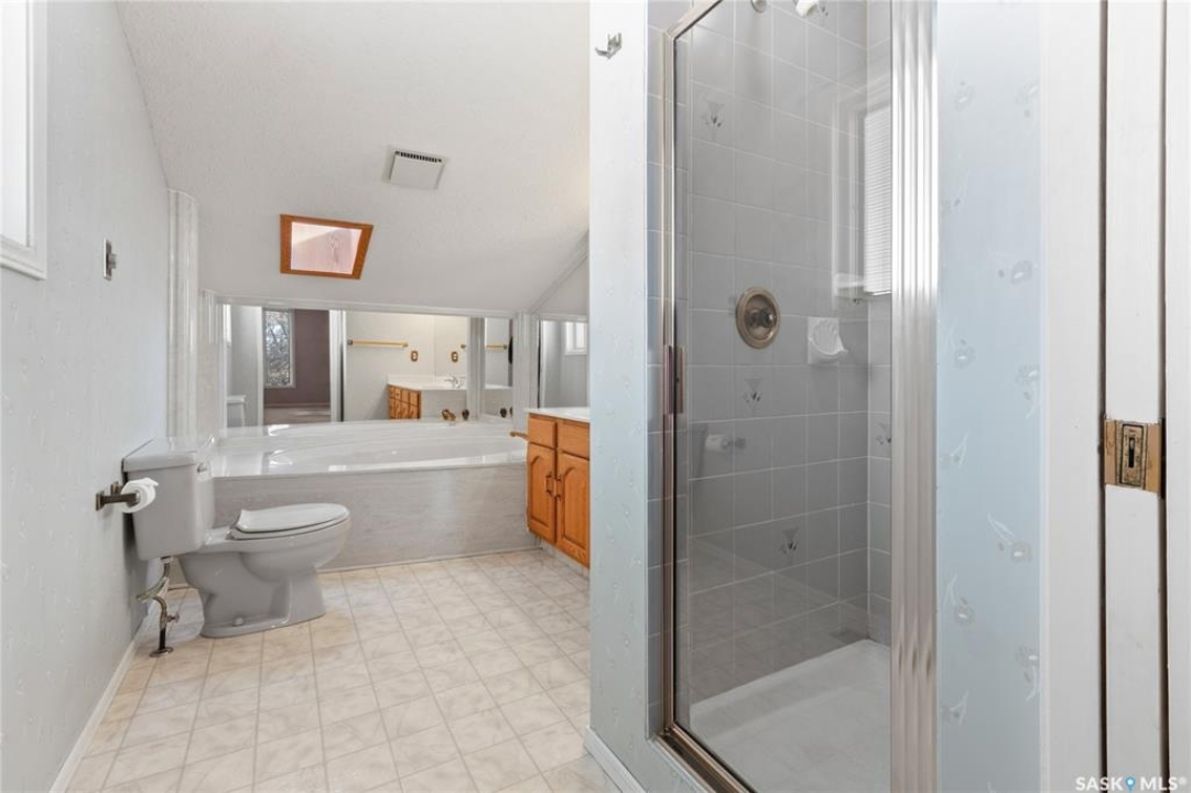 Rare find in one of Saskatoon's most loved north-end pockets. Tucked into desirable Silverwood Heights, this spacious two-storey backs directly onto Silverwood Golf Course and sits just steps from the river and Meewasin Trail — basically the real estate version of winning the location lottery. This is the kind of setting buyers say they want, then quickly realize almost never exists: quiet street, mature neighbourhood, golf course behind you, river and trails nearby. Check, check, check, and check. The yard has been meticulously cared for with flowers, shrubs, trees, and mature landscaping, creating a private oasis that backs onto another oasis. Yes, that sounds dramatic, but here it's accurate. Inside, the home offers 2,472 sq. ft. on the top two levels, with generous room sizes, a functional layout, and loads of potential. Is it dated? Absolutely. Are we pretending otherwise? Not a chance. But this is a solid, spacious home with great bones, and for the buyer with vision, this is where things get exciting. The main floor features a welcoming foyer, front living/sitting room, formal dining area, and large rear living room with backyard and golf course views, plenty of windows, and a wood-burning fireplace. The eat-in kitchen with breakfast nook offers great space for a future dream kitchen renovation, while the front sitting room could make an excellent office or quiet escape. Upstairs offers a spacious primary bedroom with four-piece ensuite, three additional bedrooms, and a four-piece main bathroom. The home also includes main floor laundry/mudroom, two-piece bath, double attached garage, interlocking brick driveway, and a unique front pergola. Important updates include 2 furnaces (2019), 2 A/C units (2021), water heater (2018), deck(2024), roof/front eavestrough(2025), plus skylights in primary bath and foyer (2025). Large, solid home in a genuinely rare Silverwood Heights location — backing golf course, steps from river, and packed with potential.