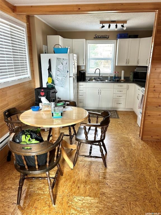 Take a look at this year round cabin located at Travessa Beach Jackfish Lake. This cabin offers about 792 square feet of living space with a large lake facing living room, bright kitchen dining area, a four piece bath, two good sized bedrooms, and a laundry room with a two piece bath. This lot is a second row 1/4 acre lot with lake views and extra parking space out back on the public reserve. Included is a 12 x 16 garage/workshop/bunkhouse, wood shed, and two storage sheds. The yard offers an RV parking pad with power and water, fire pit area, wrap around deck, and lots of parking space. Water is provided by inter lake water. The Seller will include all furnishings and appliances. Travessa Beach offers residences a spot in the marina for a small annual fee and is a private resort village with many people living there year round. This listing has a lot to offer with a park like yard and only about twenty minutes to the Battlefords. Call today for more info.