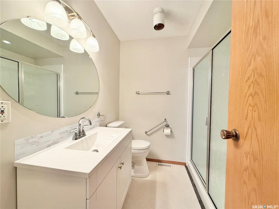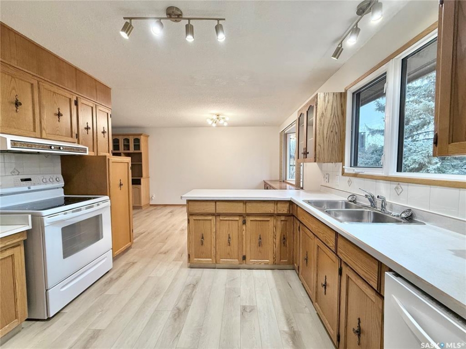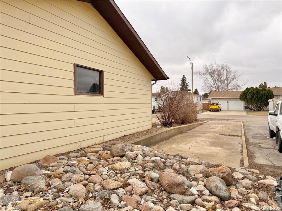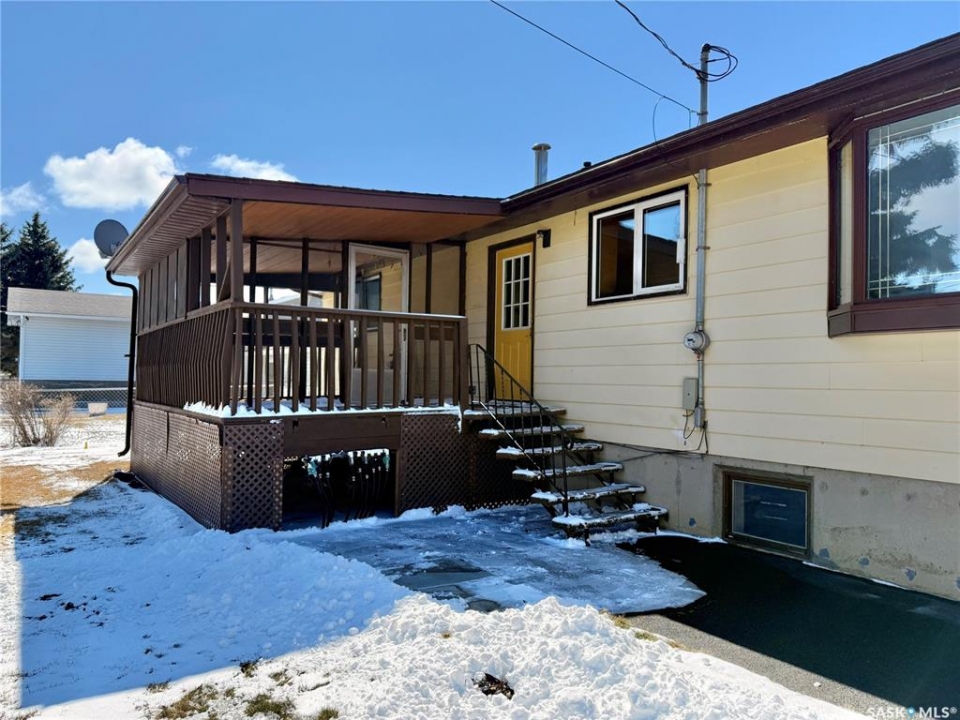 Great location!! This 1,275 sq ft family home is situated on a large 100 ft x 120 ft lot, ideally located close to schools in Outlook, SK. The main floor features fresh paint in the living areas, new laminate flooring throughout, updated receptacle and duct covers, and some new light fixtures, giving the space a clean, refreshed feel. You'll also find main floor laundry hookups and a spacious primary bedroom with a 2-piece ensuite. Mechanical features include a high-efficiency furnace, power vent water heater, central air conditioning, and central vacuum for everyday comfort. Outside, there's plenty of room for family living with a covered, screened-in back deck, chain link fenced yard, and RV parking. The double concrete driveway and extra spacious double attached garage with a small workshop area add even more functionality. Located in Outlook, SK, a welcoming community with schools, parks, and amenities, this property offers great space for a growing family with room to make it your own.