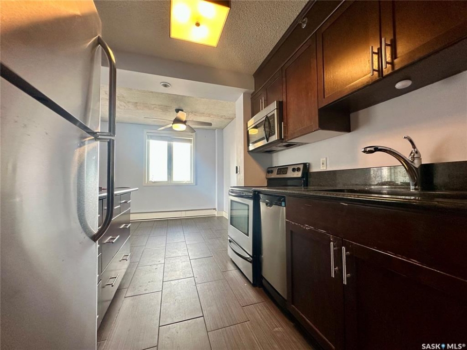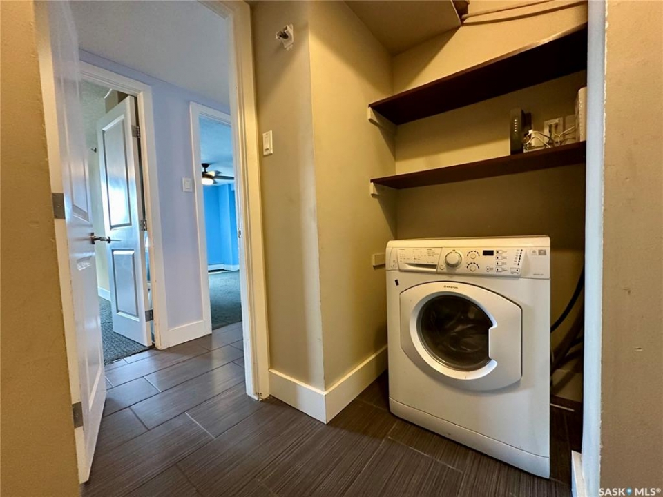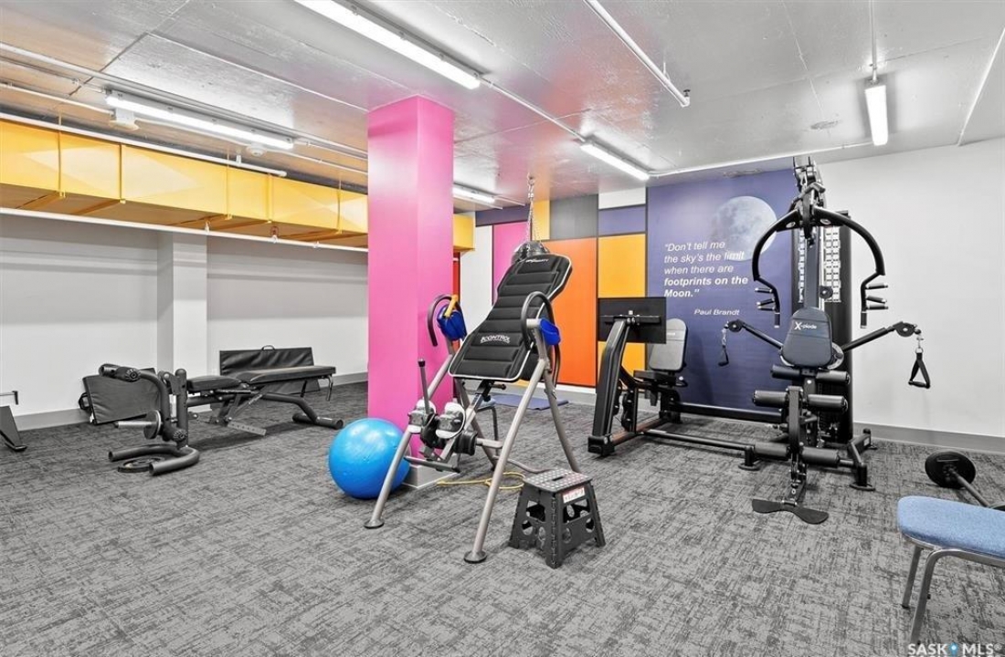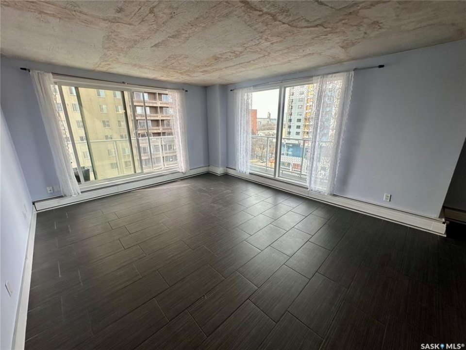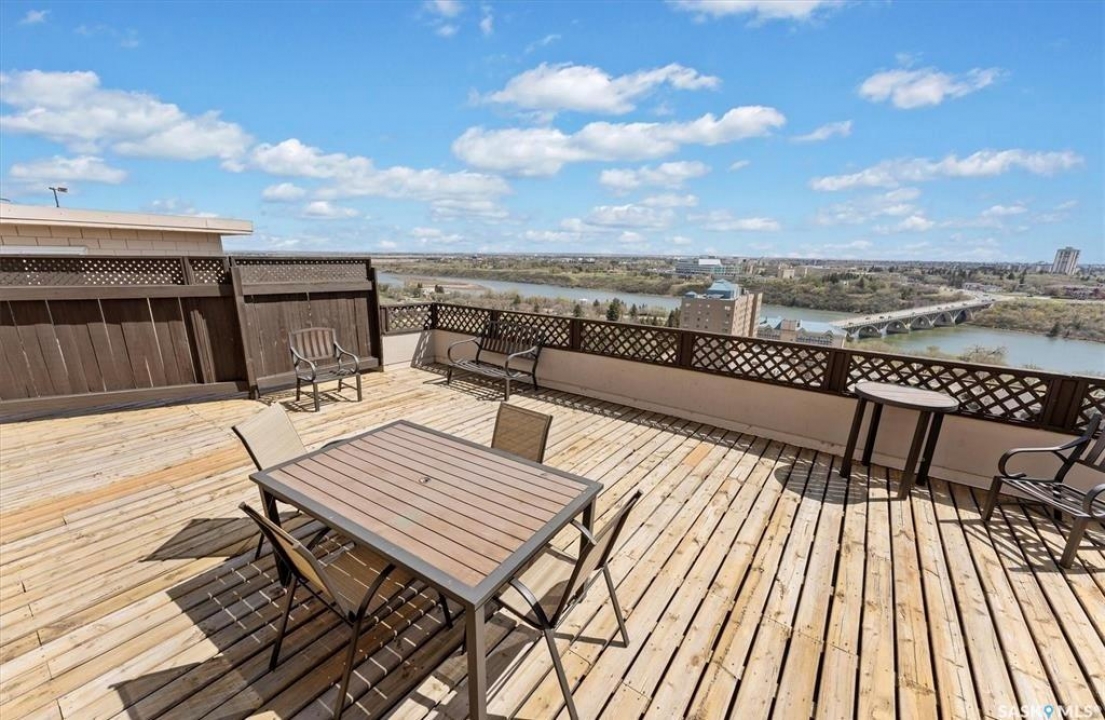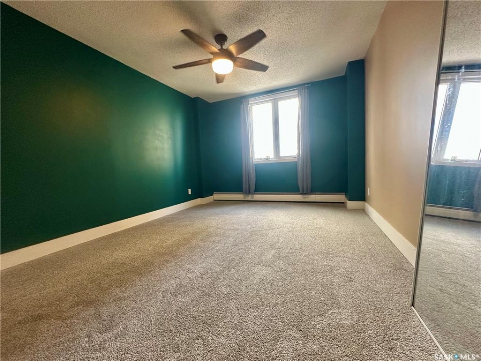 Welcome to The View, a sought-after concrete high-rise offering exceptional urban living in the heart of Saskatoon. This bright and spacious 2-bedroom, 1-bathroom unit features stunning natural light and a modern aesthetic, highlighted by an exposed concrete ceiling in the living area. Enjoy breathtaking views of Kinsmen Park and downtown Saskatoon from your impressive 34-foot wraparound balcony—perfect for relaxing or entertaining. The building boasts incredible amenities including a fully equipped gym, amenities room, and two rooftop patios, all within walking distance to the University of Saskatchewan, restaurants, the river, and scenic walking trails. Additional conveniences include in-suite laundry, free laundry on every floor, garbage chute access, and one included parking stall. A rare bonus: electricity is included in the condo fees, making this an outstanding value in a prime location. Call today for your private tour!