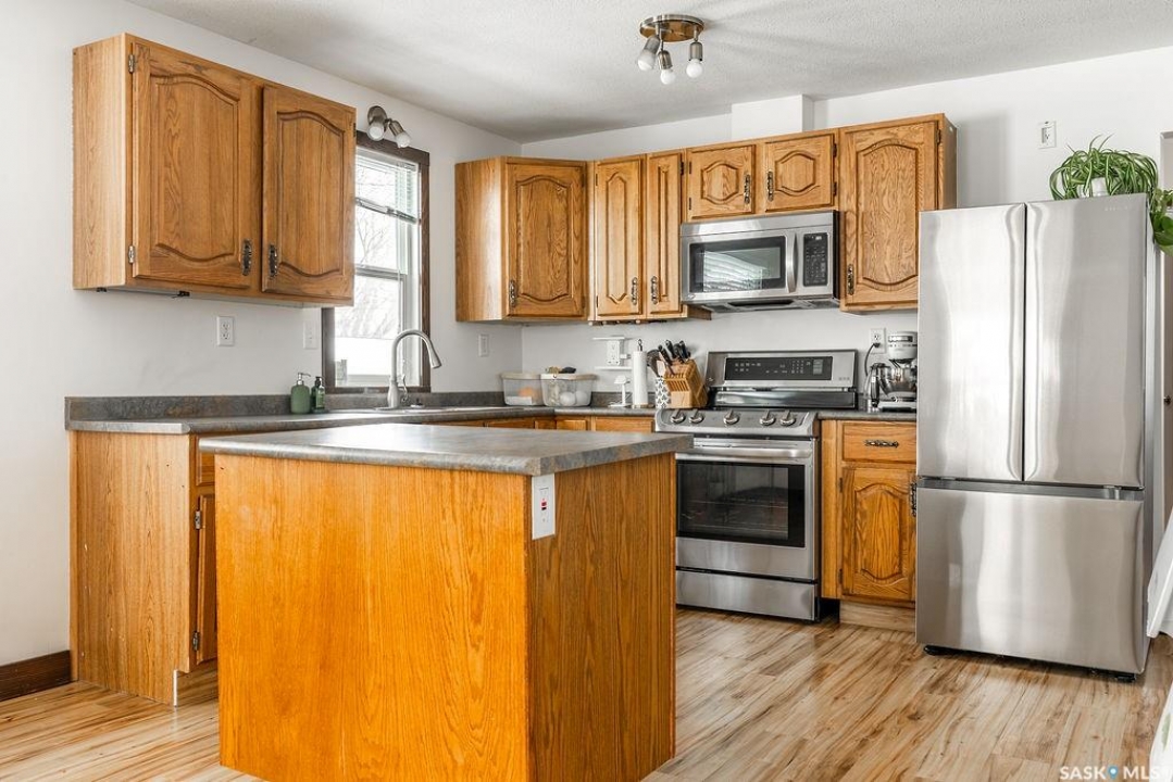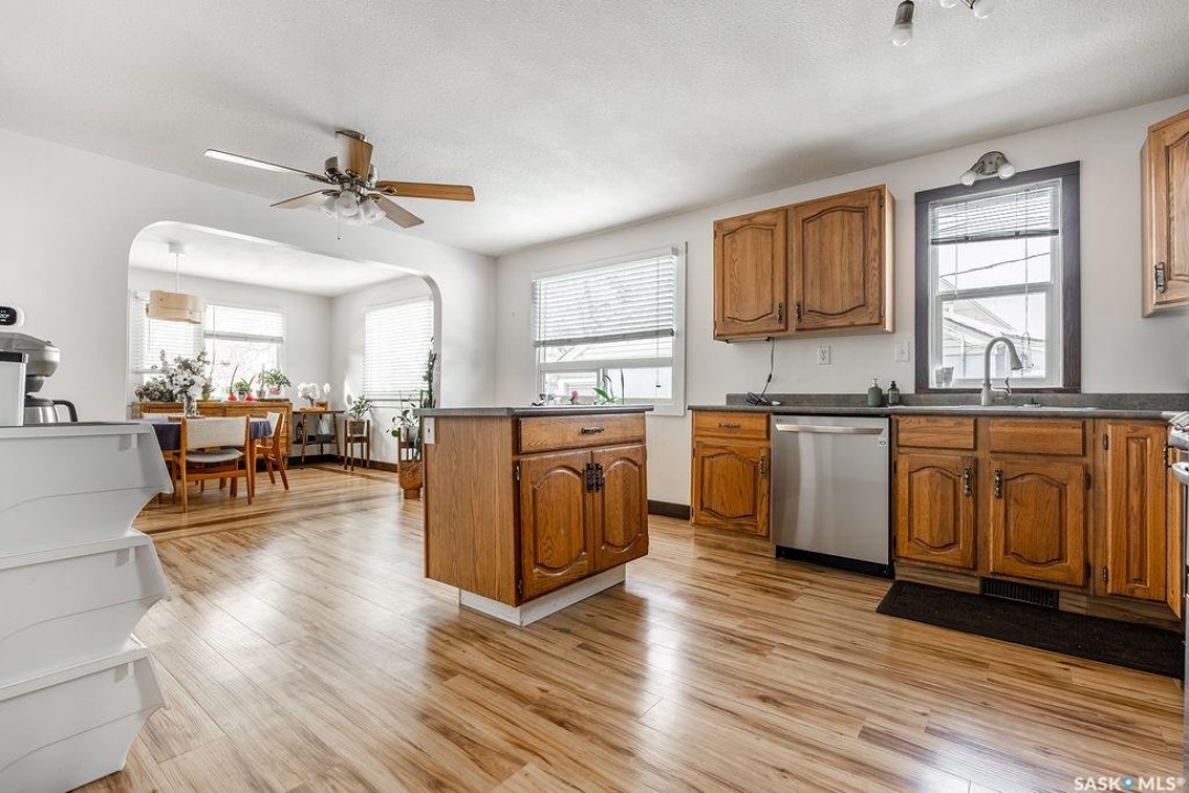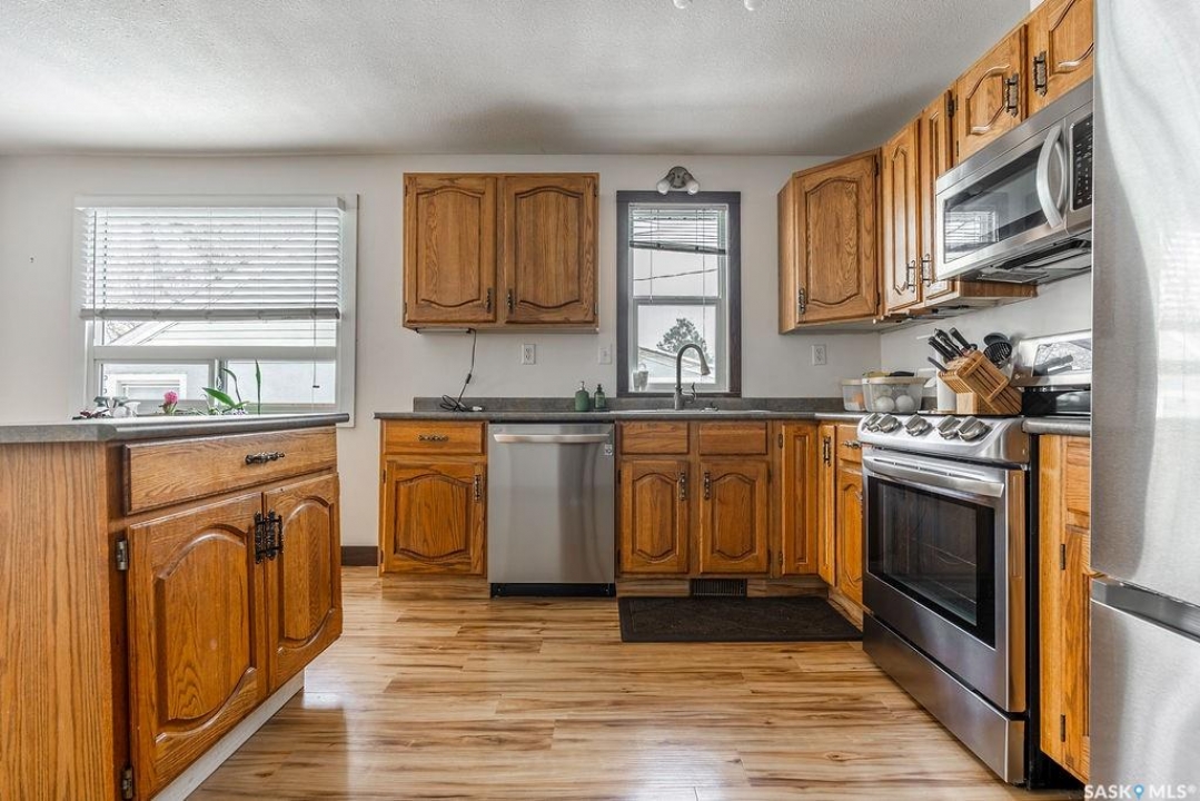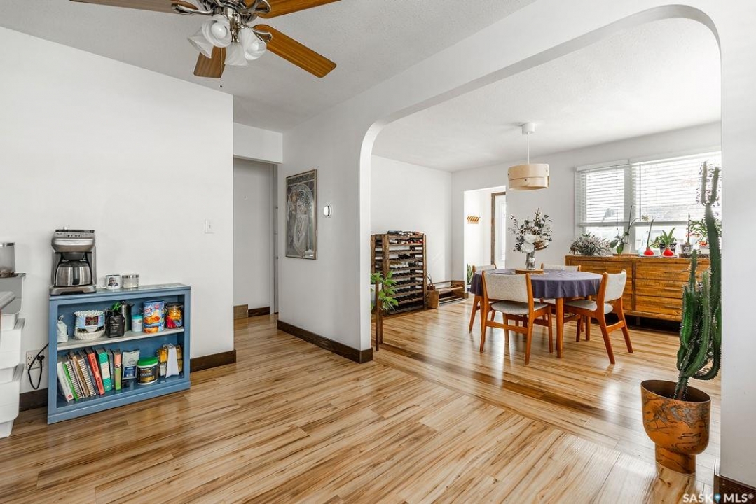 Welcome to 612 Avenue M S! This spacious 1,364 sq. ft. raised bungalow offers incredible versatility with a 2-bedroom legal suite, making it an excellent opportunity for homeowners or investors alike. The front entrance welcomes you into a bright and sunny formal dining room highlighted by large windows and a charming archway that leads into the updated kitchen, complete with an island and stainless steel appliances. Down the hall you'll find two comfortable bedrooms and an updated 4-piece bathroom. Just past the kitchen is another bedroom, which could also serve perfectly as a home office, along with an additional updated 4-piece bathroom. The spacious living room features a large window overlooking the backyard, creating a warm and inviting space to relax. The lower level of the main home offers two more large bedrooms, bringing the total to five bedrooms in the main suite, along with a utility room that hosts the laundry. The legal 2-bedroom suite is well laid out with its own kitchen, living room, dining area, 4-piece bathroom, and private laundry and utility room, providing a fantastic mortgage helper or rental opportunity. Beautifully maintenance with new shingles just last year. Outside, you'll find a concrete driveway in the front and a large 24 x 24 detached garage in the back with plenty of space for parking and storage. Conveniently located close to downtown amenities, schools, and services, this property offers space, flexibility, and excellent income potential.