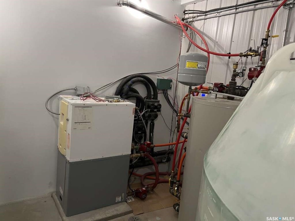 For more information, please click the "More Information" button. Discover an exceptional 80-acre parcel blending industrial capability with comfortable living, 35 mins from Circle Drive in Saskatoon. Nestled near the South Saskatchewan River, this versatile site is 10 miles north, 1 mile east and 1 mile north of Aberdeen, just 2 km from the Hague ferry crossing. — Shop highlights 6000 sqft engineered steel structure (100' X 60') with tin cladding inside and out. 4800 sqft of clear span shop area with 18' walls on 6” concrete slab (35 MPa) thickened edges over heavy screw piles. includes 60' overhead two ton crane. Geothermal heat pump in-floor heating on both levels for efficient even warmth. 14' X 16' overhead door and 50' X 17' bi-folding diamond door plus two steel man doors. — Residence Features 2300 sqft open-concept home (apx 1150 sqft on each level) is seamlessly integrated into the shop. Shop and house are divided by a 2 hr fire rated and sound proofed wall. No well to maintain, on city water Ground level has 10' walls, three mechanical rooms, 1/2 bathroom roughed for full bath, stair case with under stairs storage. Remaining 650 sqft. ground level area finished and painted, ready for possible bedrooms. Upper level has 11' pine vaulted ceiling, kitchen with island, dining and living area all open concept. Full bathroom, laundry, three bedrooms, walk in closet off primary suite. Garden doors lead off the living room onto a 12' X 16' elevated deck. — Land details Legal: S1/2 SE 1/4 31 40 2 W3 totalling 80 acres with two 40 acre titles. Topography is near level with gentle slope towards river, minimal stones. soil: Black sandy loam with 57 acres currently cultivated. Gravels found at 8' depth while digging the 11' deep trenches for Geothermal ground loops. — Year round gravel roads provide reliable access, school bus route K-12.