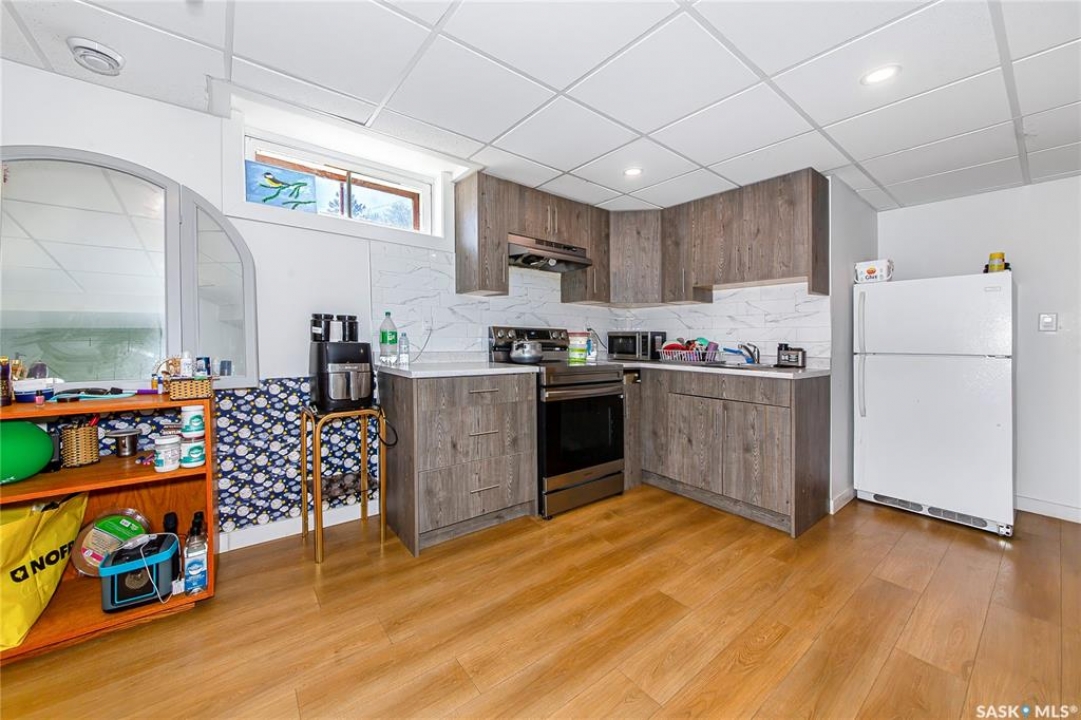 Gorgeous home with prime location in Hudson Bay Park! This Fully Renovated Bungalow features 5 bedrooms, 2 bathroom .1066 Sqft on Main Floor and over 2100 Sqft on both floors.2 bedroom un-authorize suite with separate entrance ., Fully fenced with large gate which access for both RV or Boat , high end appliances Some key features included are on demand water heater, high eff. furnace, central air conditioning, all Stainless Steel appliances, new shingles on home, nat.gas stove, jetted tub and tiled shower in main bathroom, all new lighting and plumbing, new 100amp electrical panel, fresh paint / flooring / doors / trim, new white kitchen with quartz and tiled backsplash, accented walls throughout, new white siding on house / garage / shed with cedar accents, newer garage overhead door and openers ,Maintenance free LVP throughout the main floor and basement. laundry in utility and double detached car garage. Immediate possession available. This one won't last long call your favorite Realtor to book a private viewing today! Don't miss out on the opportunity to view this exceptional home.