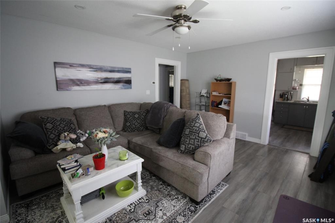 Priced just right for the first time home buyer, this two bedroom home hits the target! The home is located on a quiet residential street in Shaunavon and has a large lot. The home has a front porch with large windows, just right for relaxing in the sun. The living room is large and sunny and opens to the kitchen at the back of the home. The seller has installed a built-in dishwasher and made the most of the cabinet space, and even has room for a dining table. The two bedrooms on the main have good space and the main floor bathroom has had a total tile upgrade for a fresh spa-like feel. The owner has upgraded all the flooring on the main with vinyl plank and the paint is a contemporary neutral. The laundry is main floor in the back mud room. The basement is great for storage and has a bedroom setup. The yard is huge, a 60' x 120' lot that is fully fenced and features a single detached garage. Get your first home now!